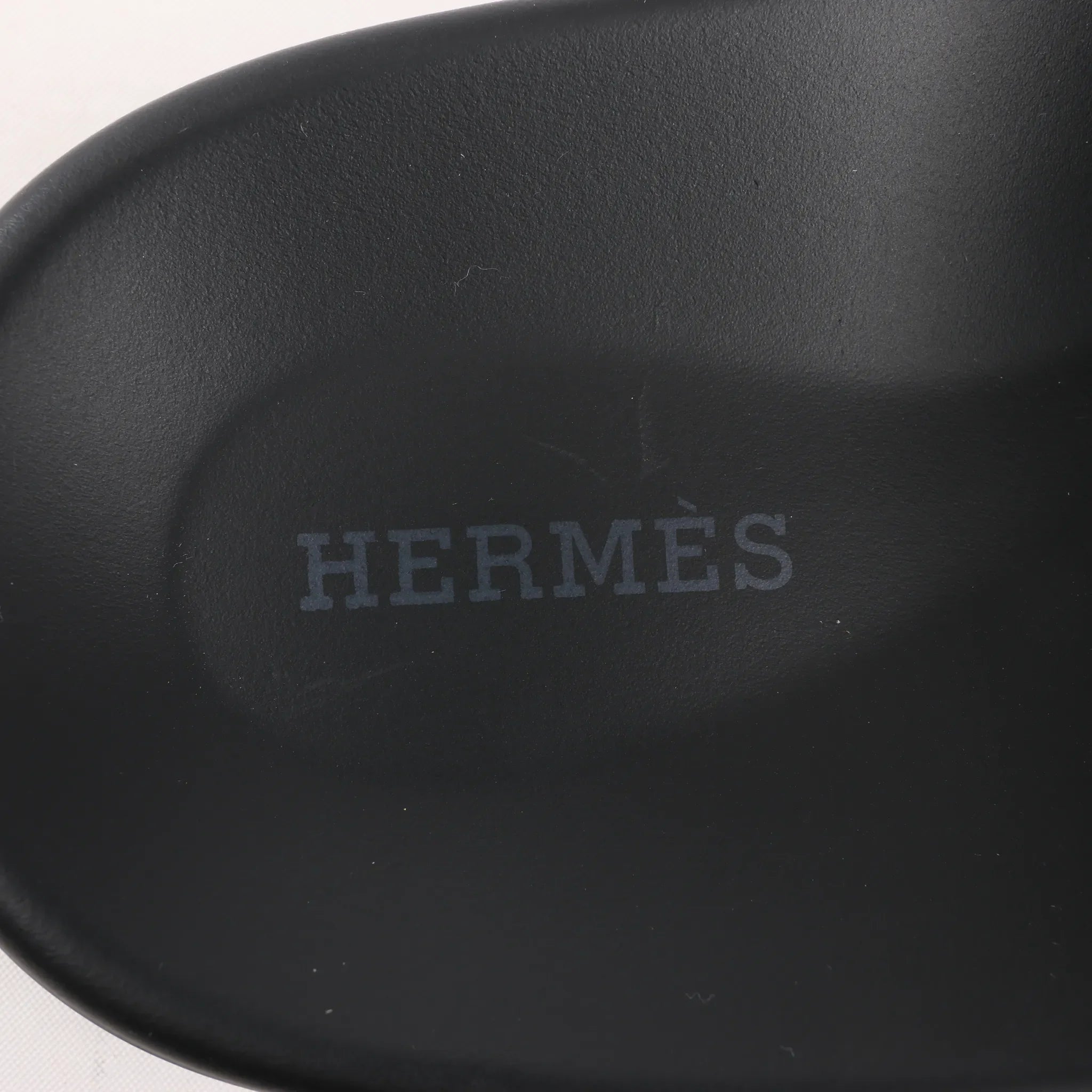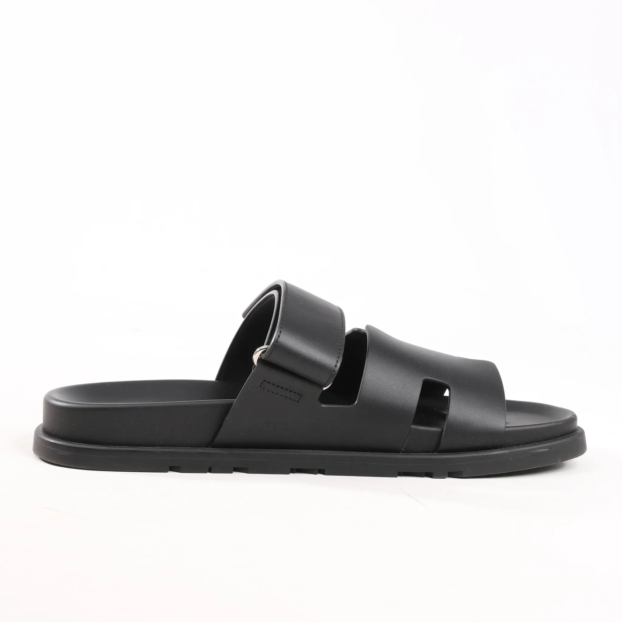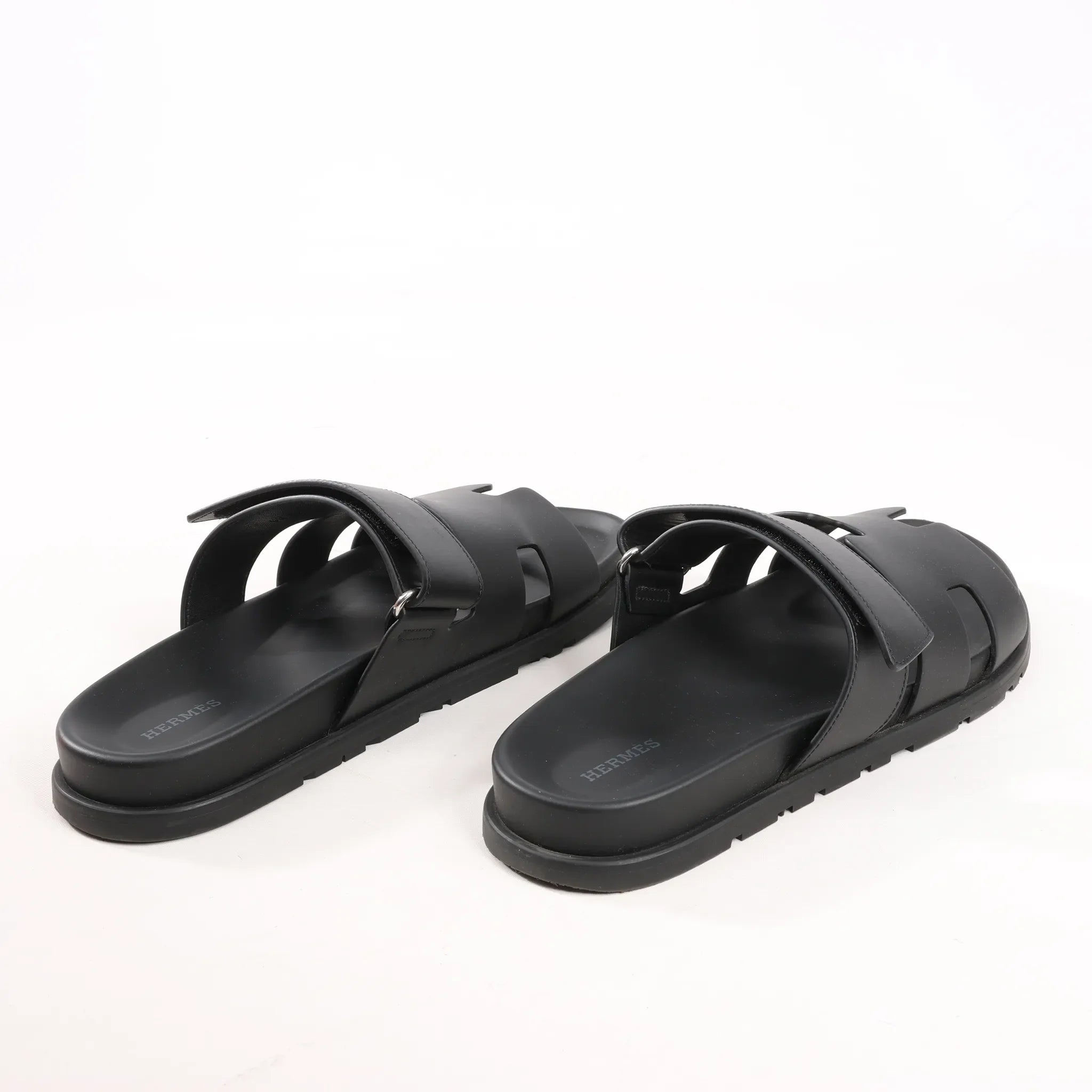 HERMES Cypre Leather Sandals in Black, Size 42 EU
