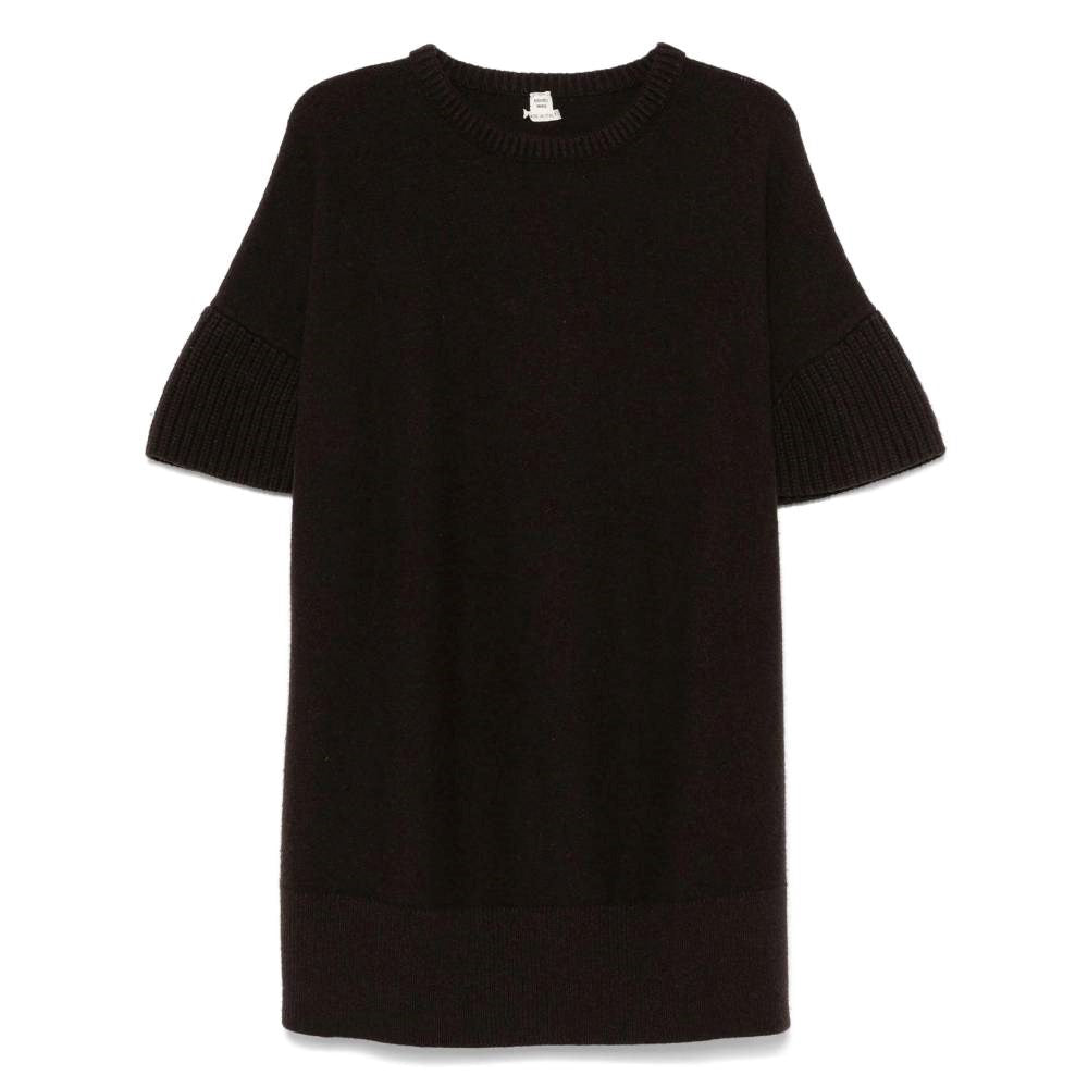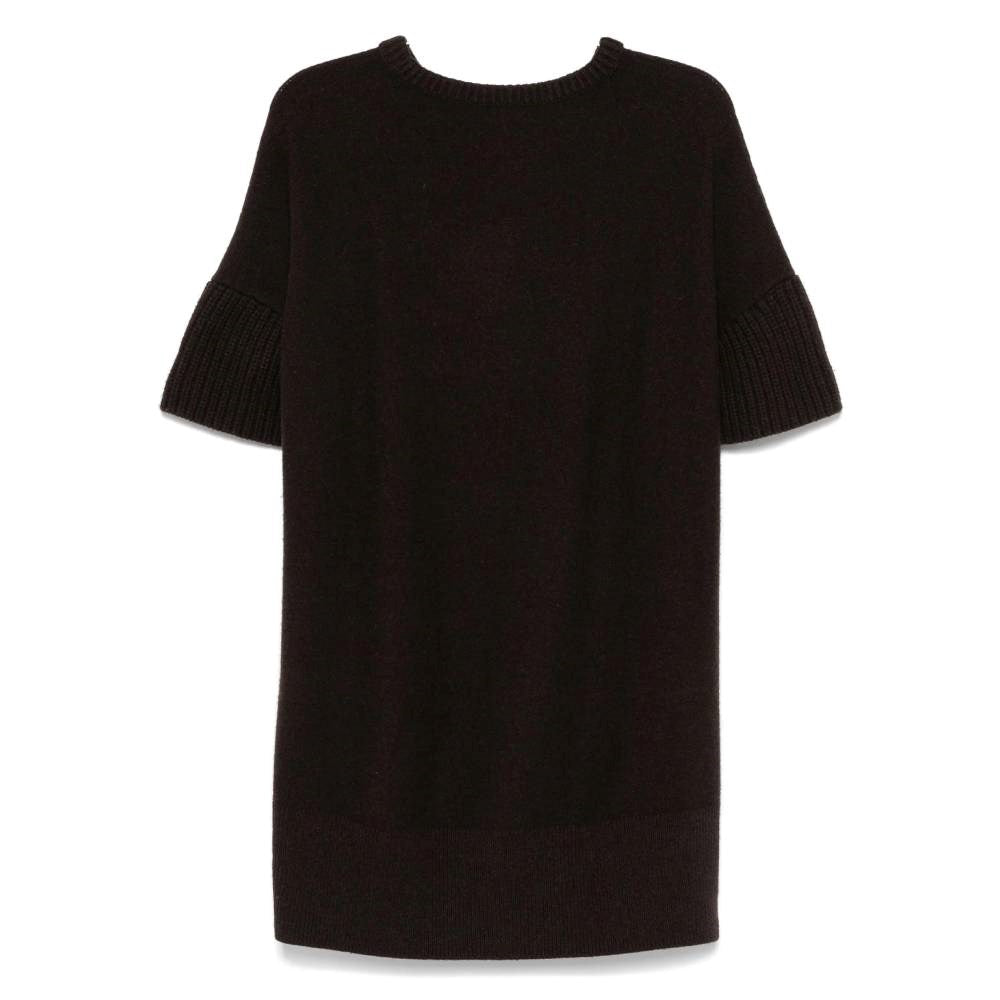Hermès 2010s dark brown knitted dress. Crew neck, short sleeves, straight cut and ribbed edges.