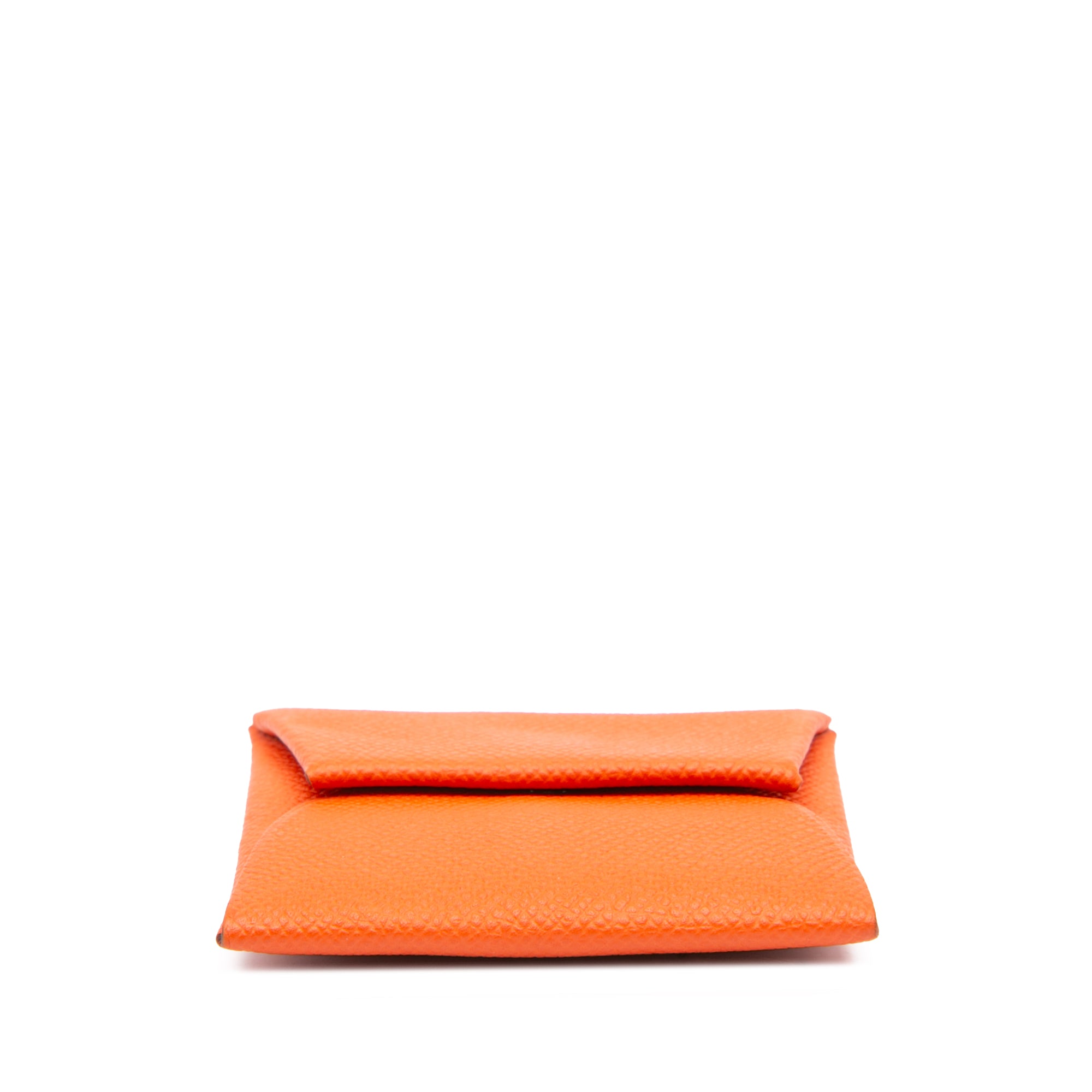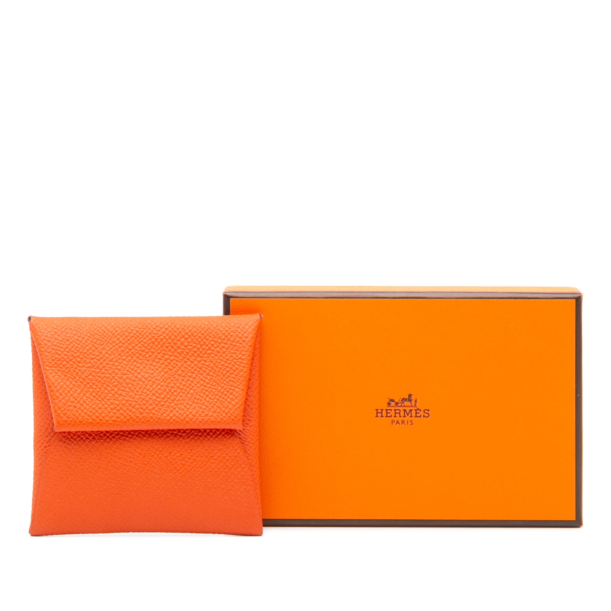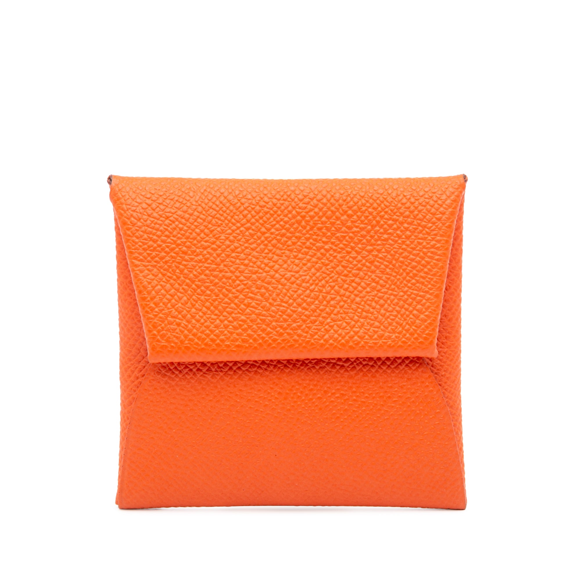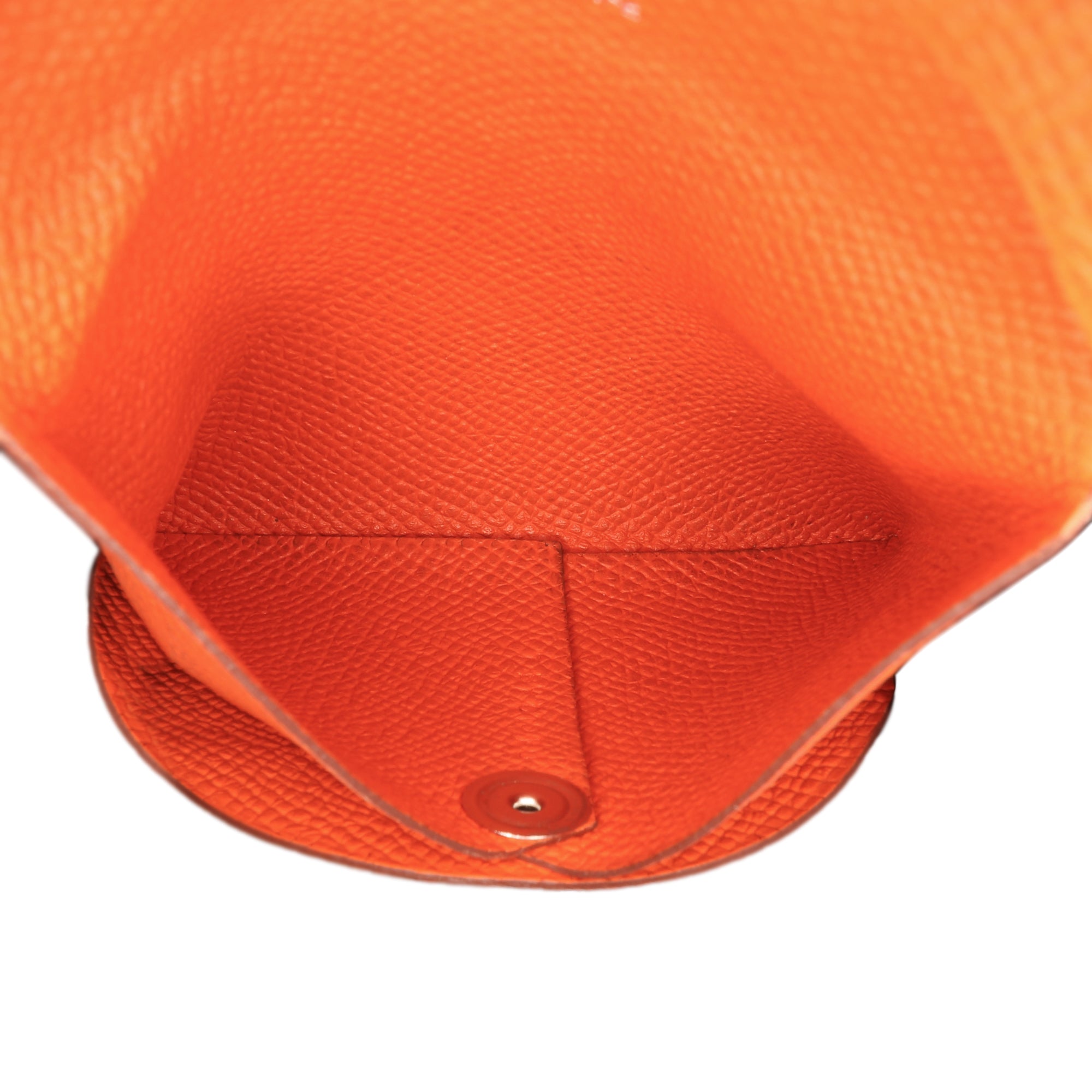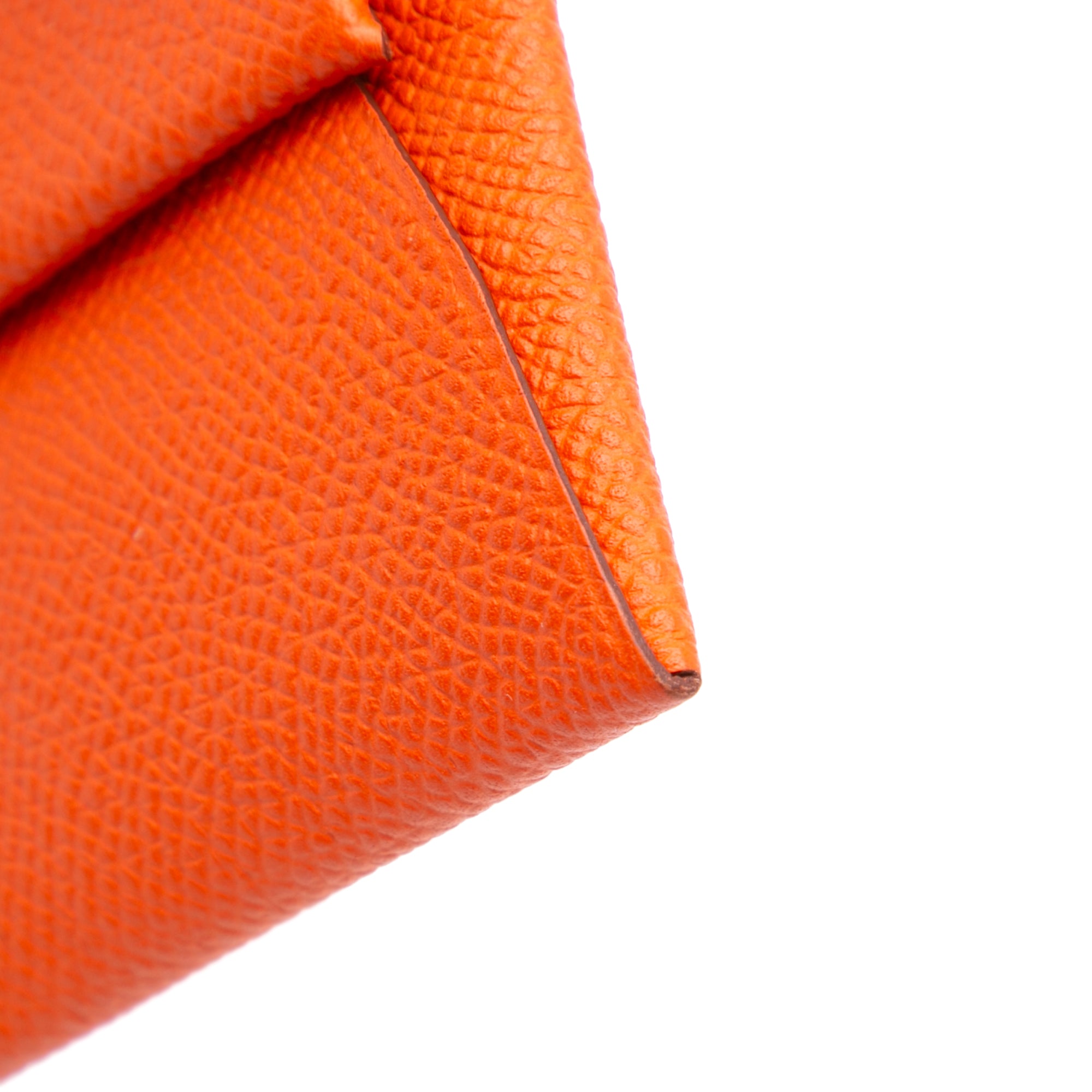 This coin pouch features an Epsom leather body in Orange color and snap closure. Inclusion: box. Retail Price: 470.00