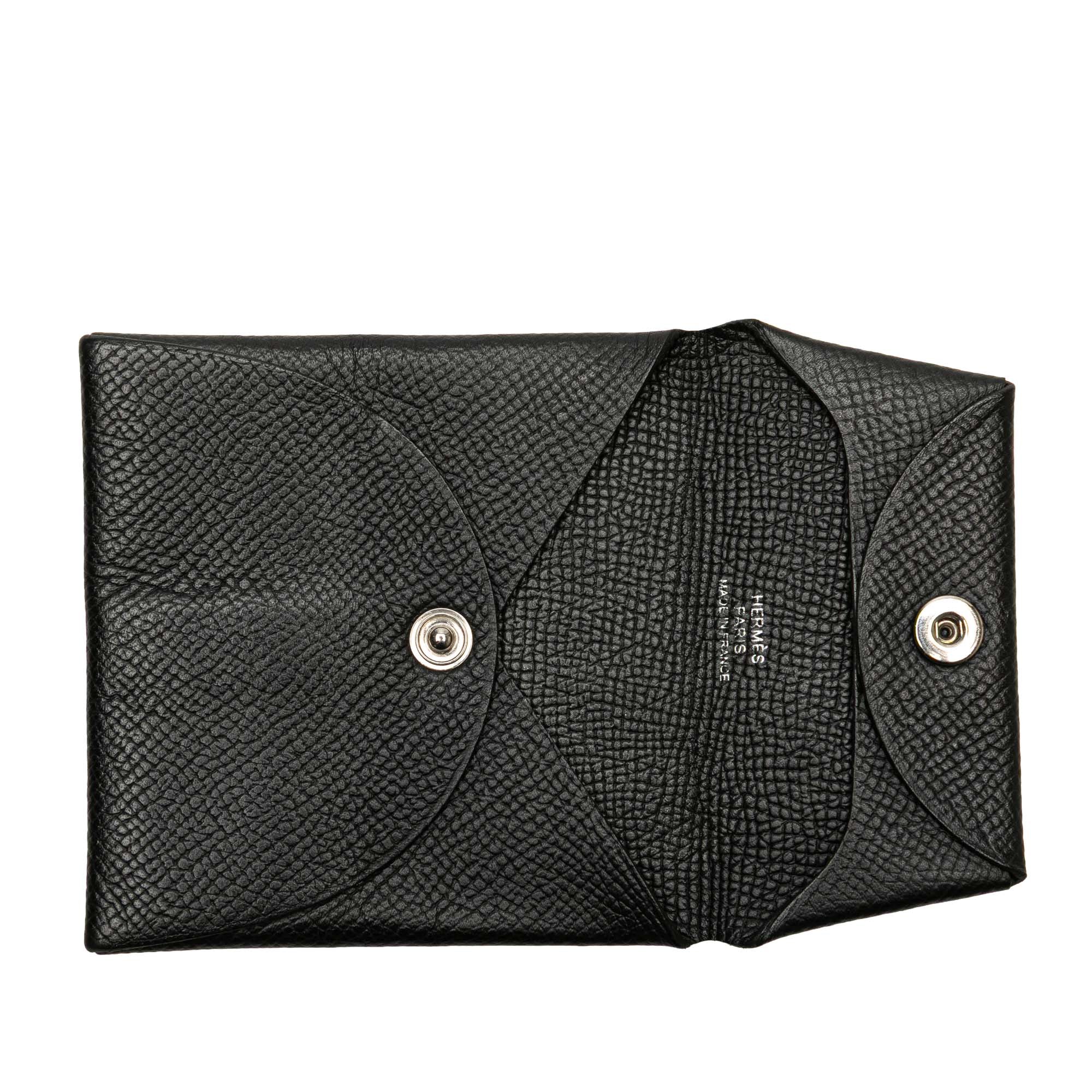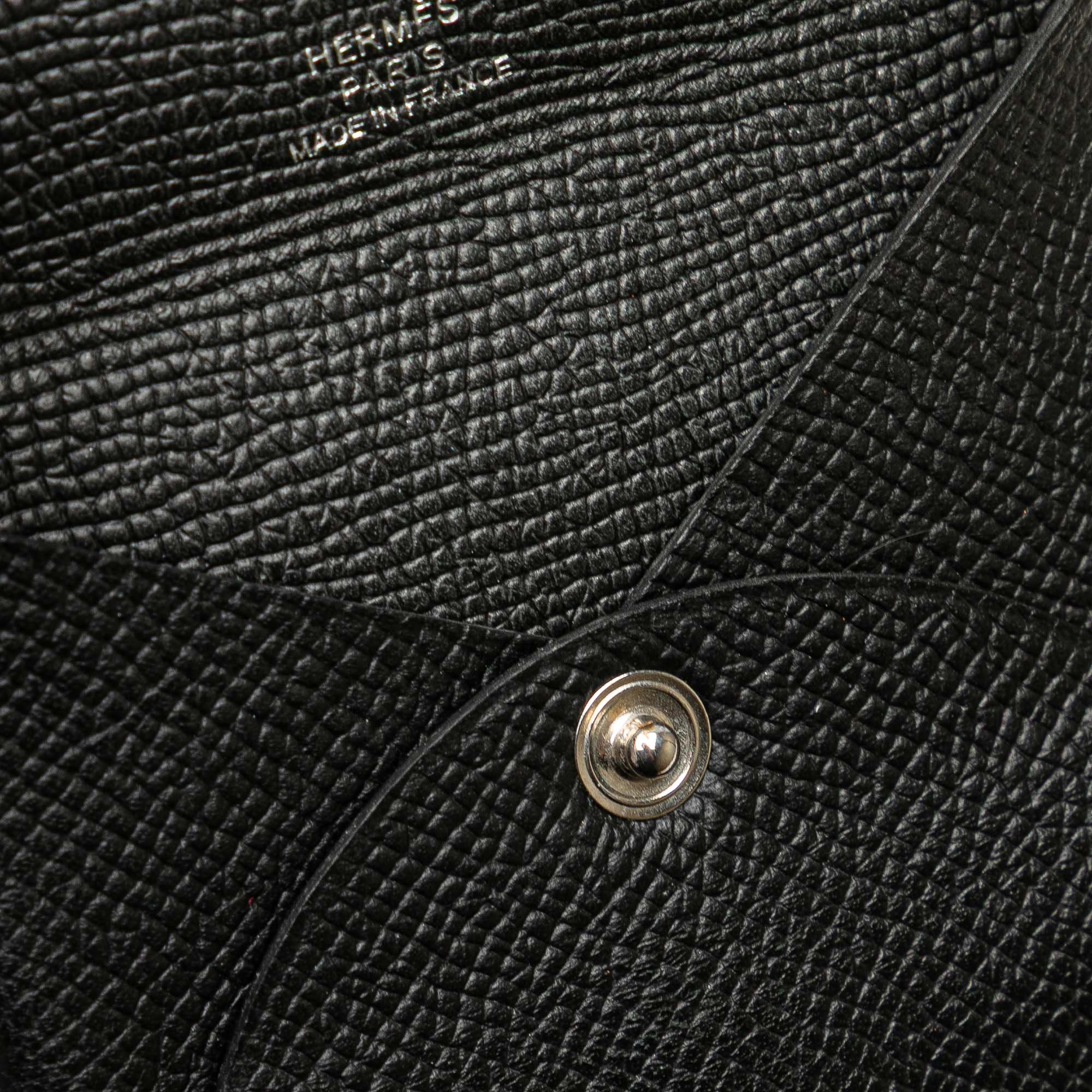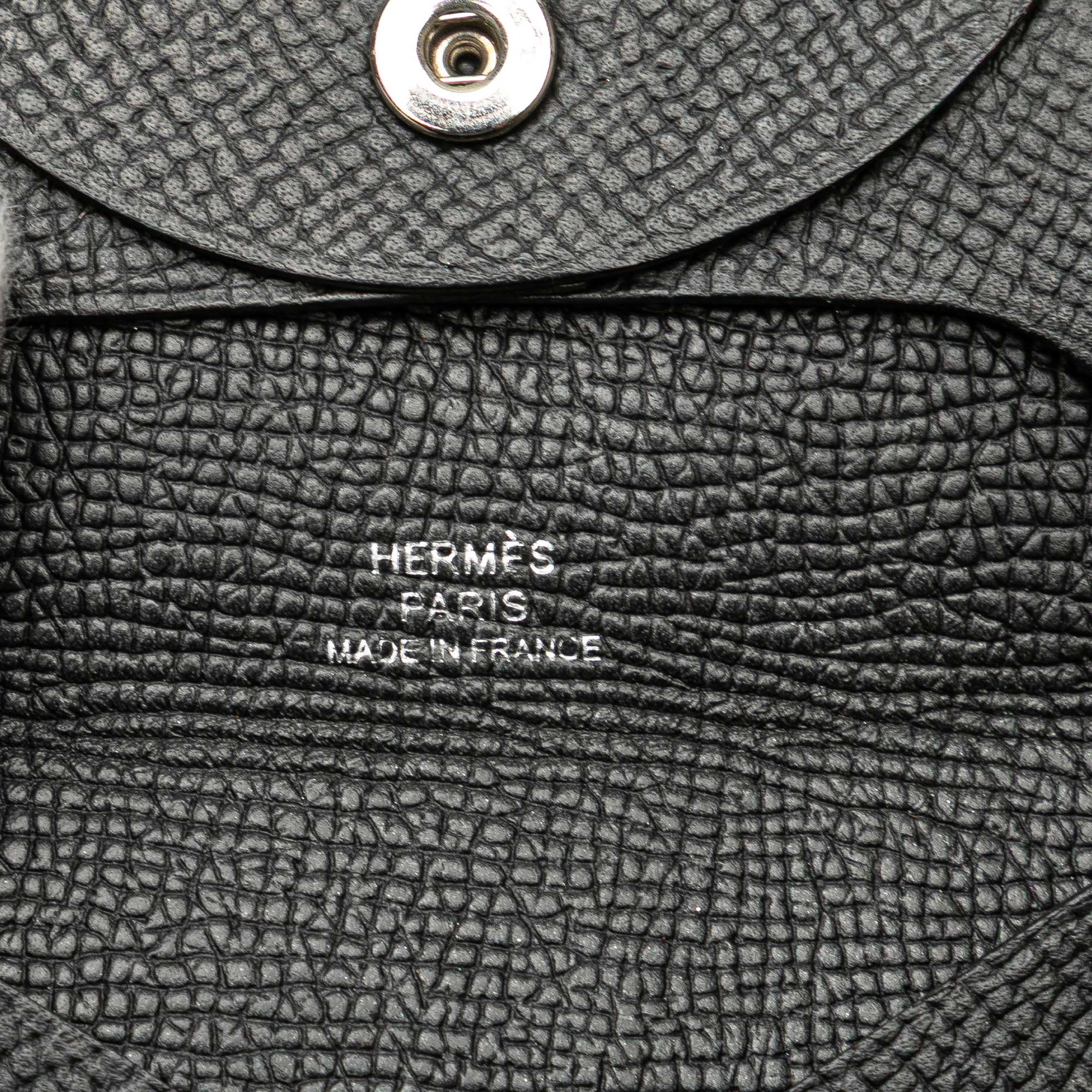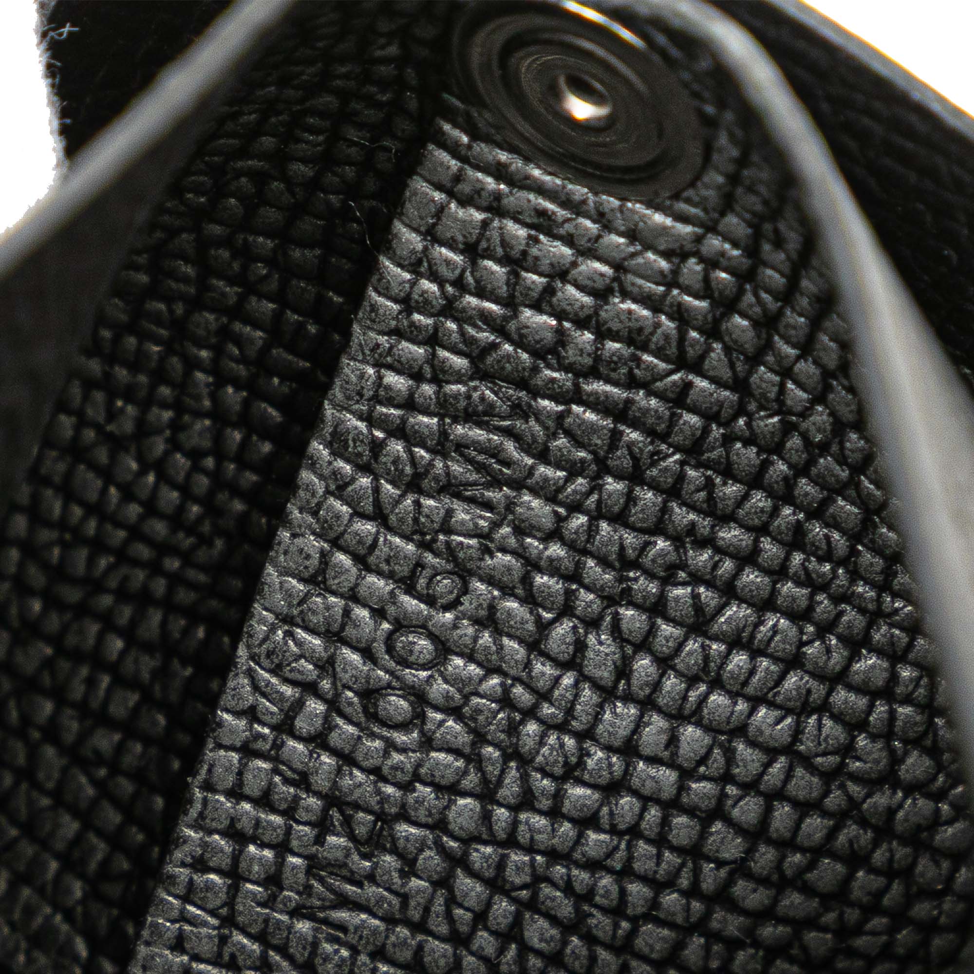 This coin pouch features an Epsom leather body in Noir color and a snap closure. Retail Price: 470.00