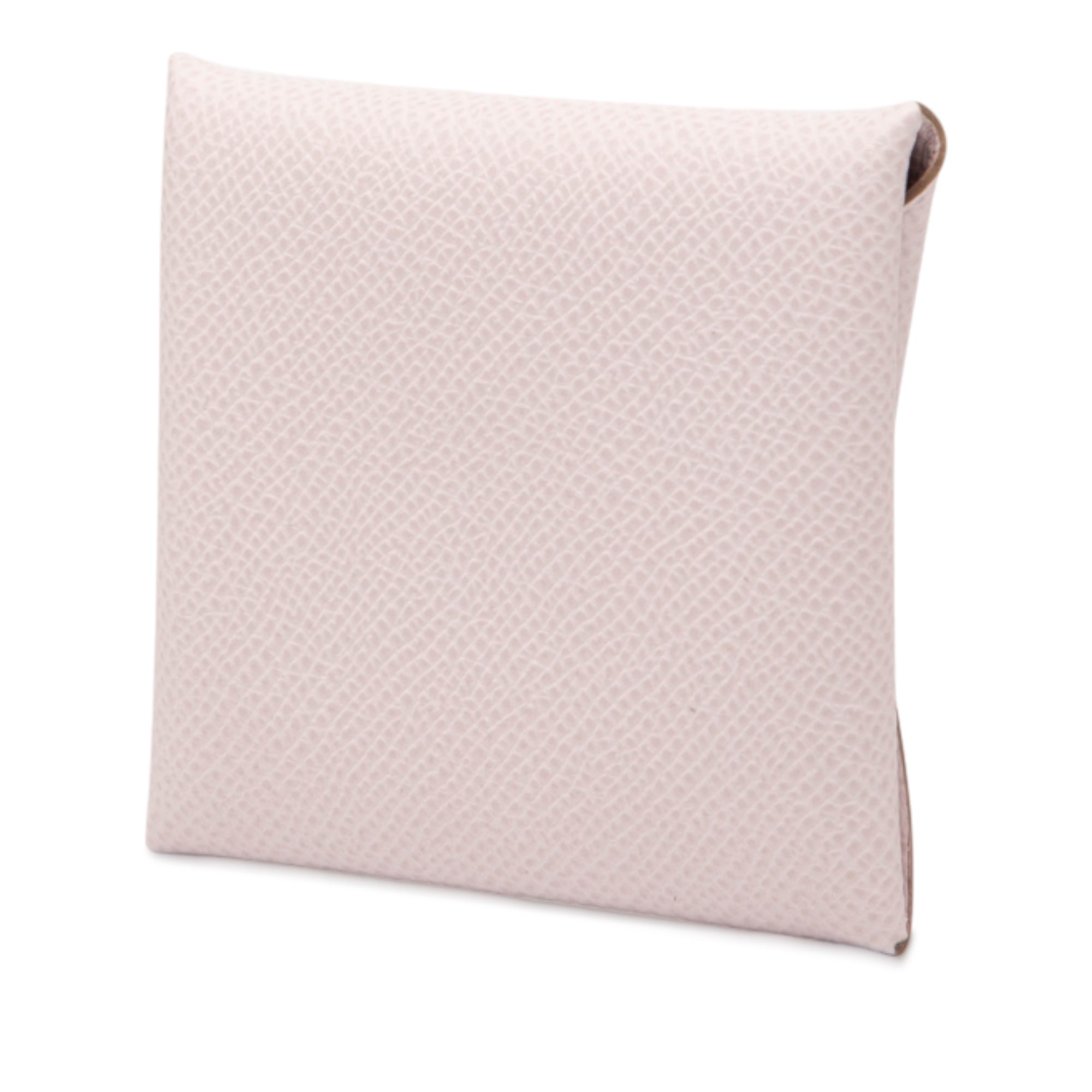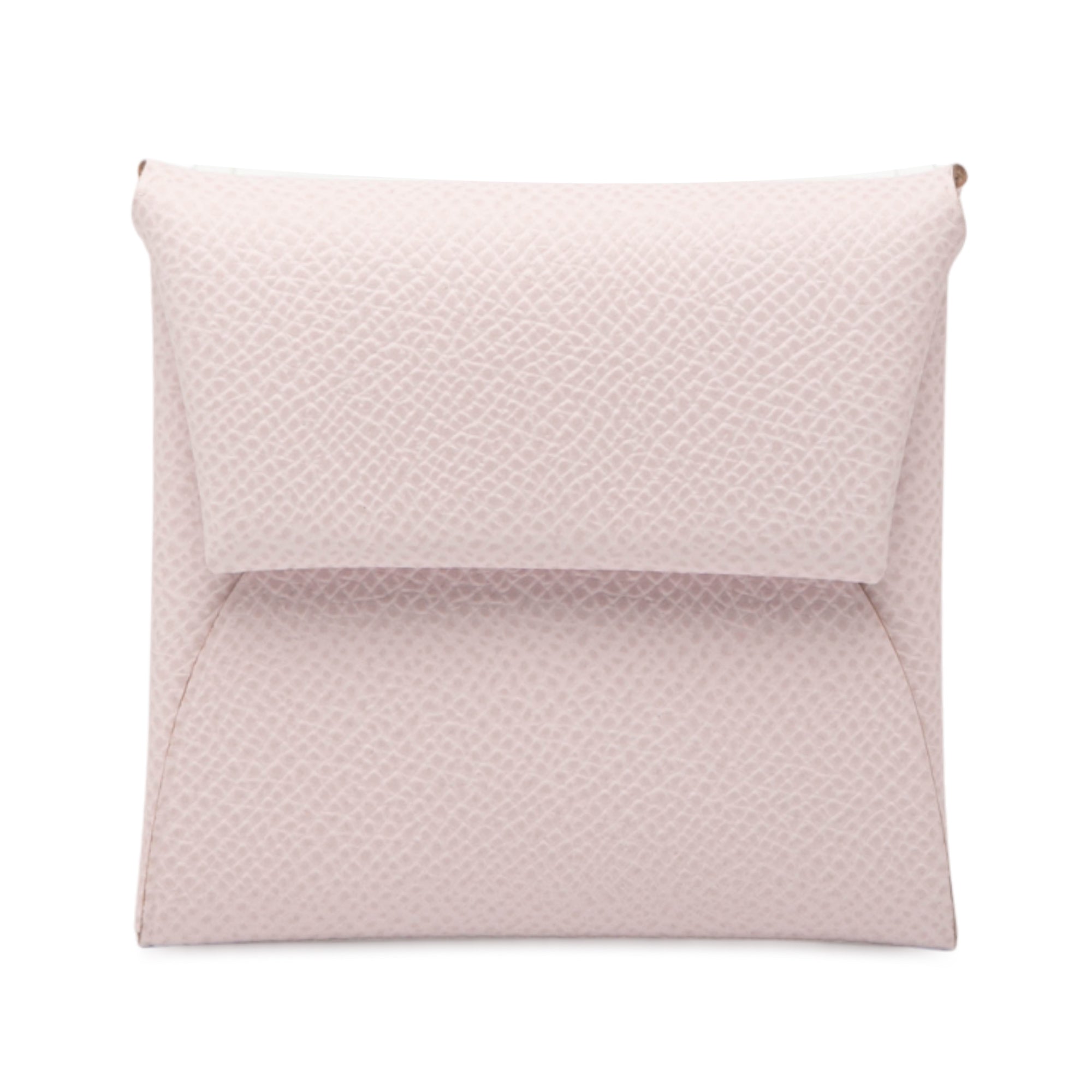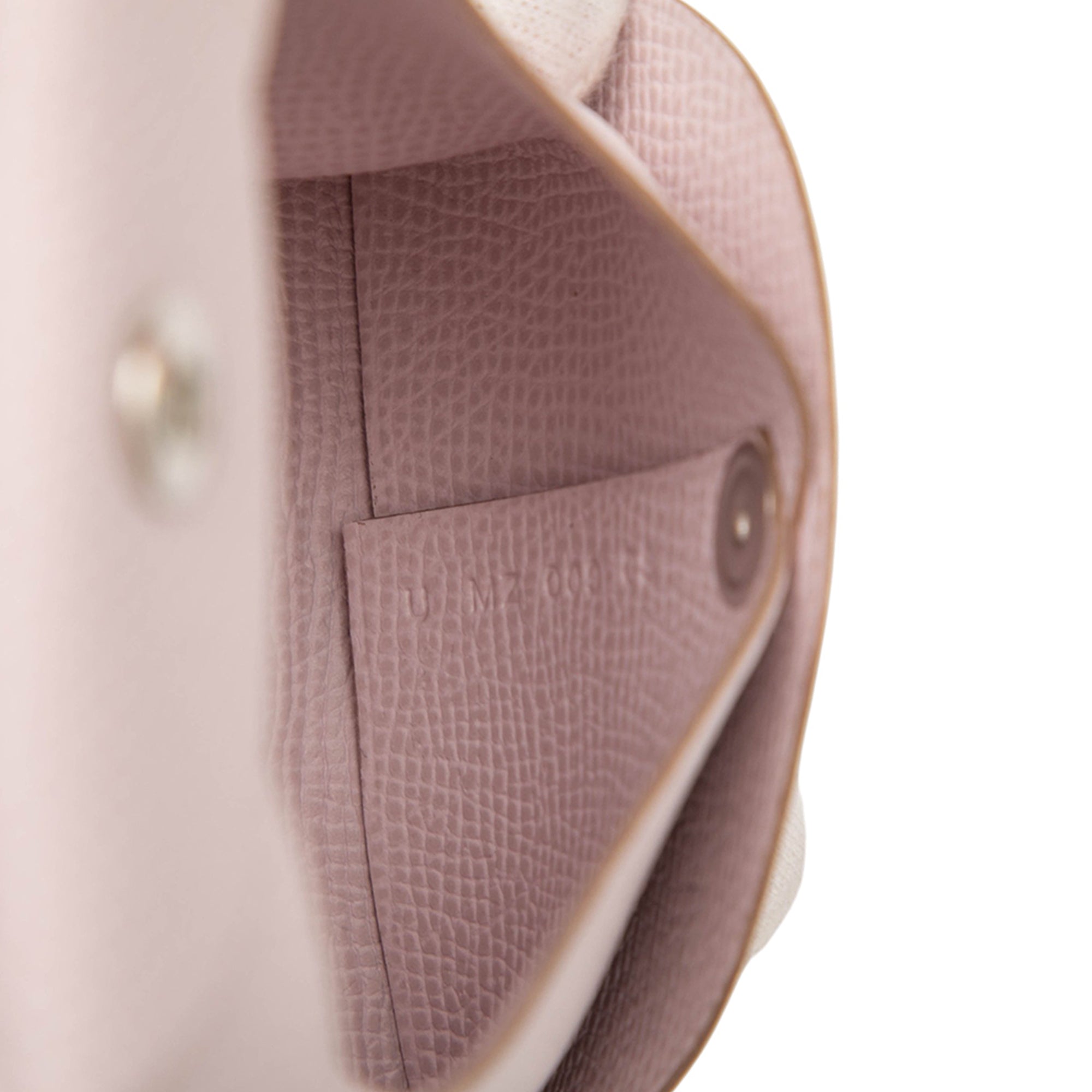 This coin pouch features an Epsom leather body in Mauve Pale color, a front flap snap button closure. Inclusion: box. Retail Price: 682.00