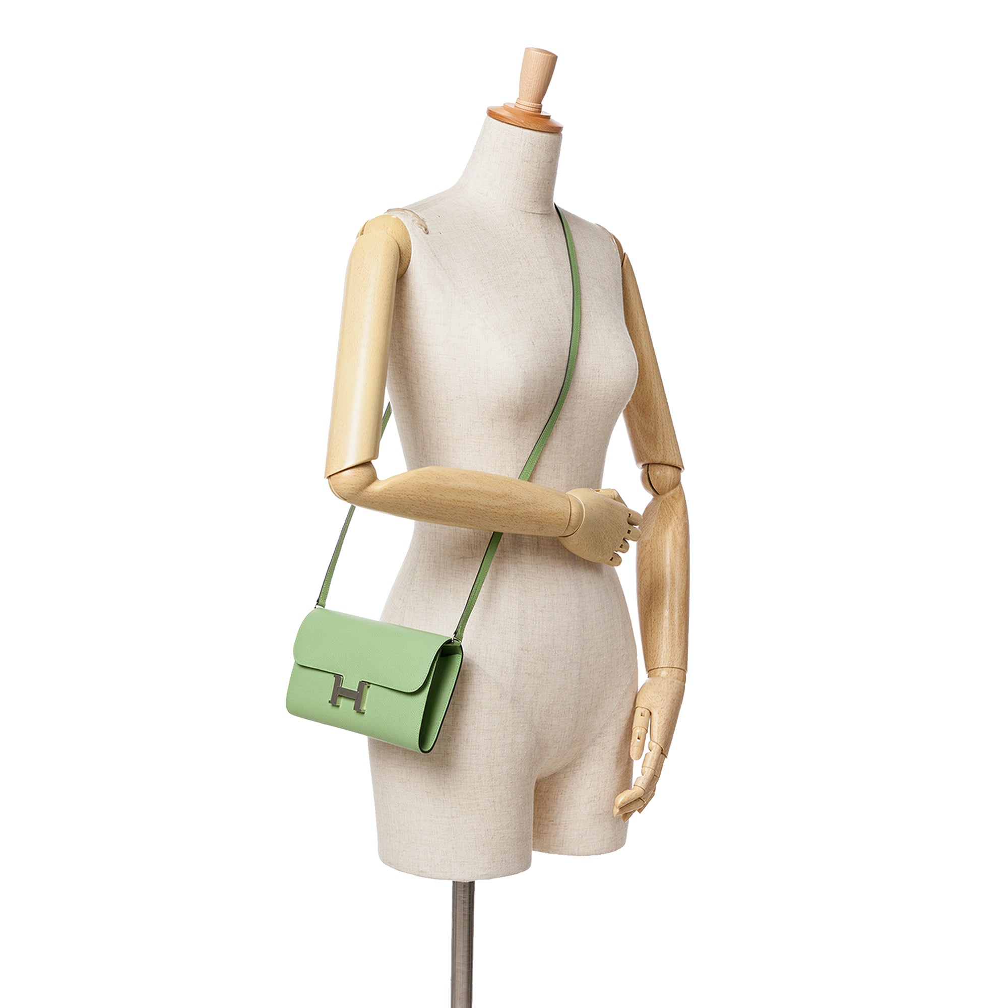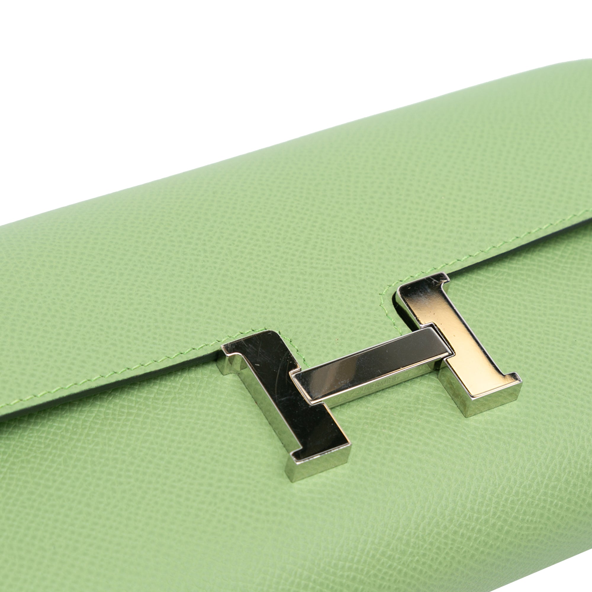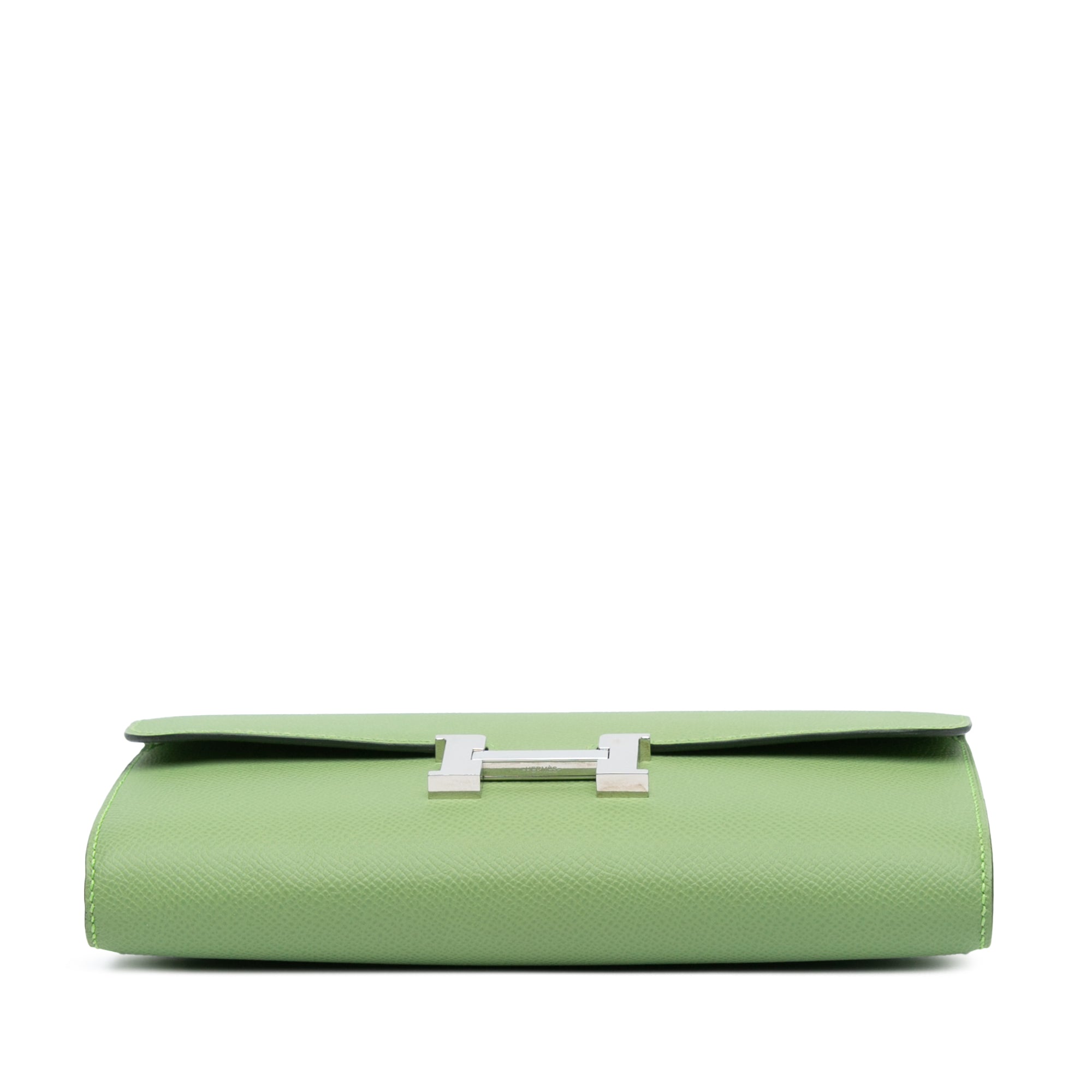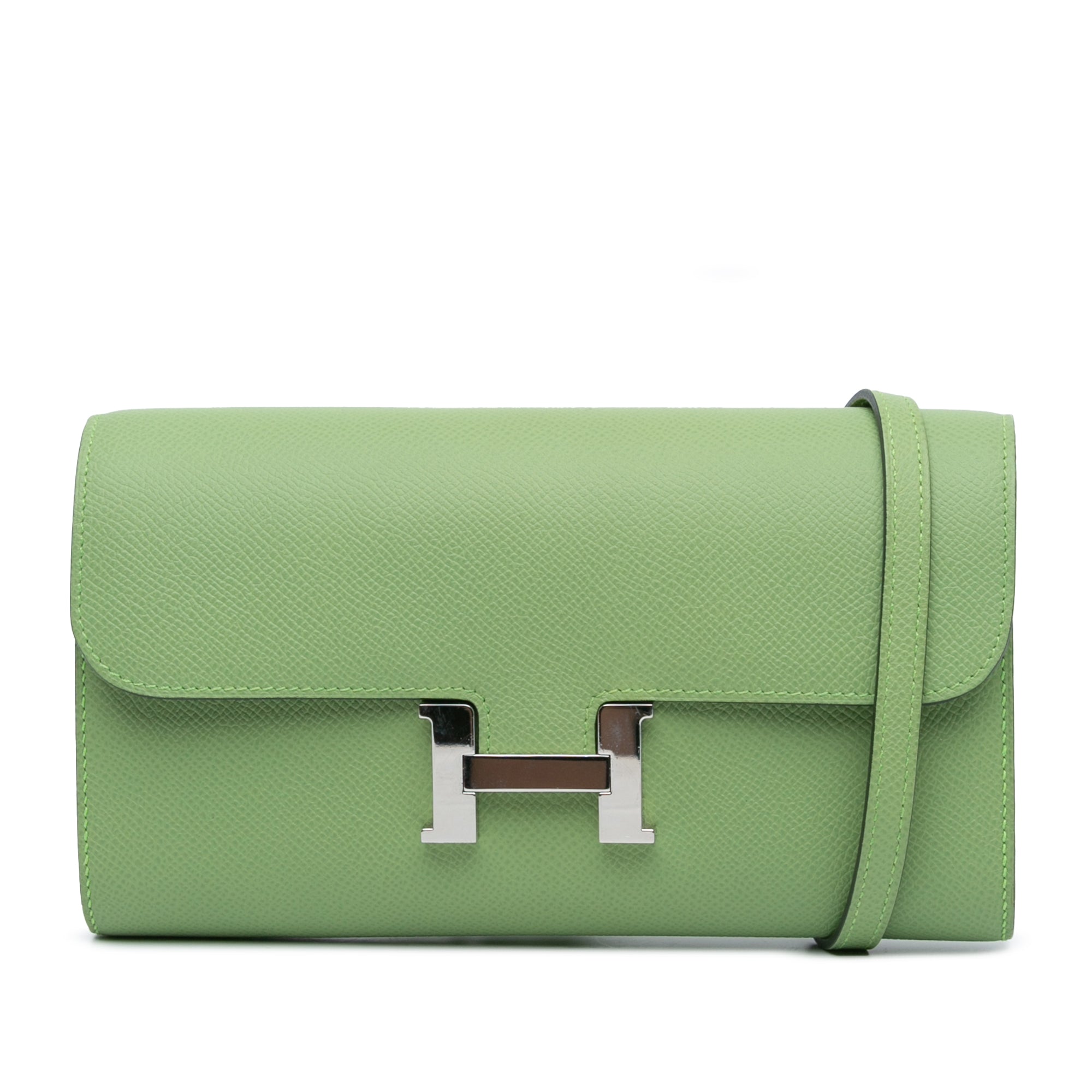 The Constance Long Wallet To Go features an epsom leather body, a detachable flat leather strap, a front flap with push lock closure, an exterior back slip pocket, and interior zip and slip pockets. Inclusion: box. Retail Price: 9000.00
