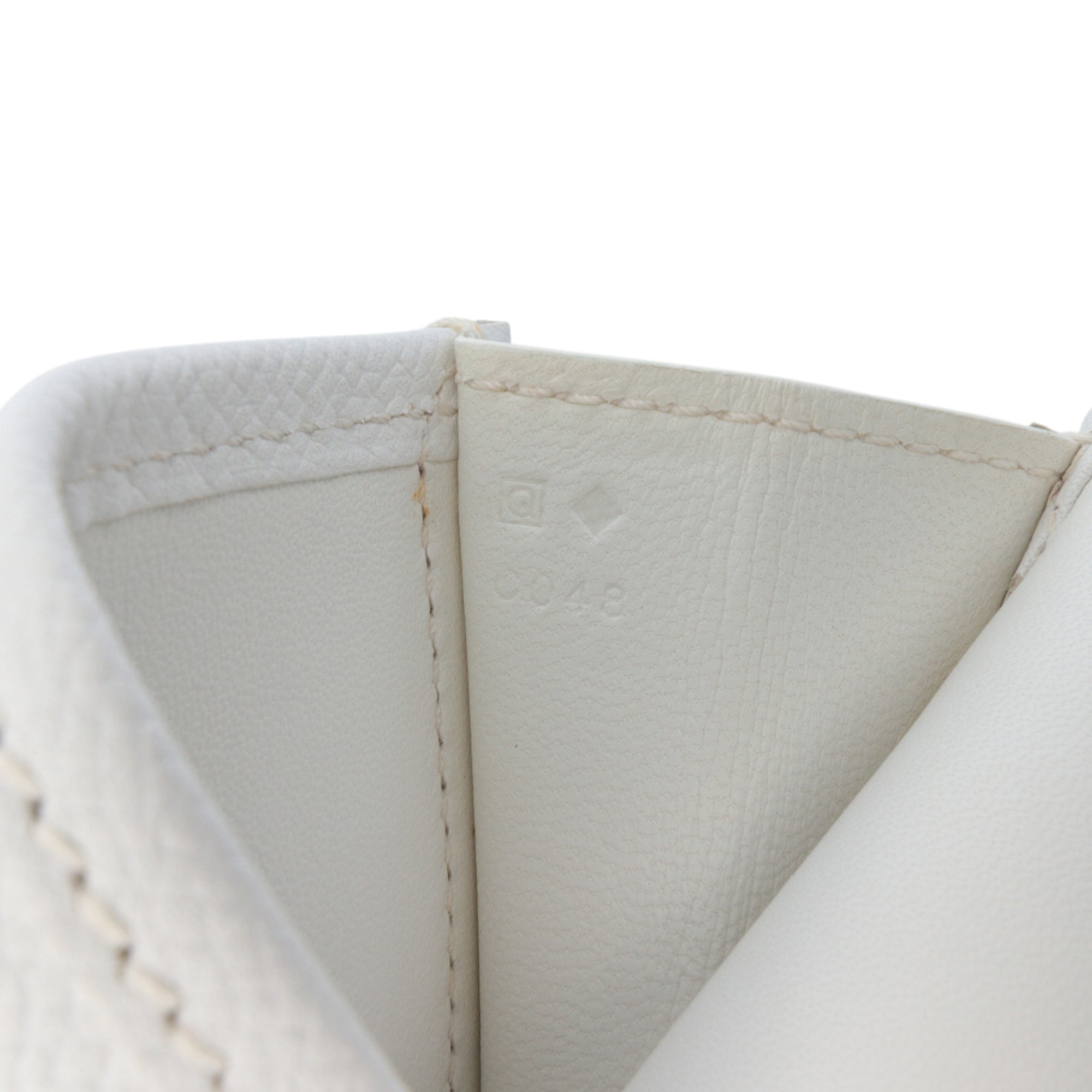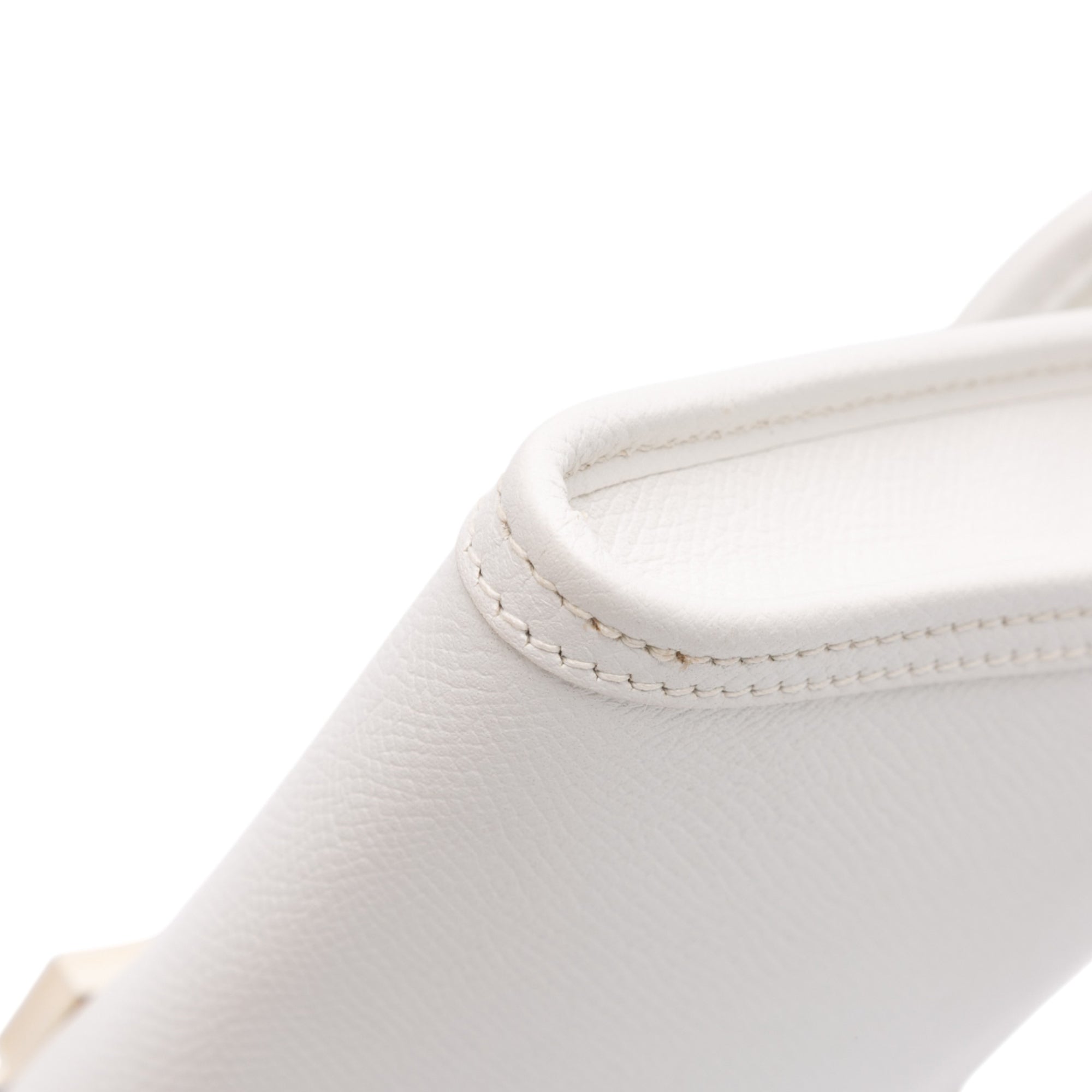 This Jige Elan features an Epsom leather body in White color, and a front flap with a pull through closure. Retail Price: 3675.00