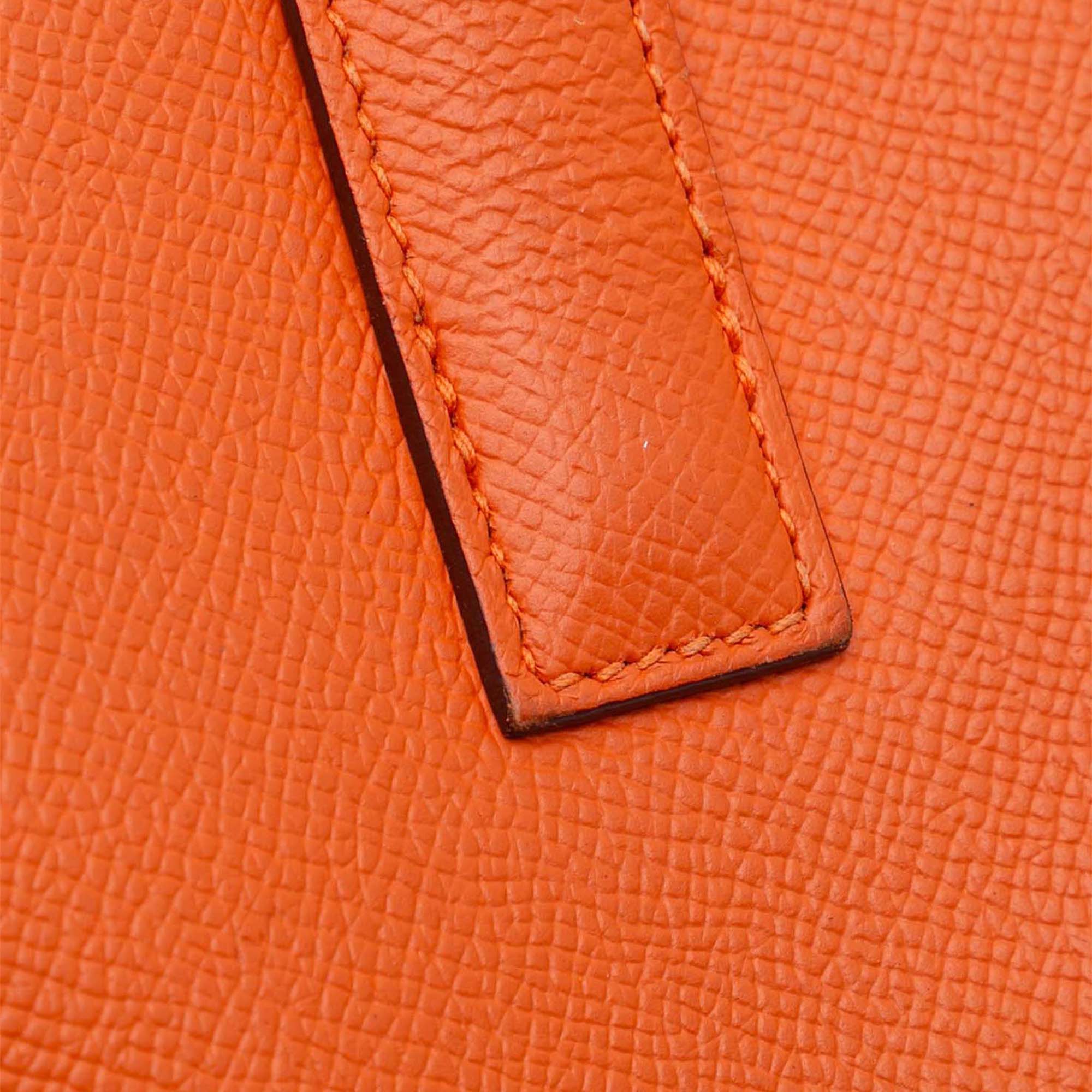 This Jige Elan features an Epsom leather body in Orange color and a front flap with a pull-through closure. Retail Price: 4050.00