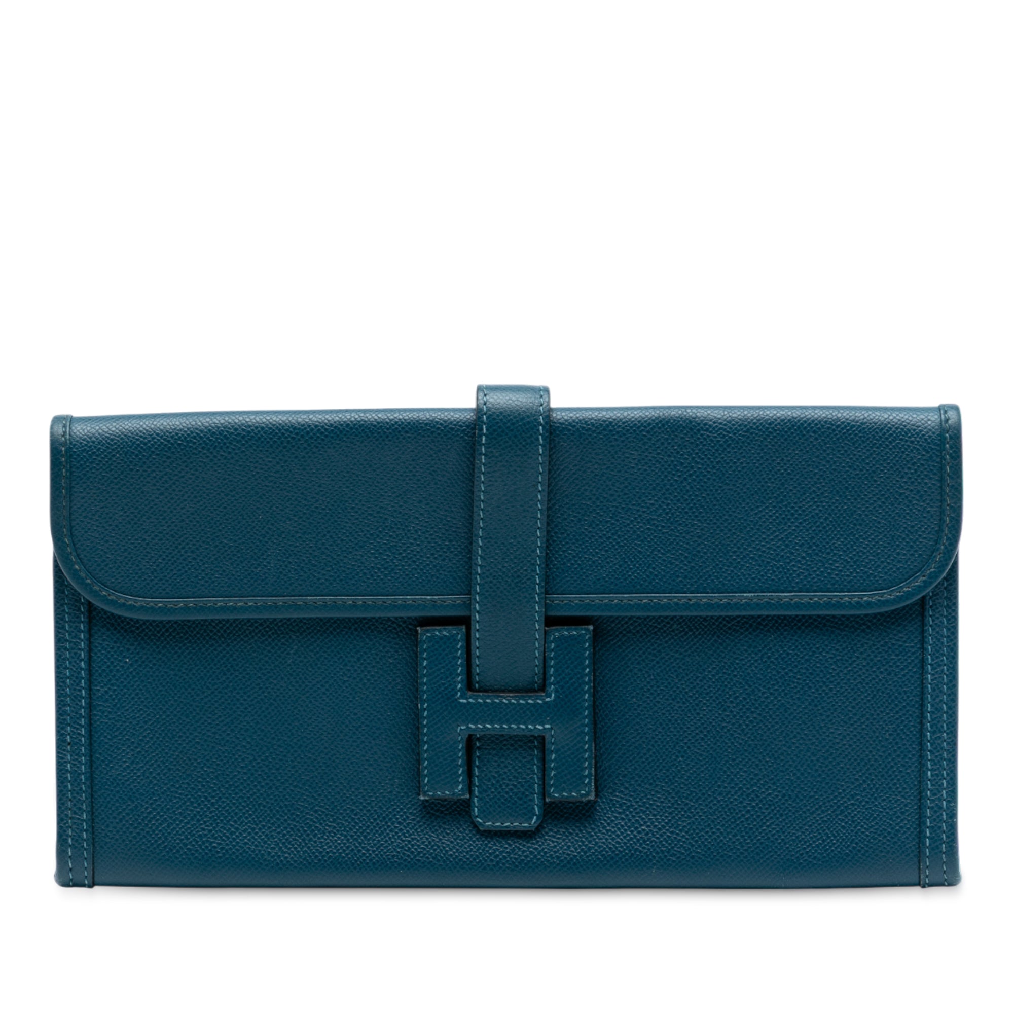 This Jige Elan features an Epsom leather body in Vert Bosphore color and a front flap with a pull-through closure. Retail Price: 3875.00