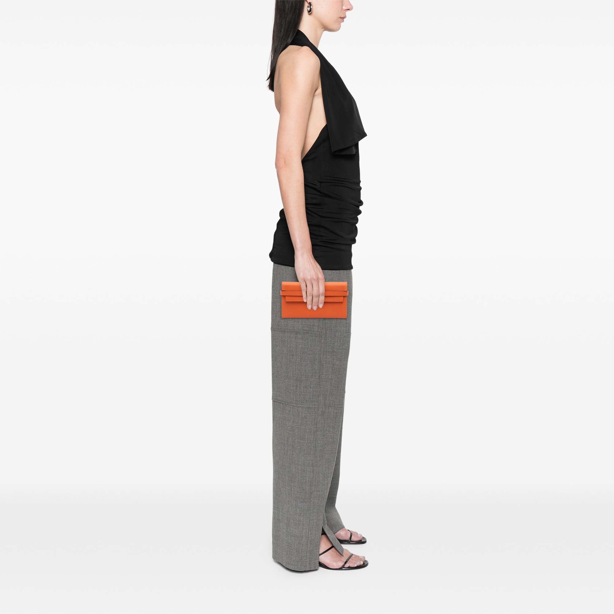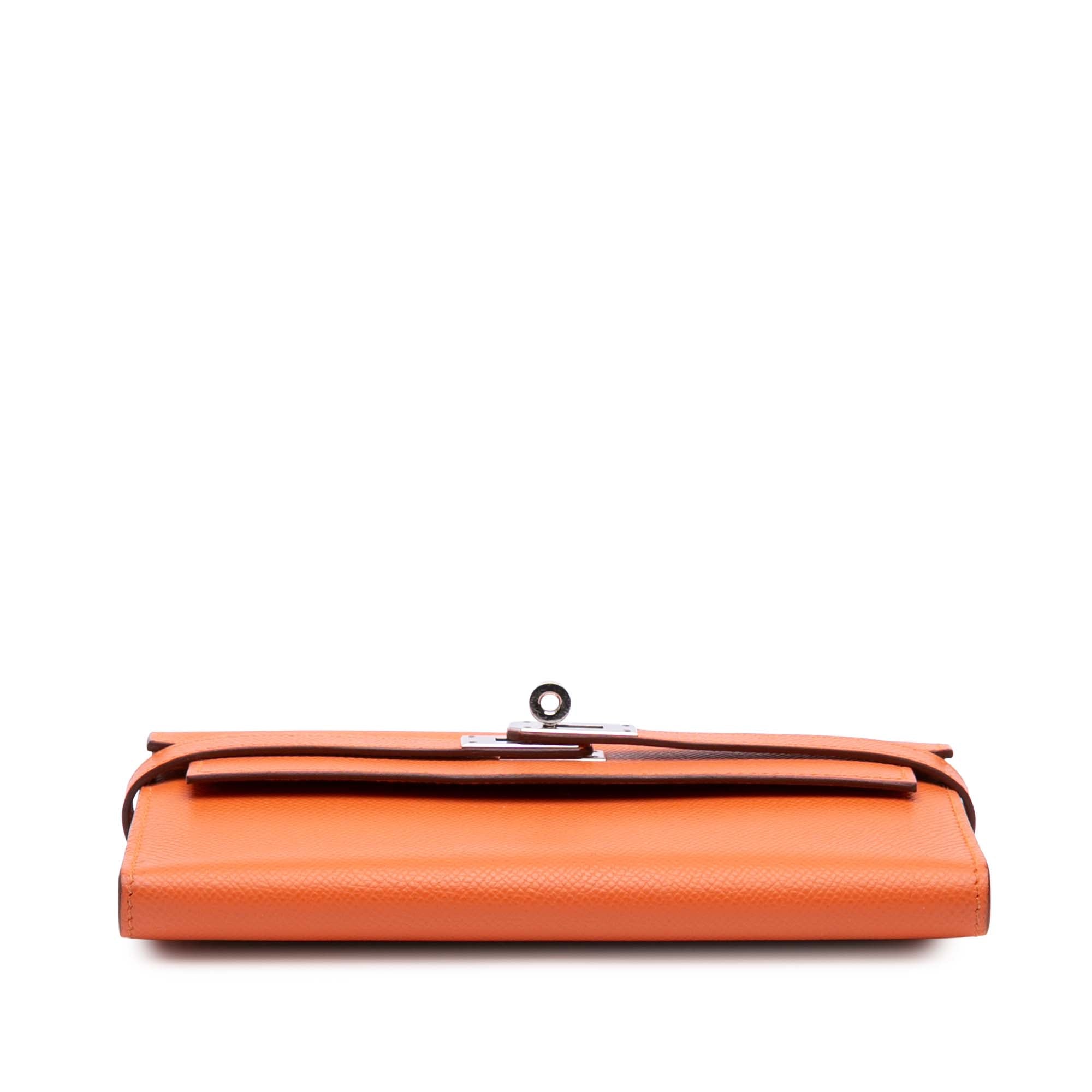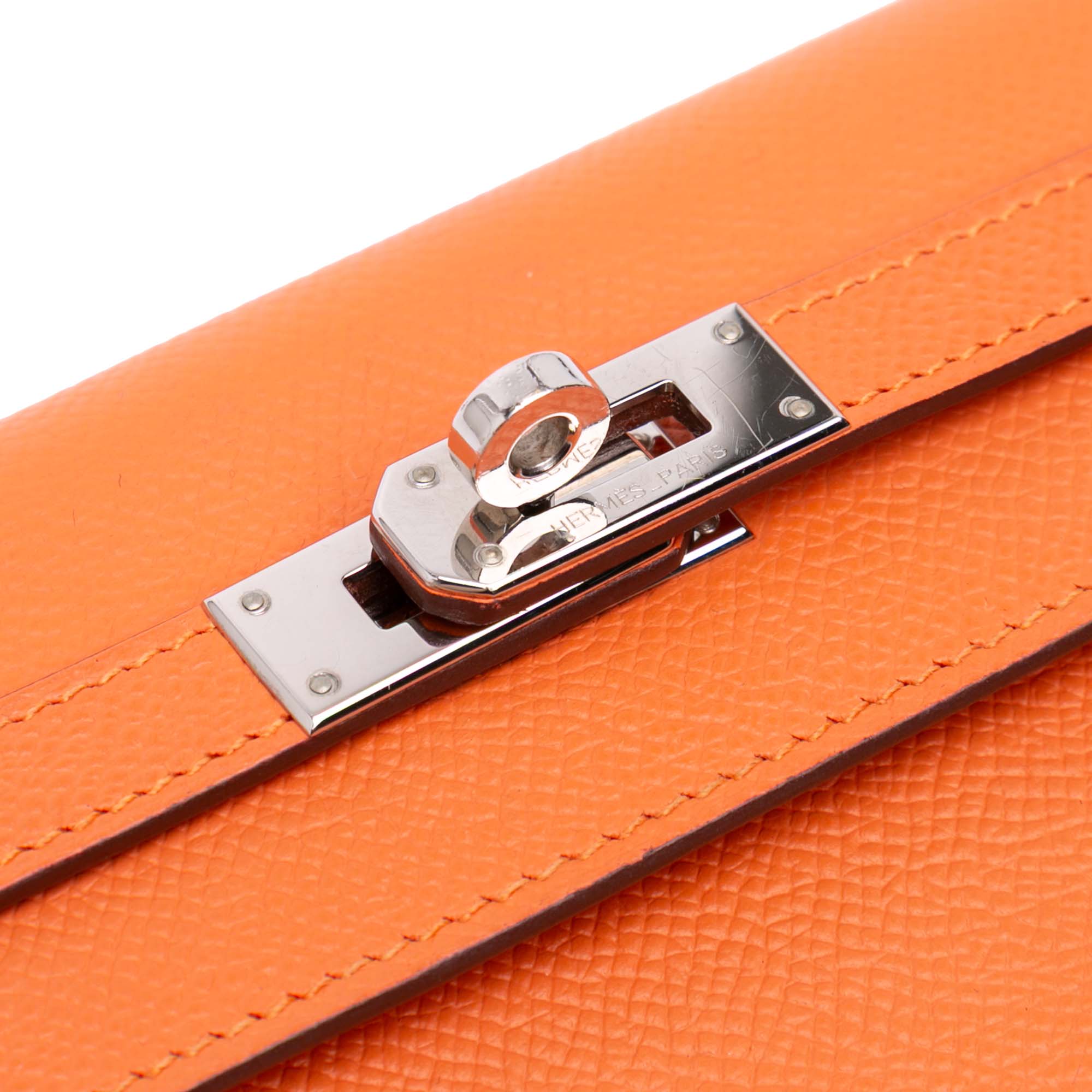This Kelly long wallet features an Epsom leather body, a front turn lock closure, and interior zip and slip pockets. Retail Price: 3500.00