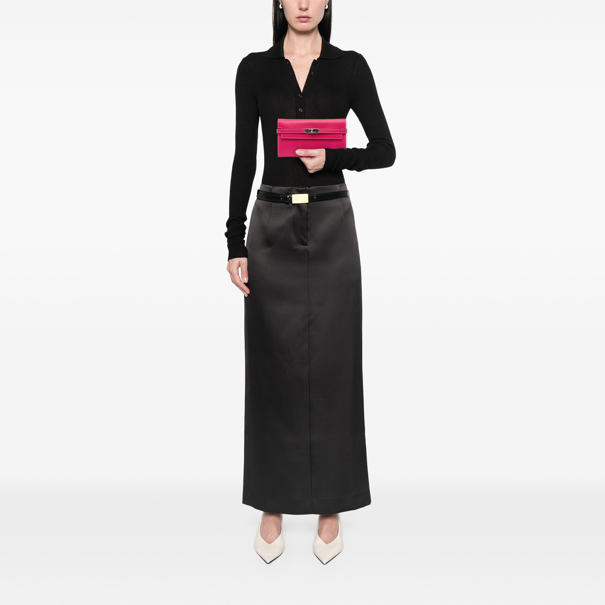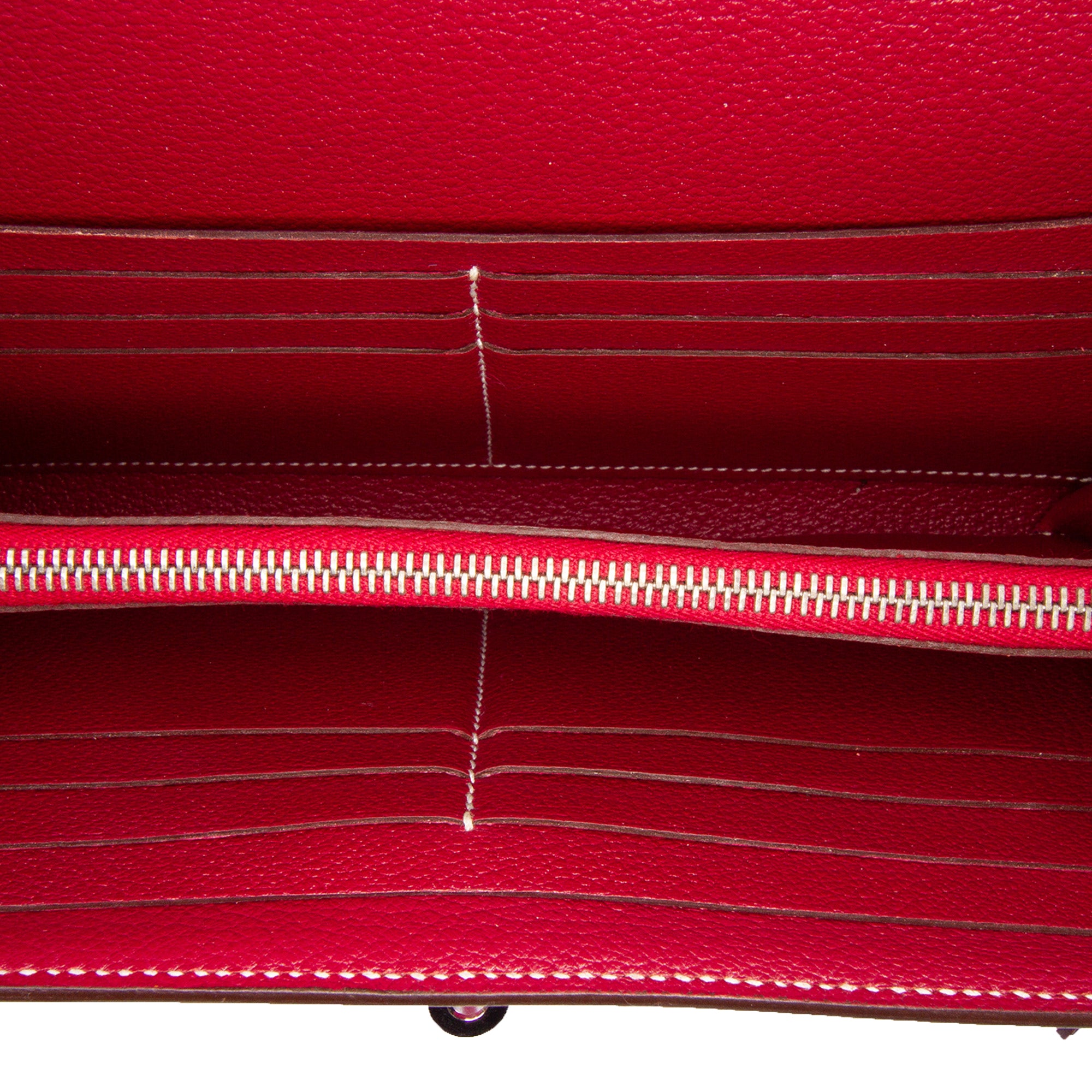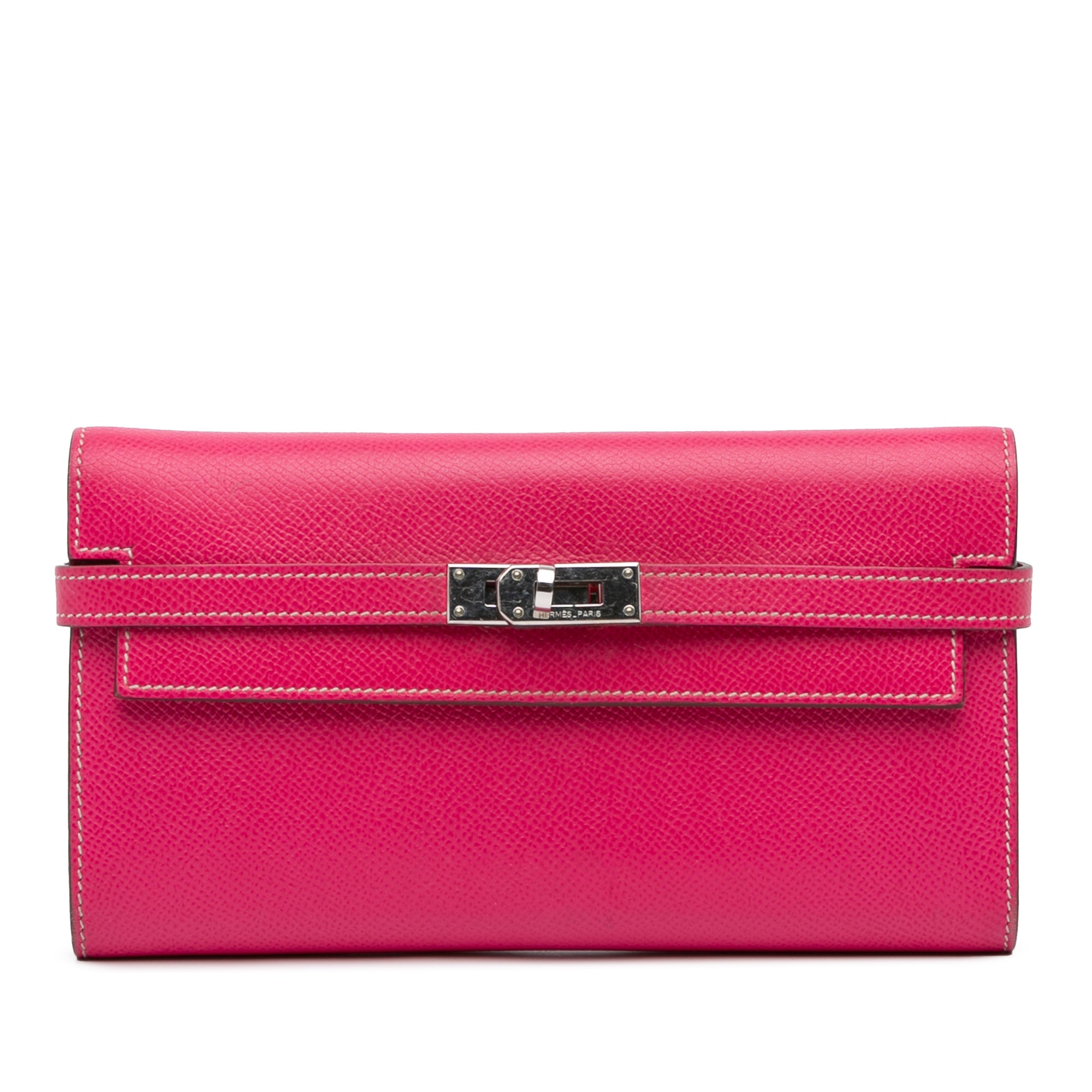 The Kelly wallet features an Epsom leather body, a front flap with turn lock closure, and interior zip and slip pockets. Retail Price: 5580.00