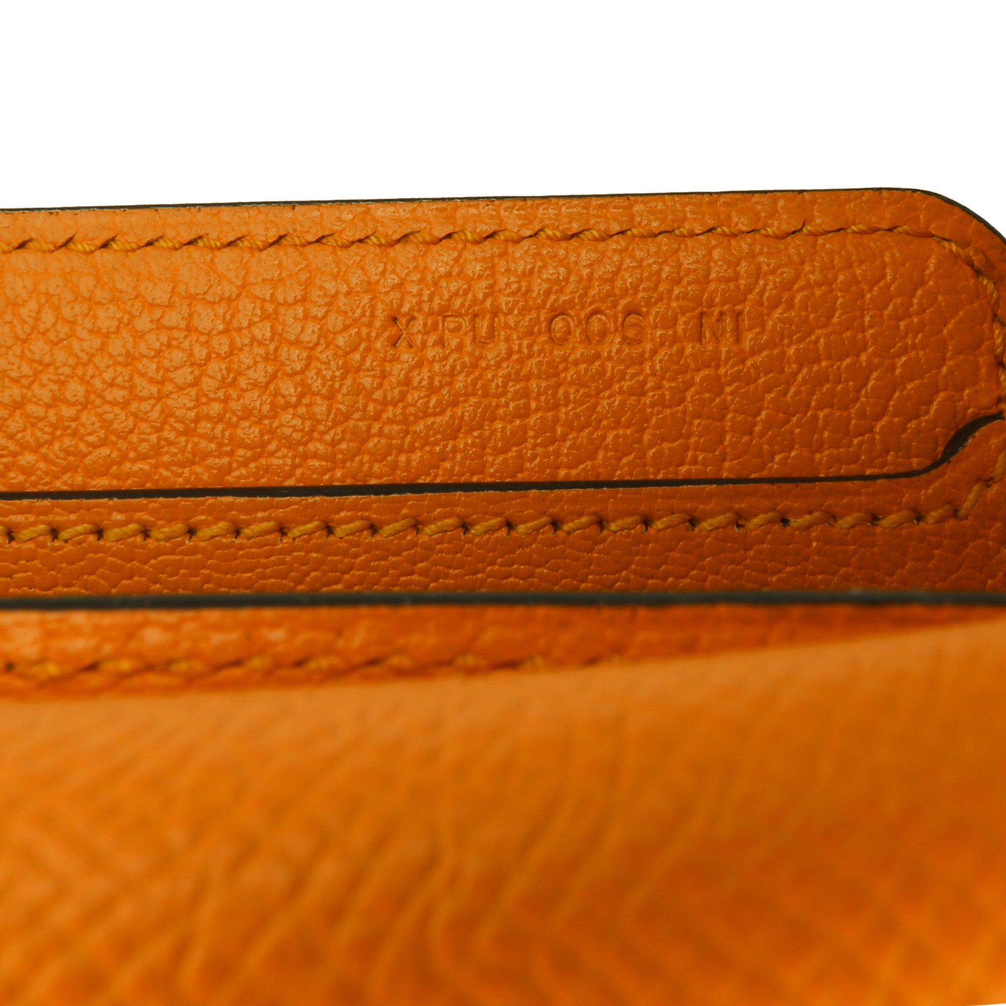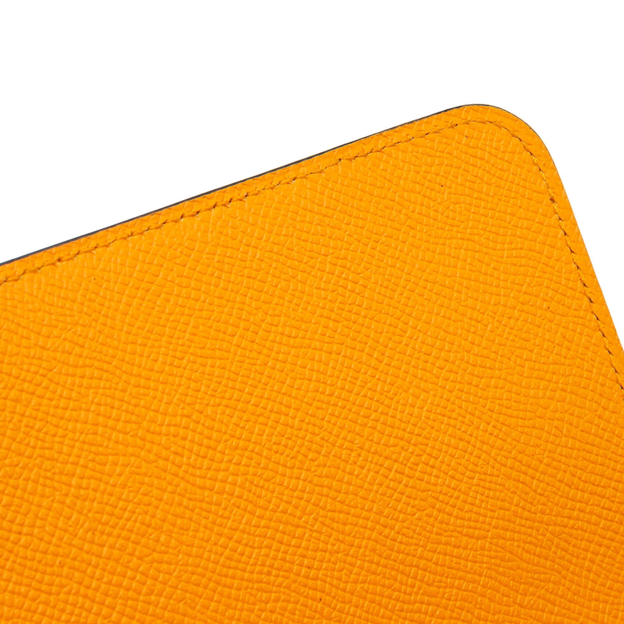 This clutch features an Epsom leather body in Jaune D'Or color and a front flap closure. Retail Price: 4475.00