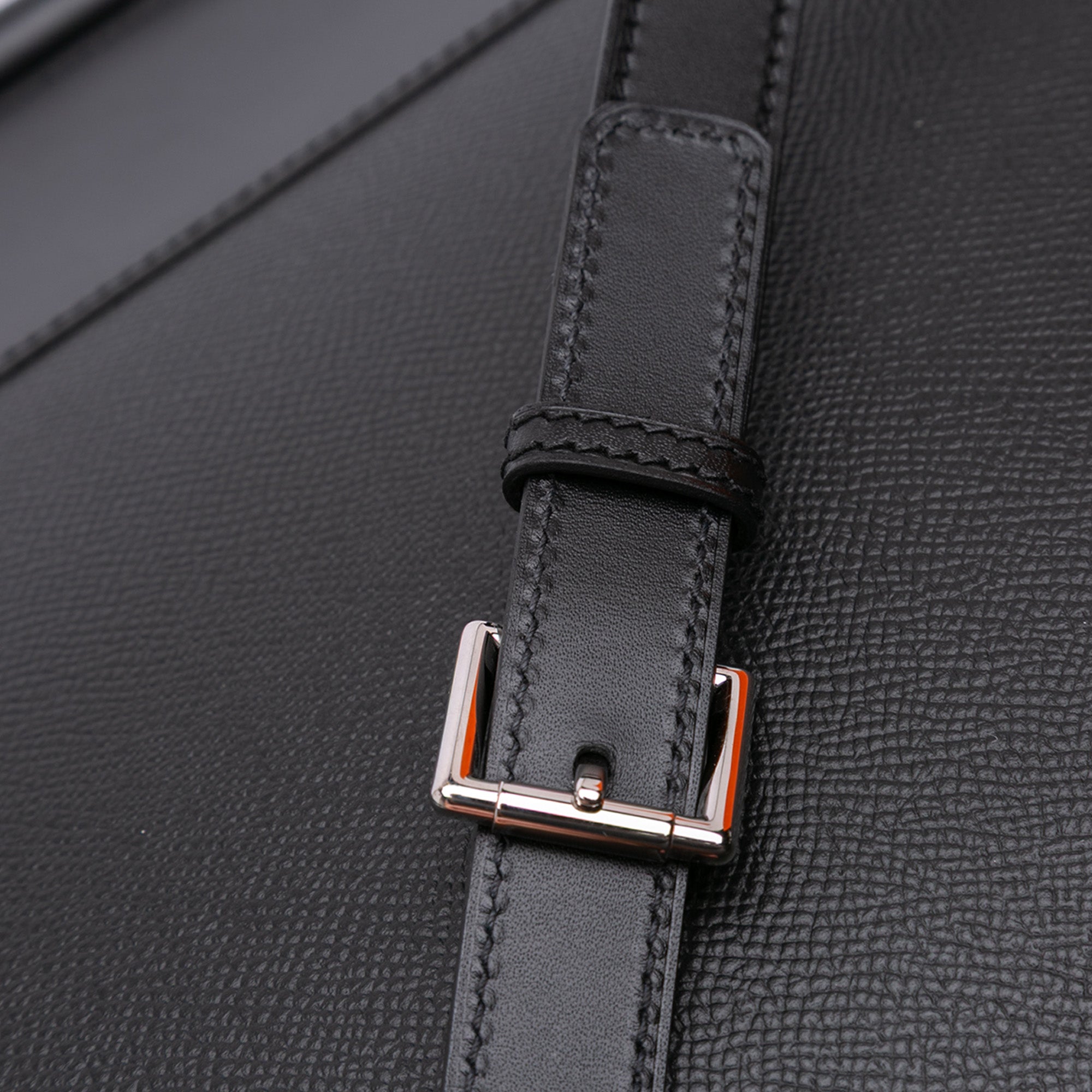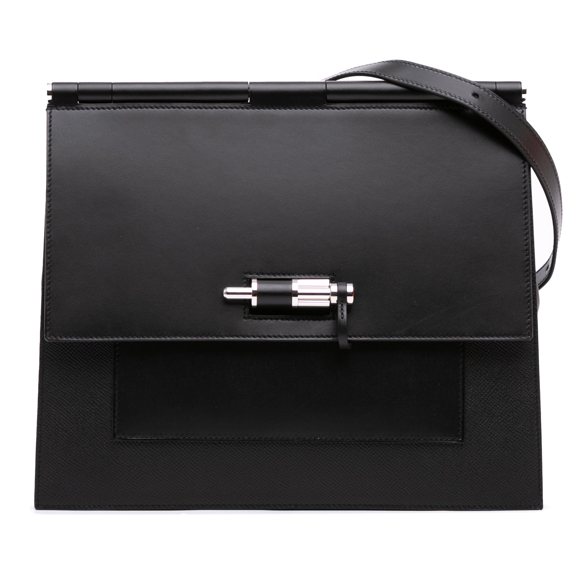 This Sacabar 30 features a swift and epsom leather body in Noir color, an adjustable flat shoulder strap, a front flap with gold tone toggle closure, an exterior front slip pocket, and an interior slip pocket. Inclusion: Dust bag, box. Retail Price: 6350.00