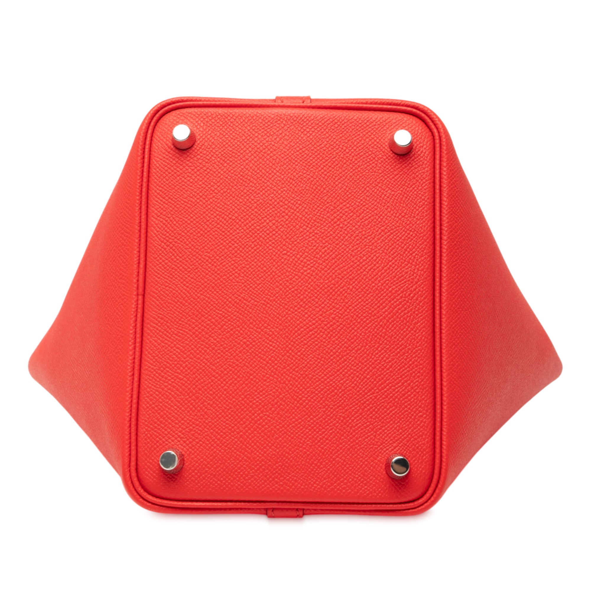 This Tressage Picotin features a Epsom leather body in Rouge Coeur, Bleu du Nord, and Rouge H colors, flat handle straps, and an open top with a pull through strap and padlock closure. Inclusion: box. Retail Price: 3600.00