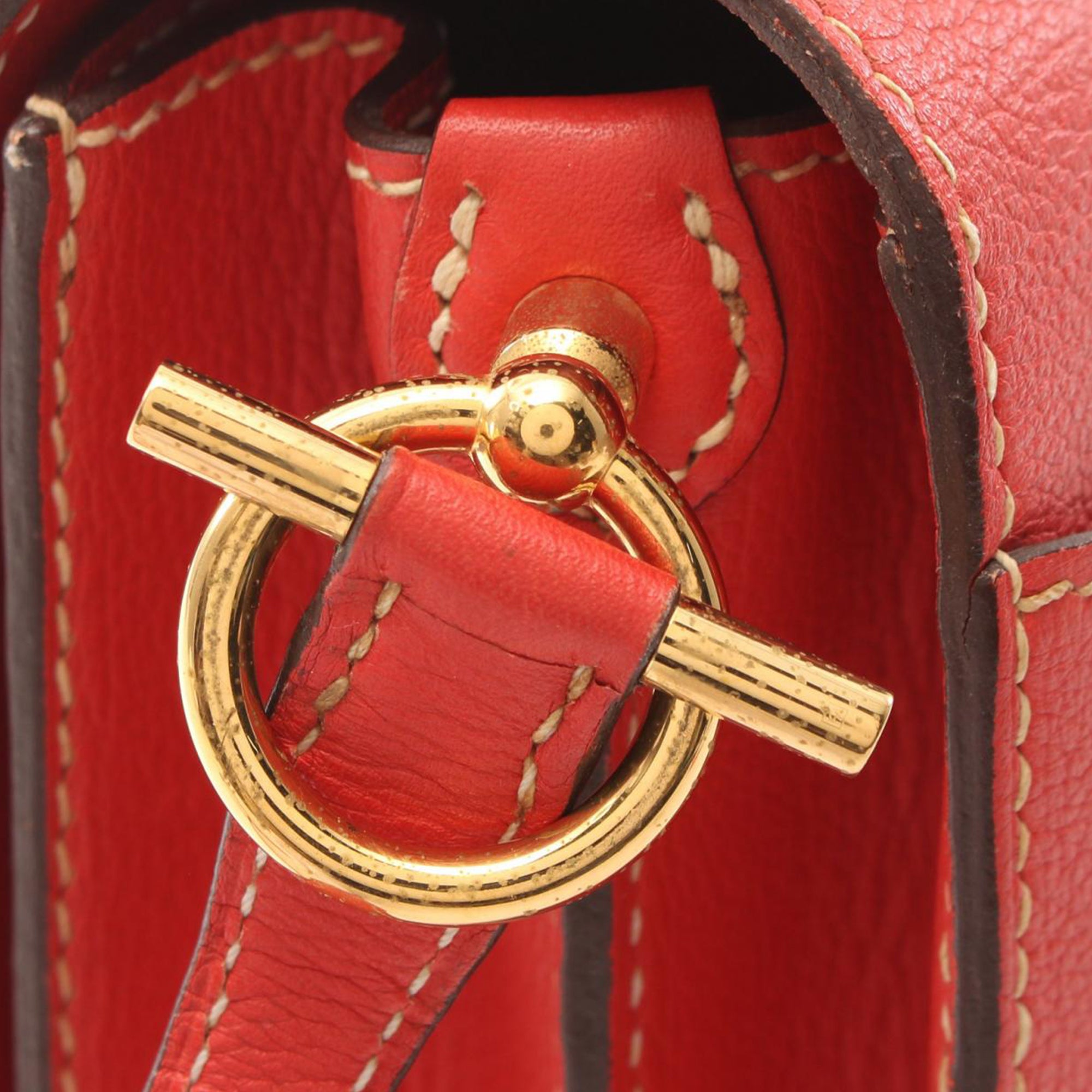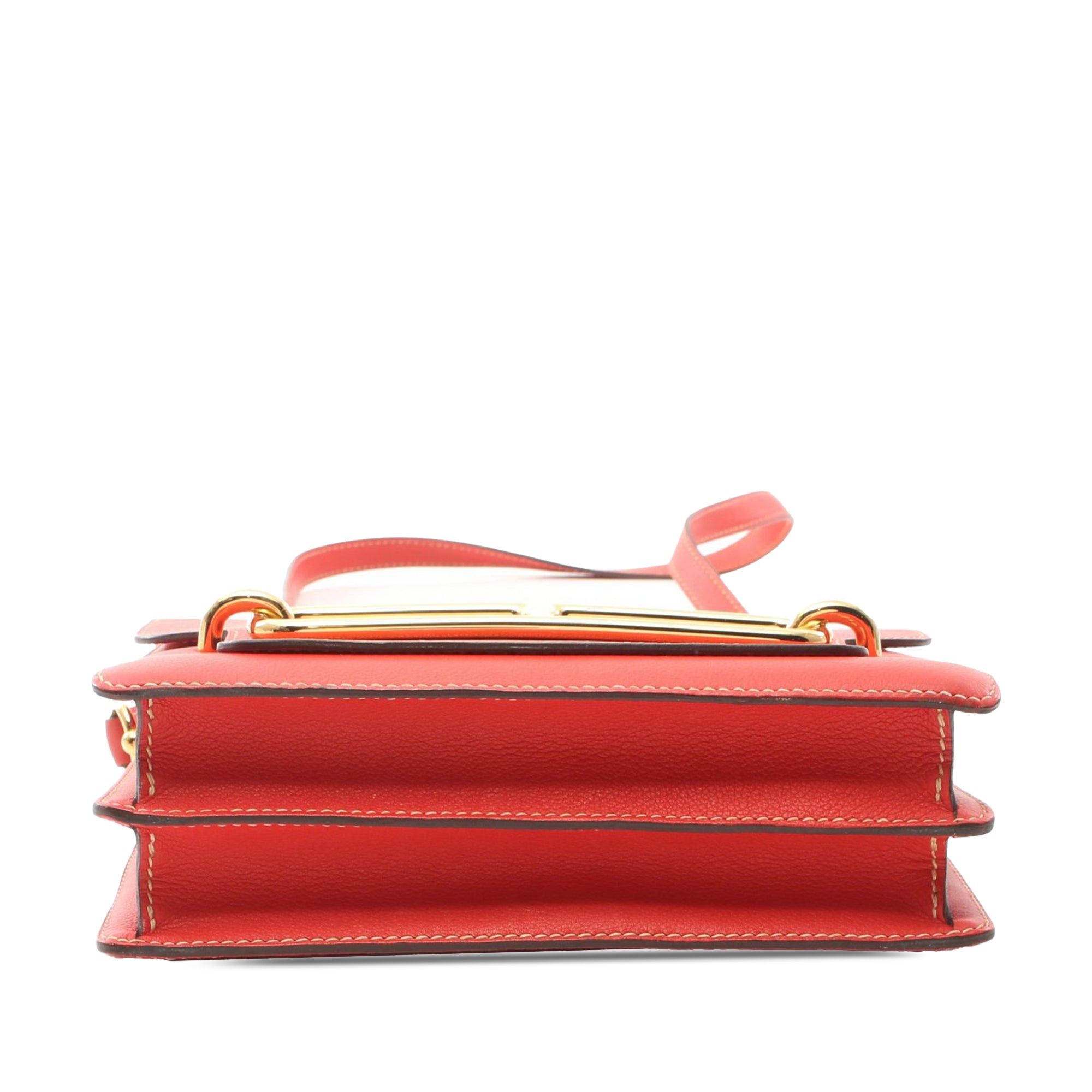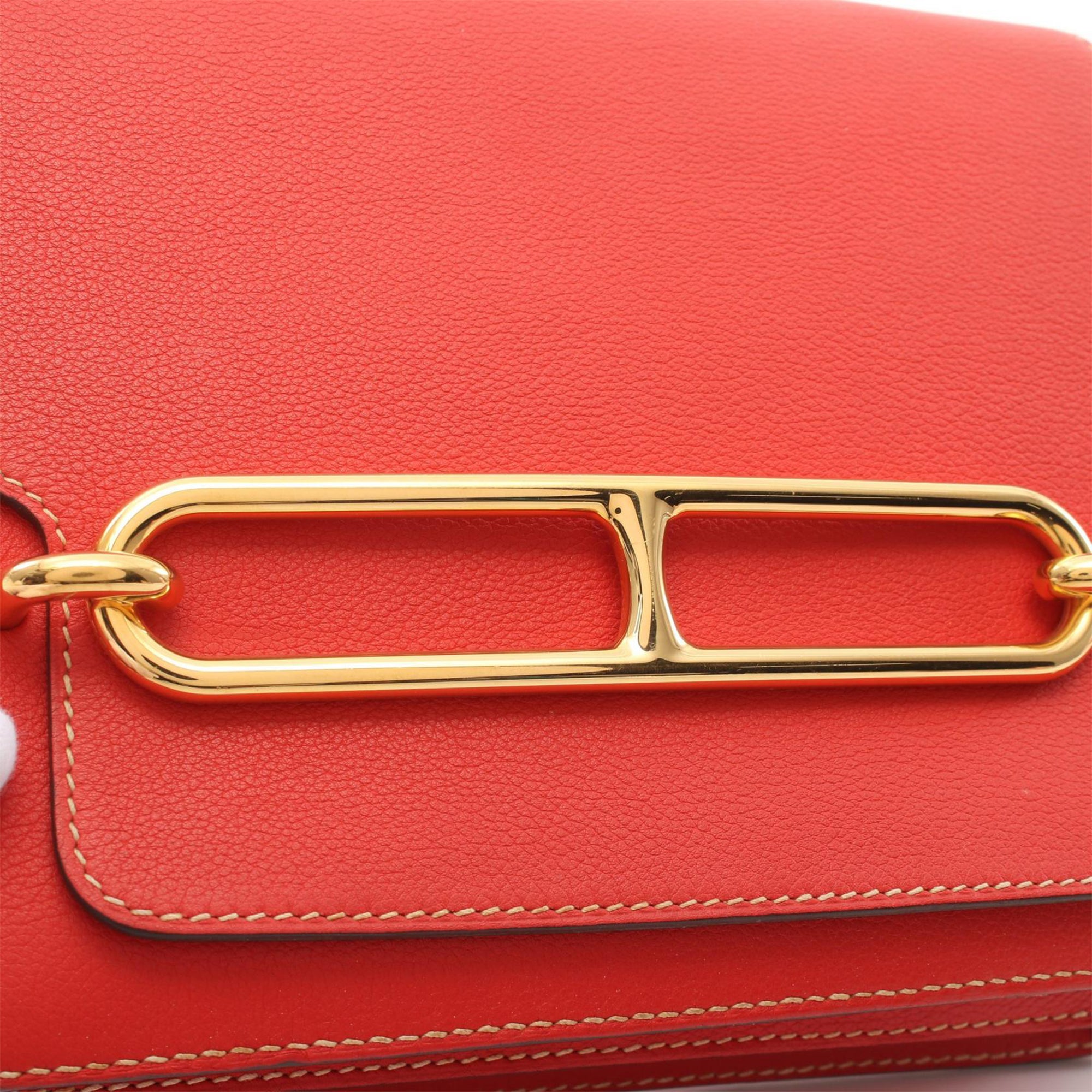 This Sac Roulis features an Evercolor leather body in Rouge Pivoine color, a flat leather strap, a front flap with pull-through closure, and interior slip pockets. Retail Price: 9000.00