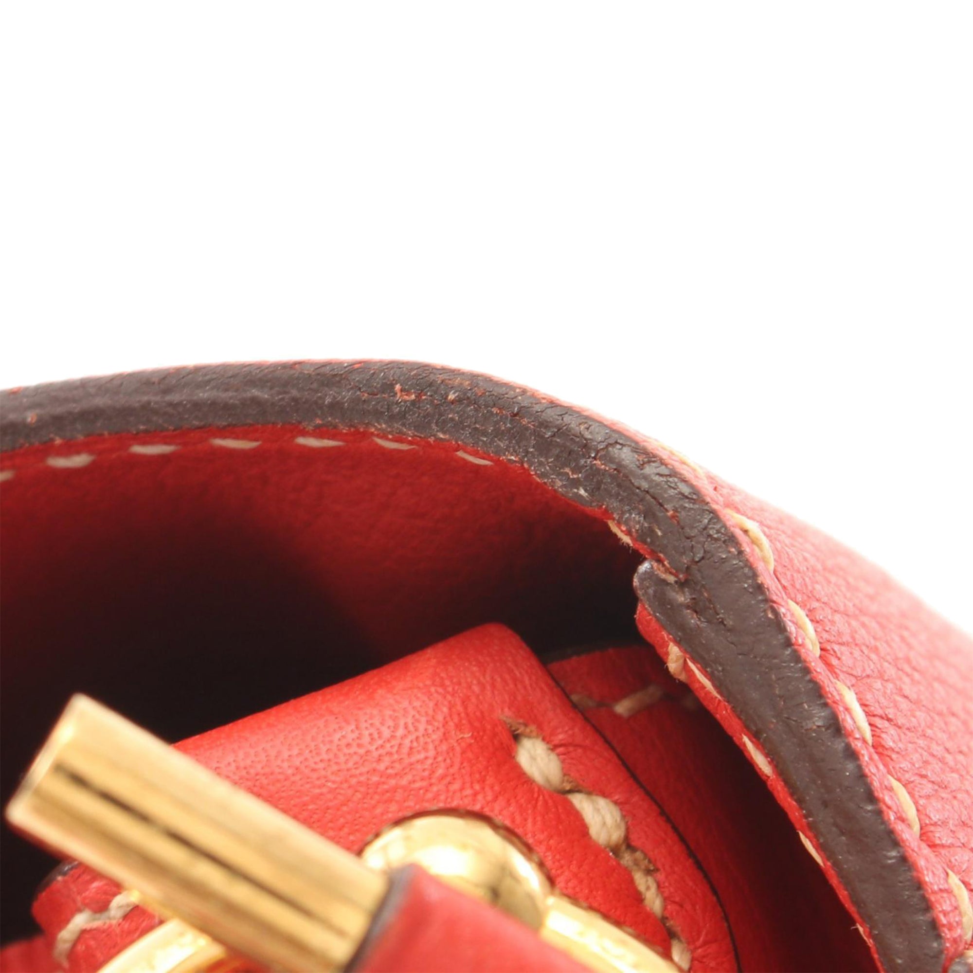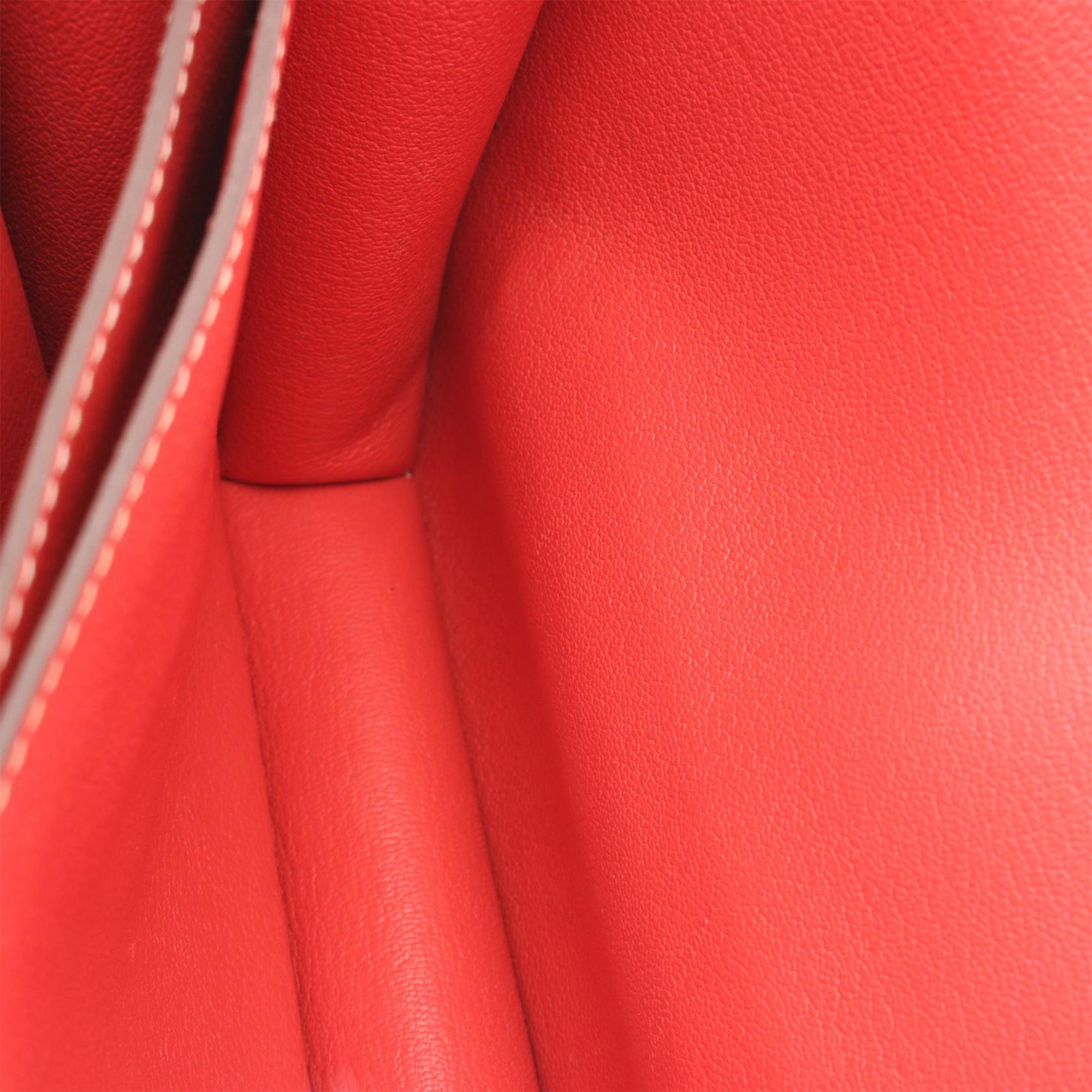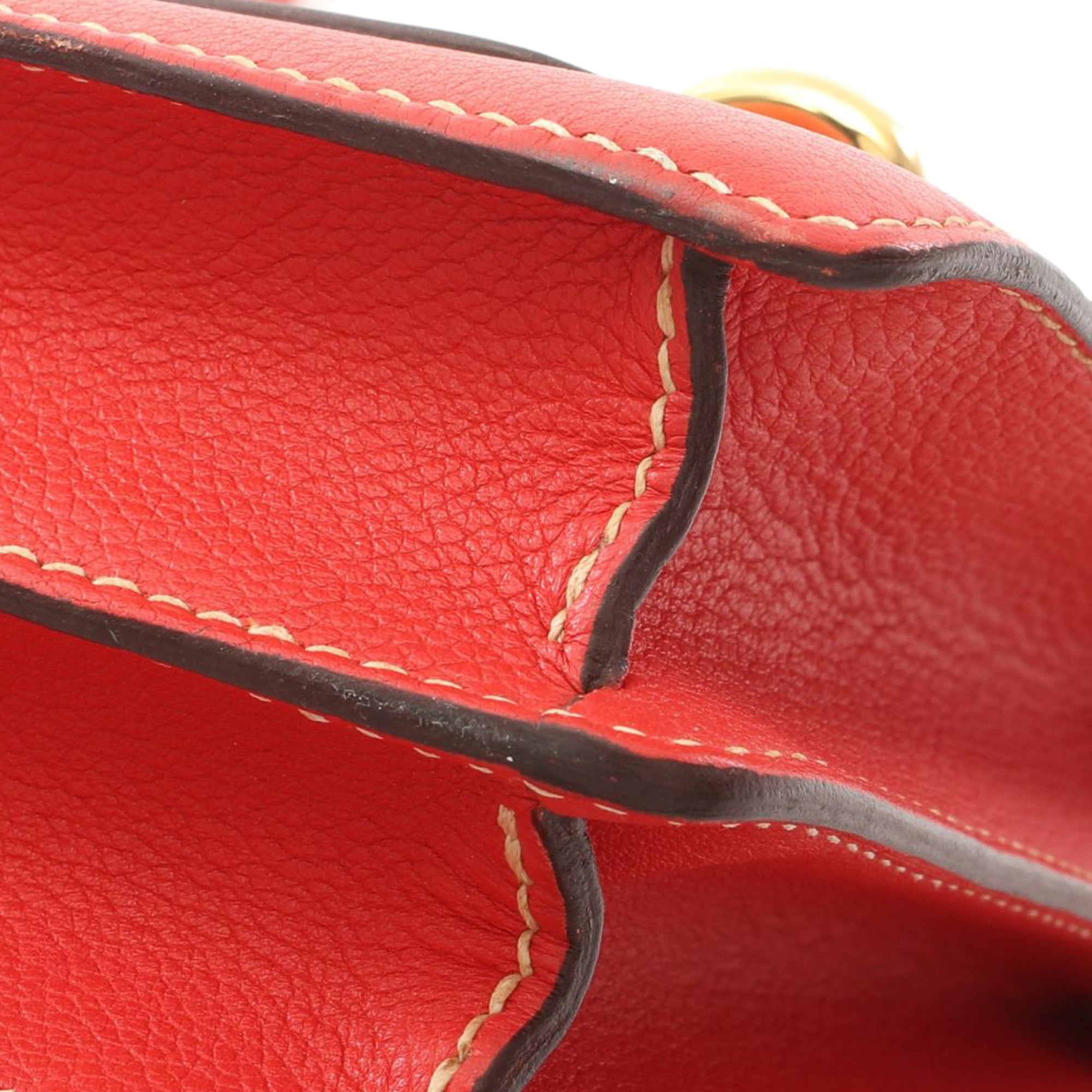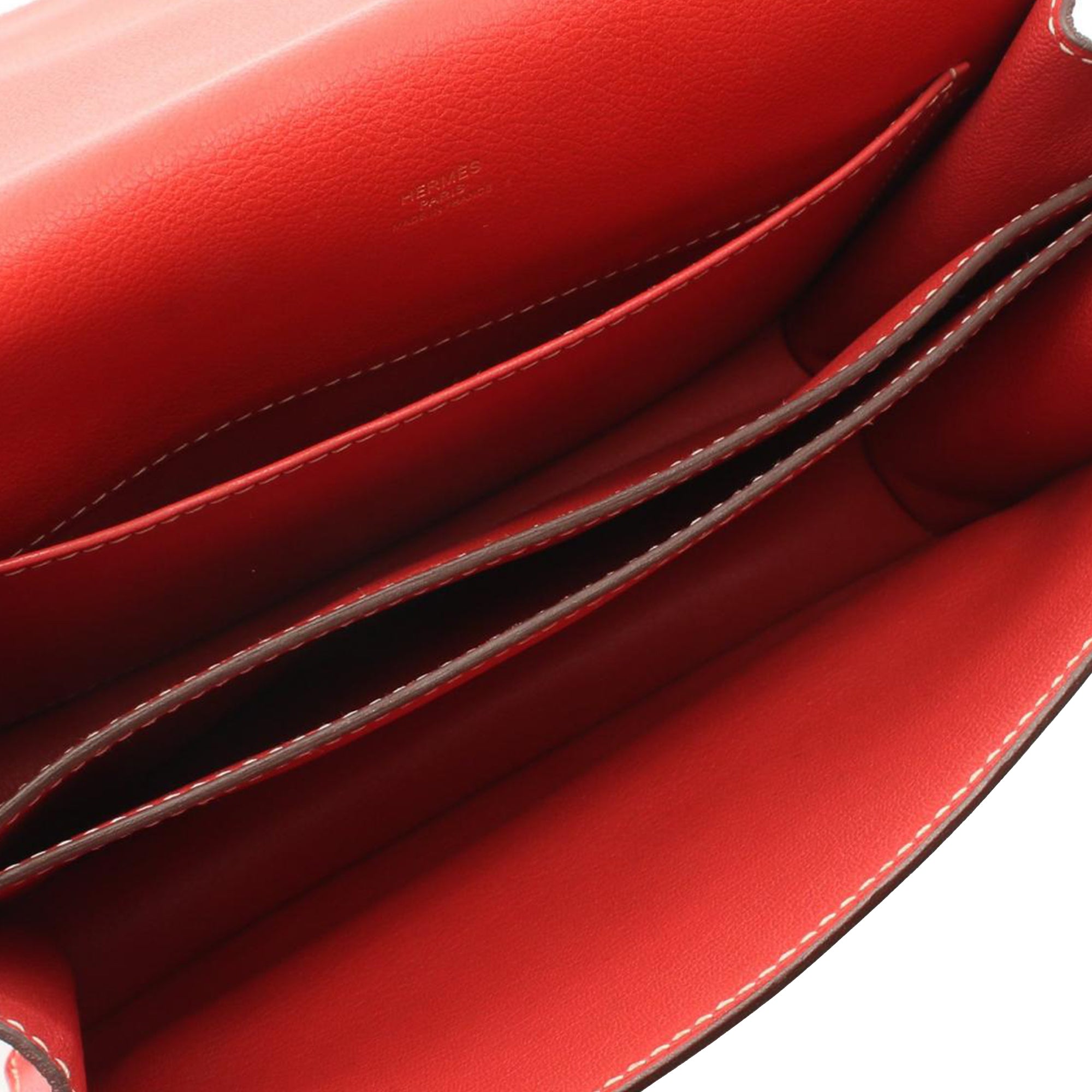 This Sac Roulis features an Evercolor leather body in Rouge Pivoine color, a flat leather strap, a front flap with pull-through closure, and interior slip pockets. Retail Price: 9000.00