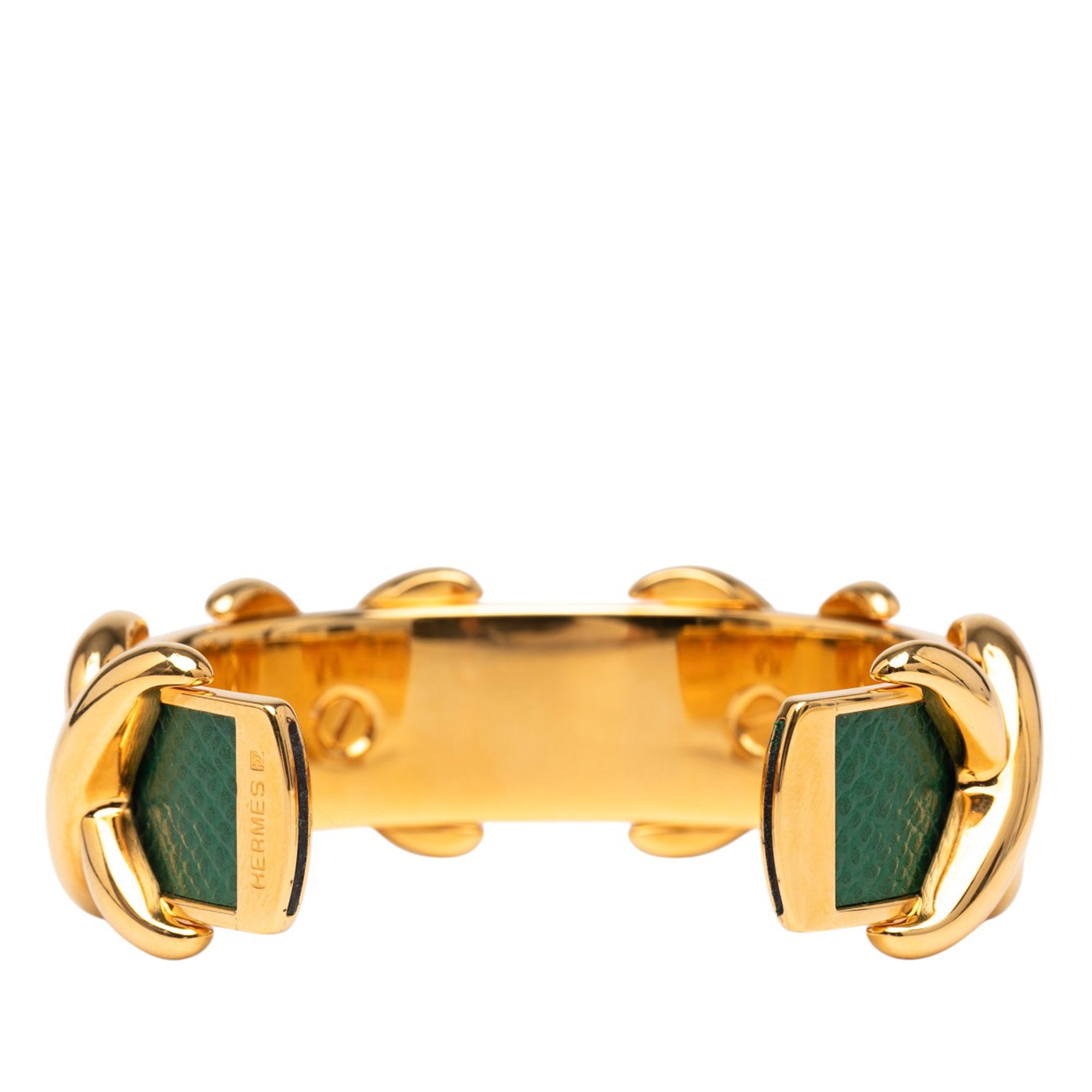Hermès Gold Plated and Leather Criss Cross Cuff Bracelet