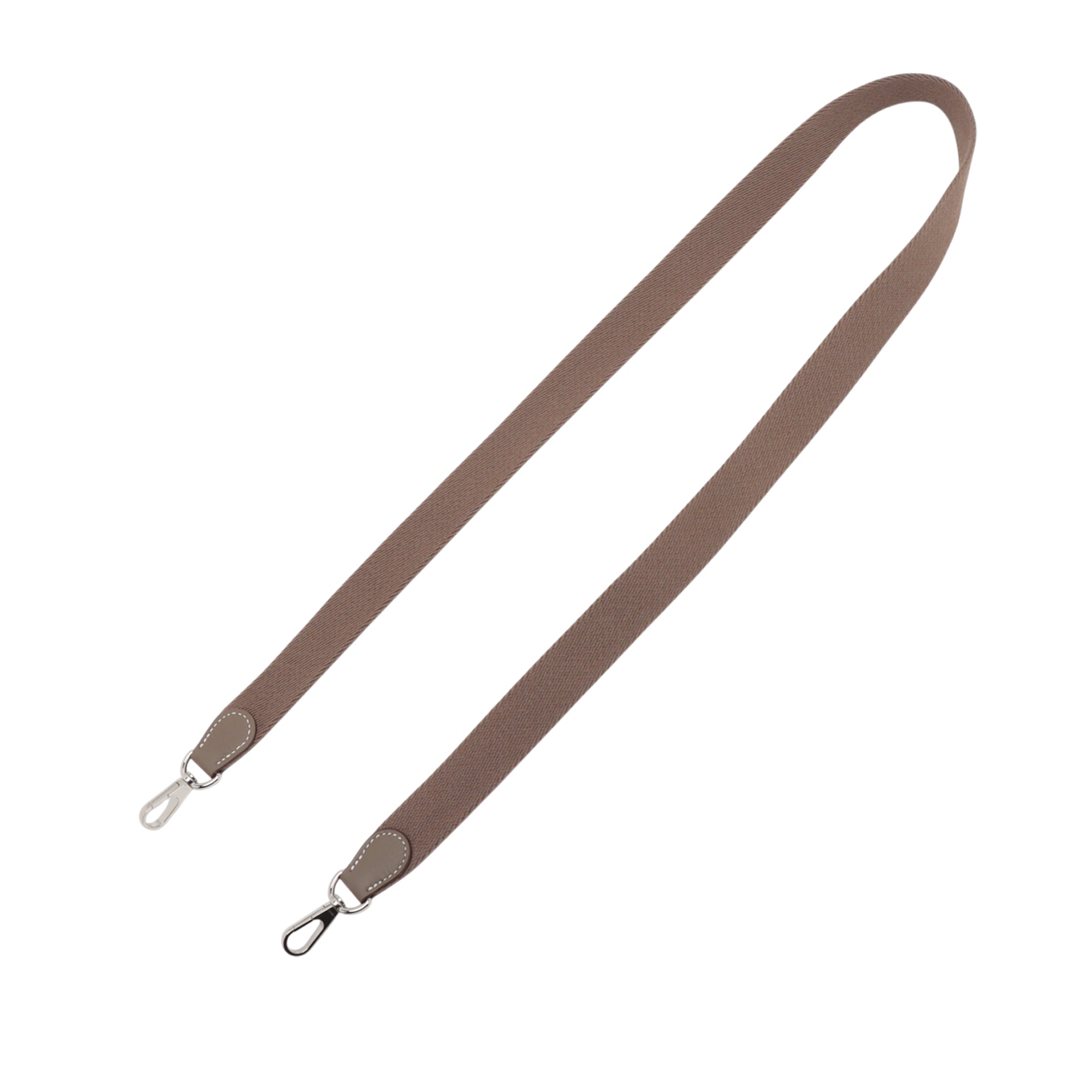 This Evelyne features Grizzly Calf leather body in Gris Caillo color, Clemence leather trimmings in Etoupe color, a flat canvas strap, and an open top with a strap and snap closure. Inclusion: Dust bag, box. Retail Price: 5000.00