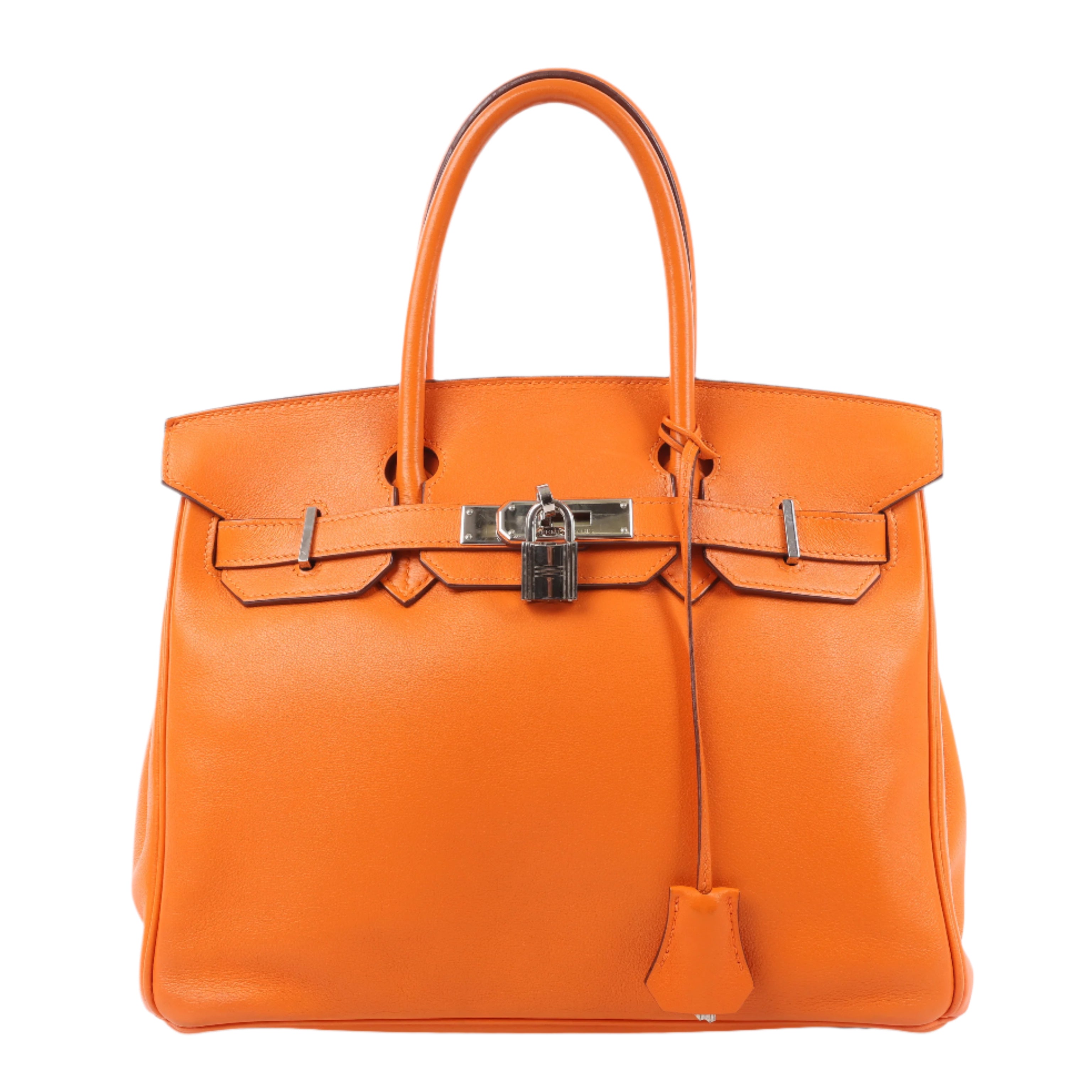 Hermès Birkin 30 in vibrant Veau Swift orange with silver hardware, year □J (2006). A timeless symbol of luxury with impeccable craftsmanship and bold elegance—perfect for collectors and connoisseurs alike.