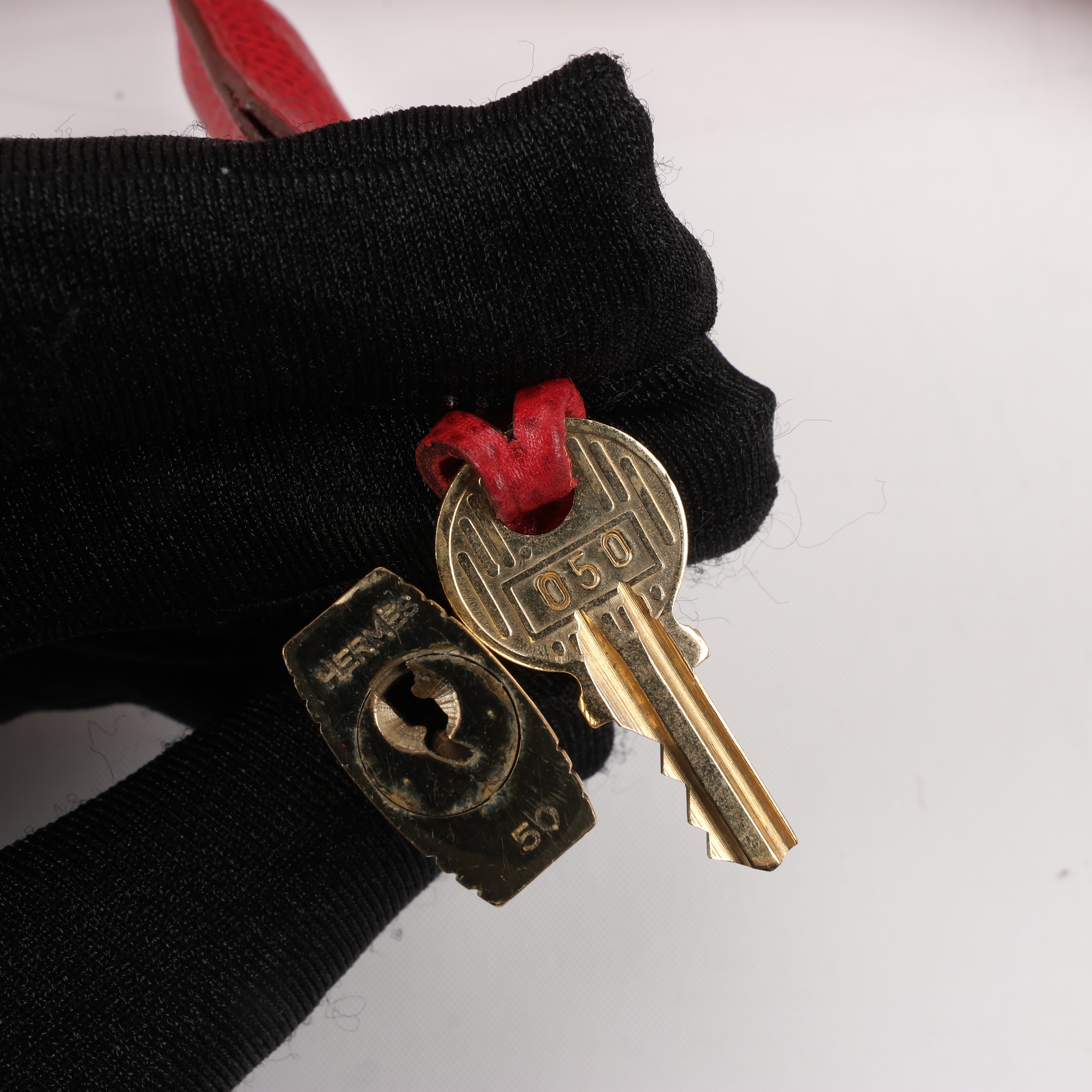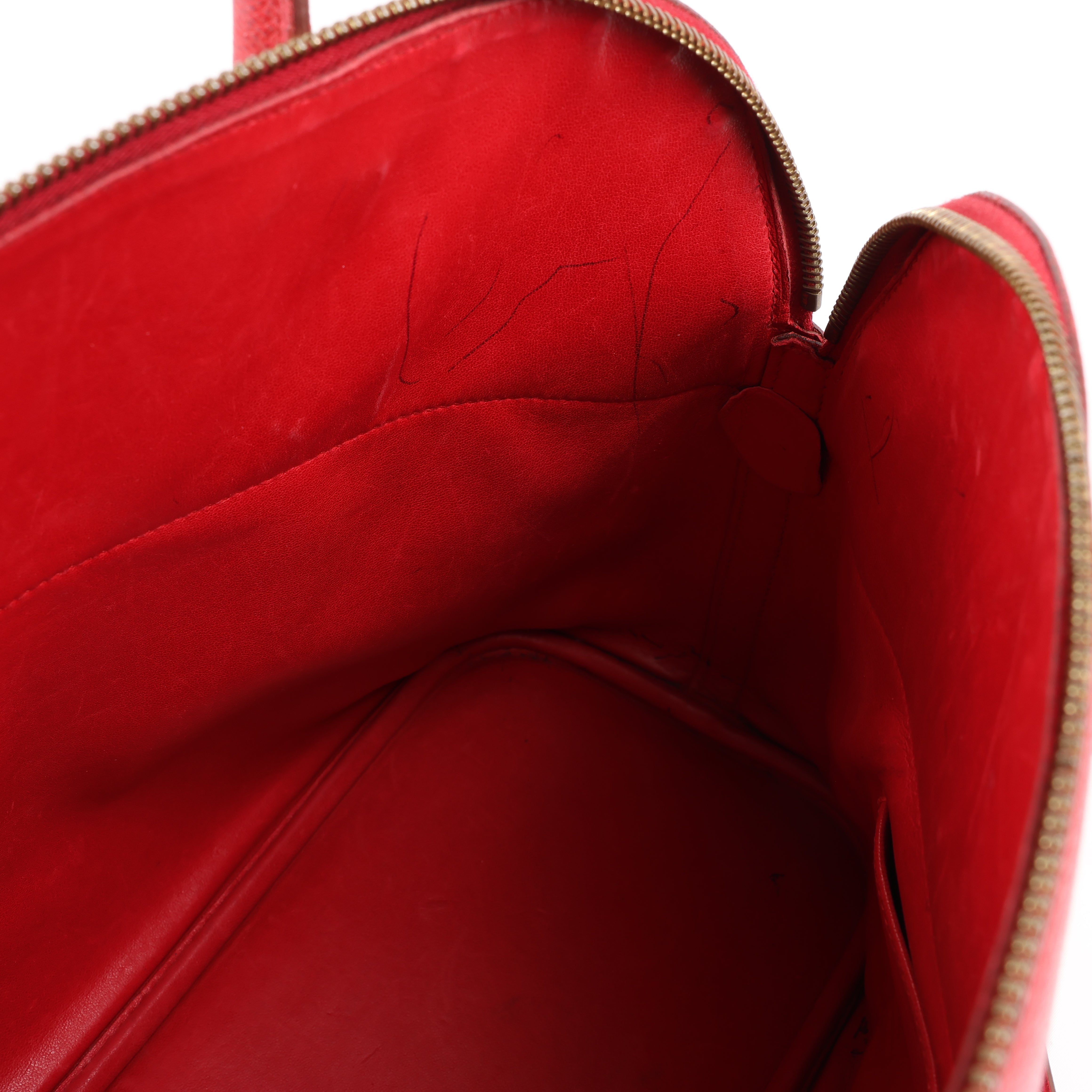 Brand: HERMES Model: Bolide Size: 35Width: 35 cm Height: 26 cmExterior Condition: ExcellentInterior Condition: Very goodCondition Details: The exterior leather is clean and in very good condition with some light creasing. The handles are clean and firm, but has rubbings. Hardware remains shiny and crisp with hairline scratches. The interior is in very good condition, but has pen stains.Colour: RedInterior Colour: RedHardware Colour: GoldMaterial: LeatherComes With: Padlock with keys, shoulder strap