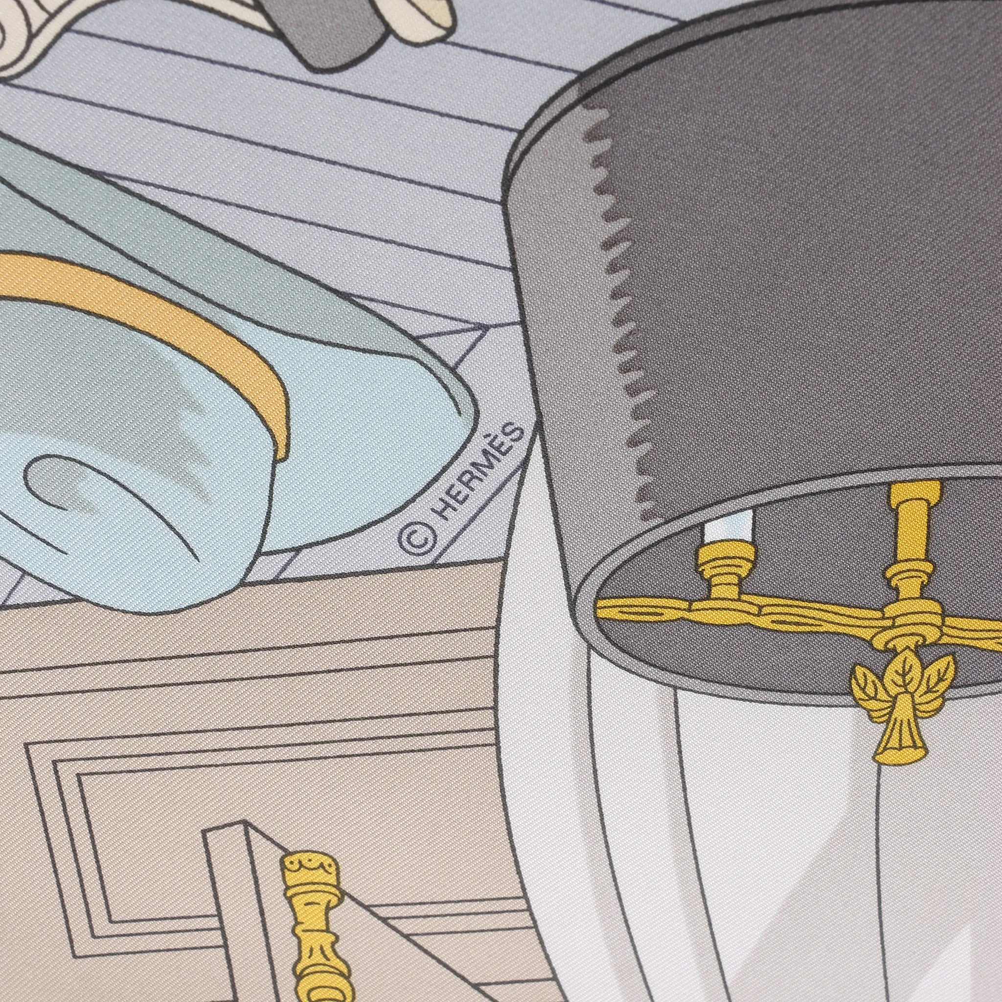 Brand: HermesModel: Carre 90Size: 90x90 cm Condition: Never wornCondition Details: -Main Colour: BeigeColours: Gray, BlueMain material: SilkManufactured In: FranceComes With: Box, Brand tag