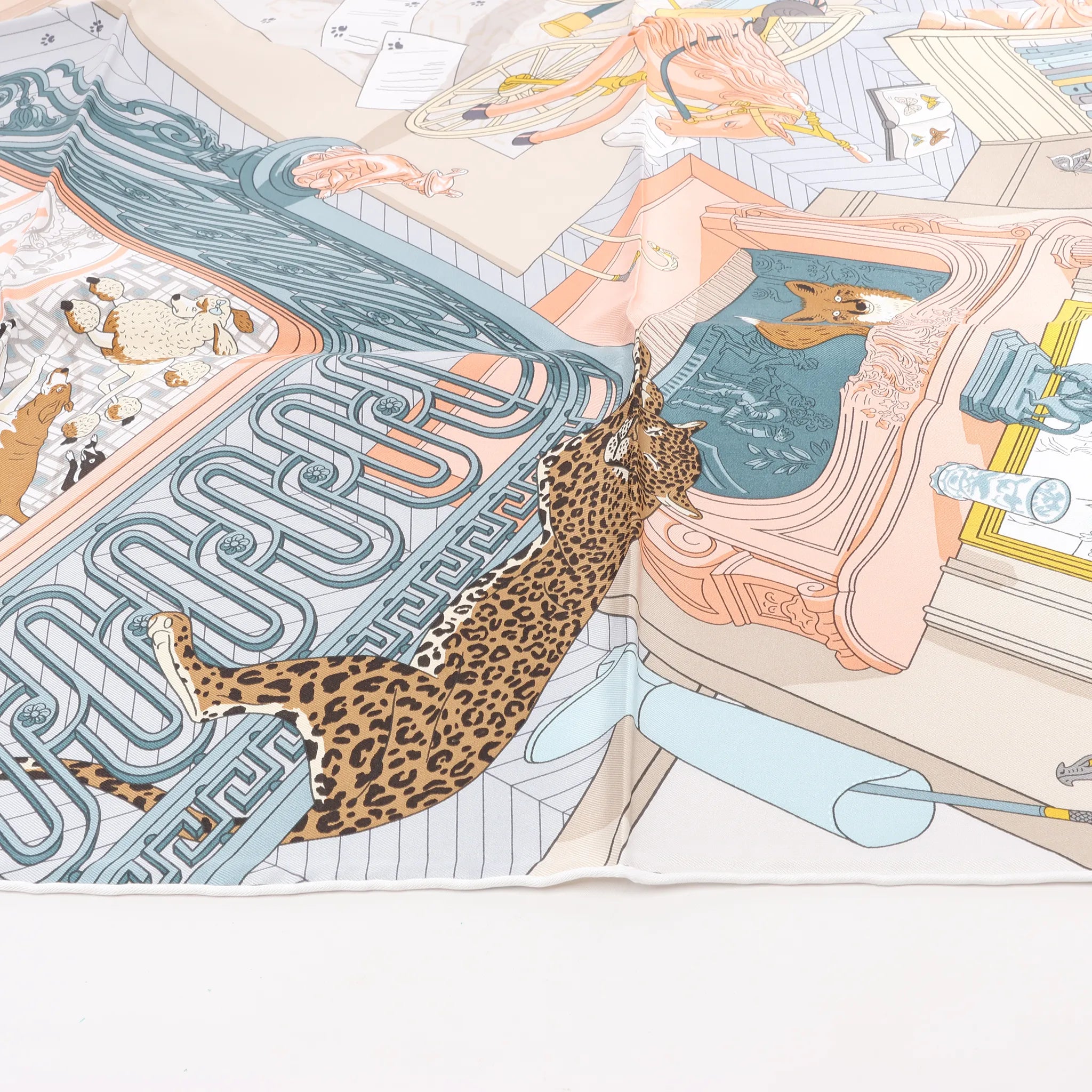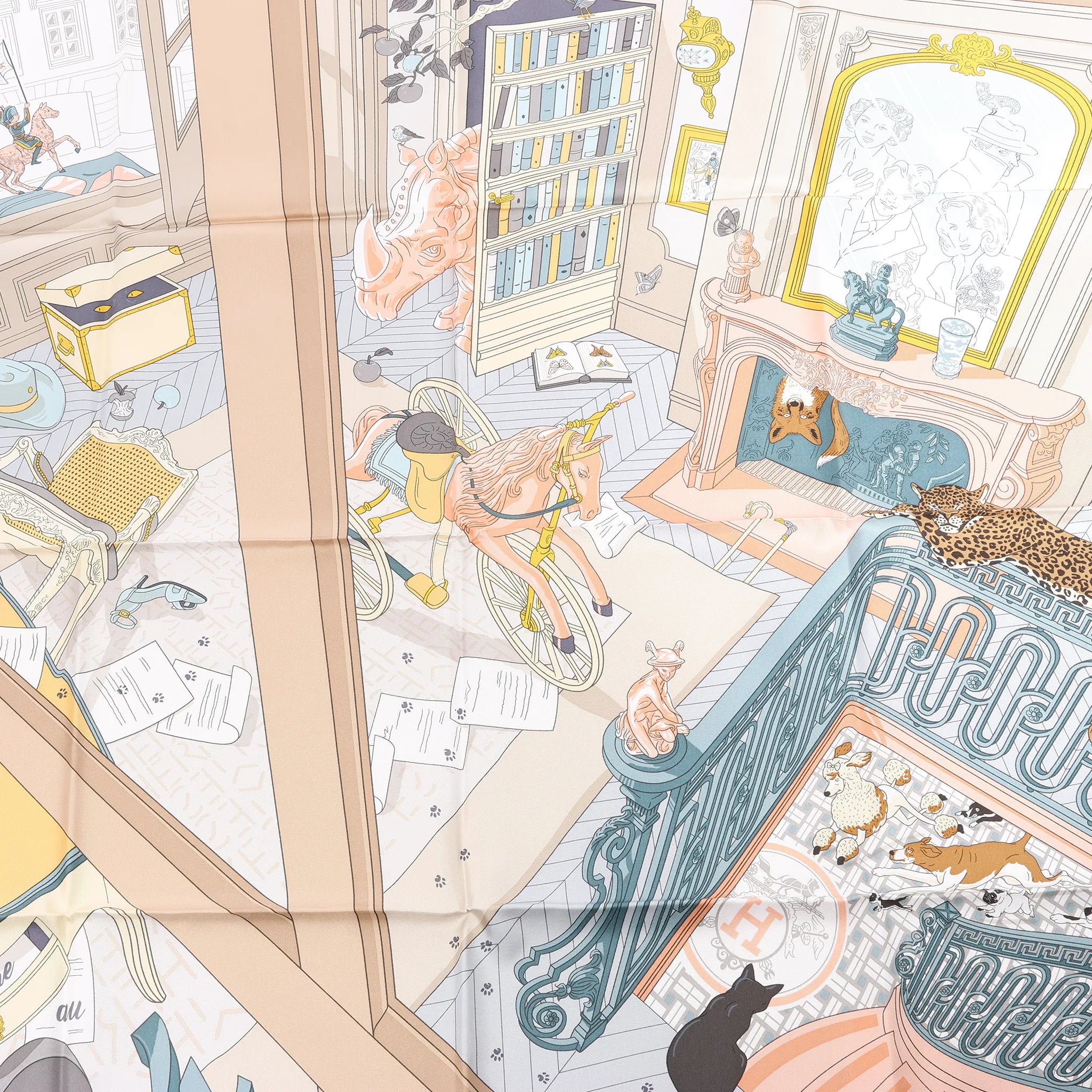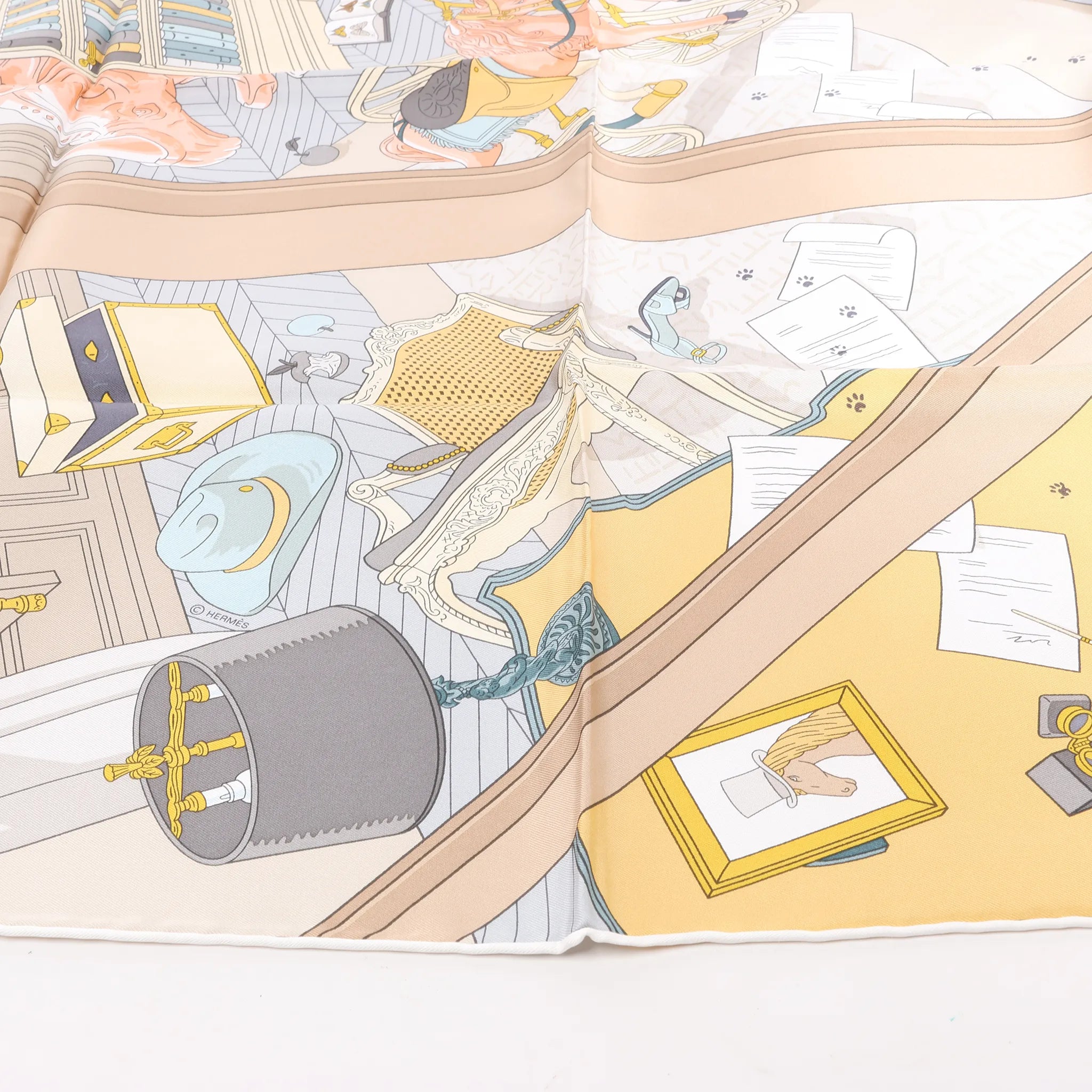 Step into a whimsical Parisian scene with the Hermès Carré 90 "Mystère au 24" silk handkerchief in multicolor. Crafted in luxurious silk, this square scarf features playful, illustrated interior vignettes—bringing storytelling and elegance together in signature Hermès style.