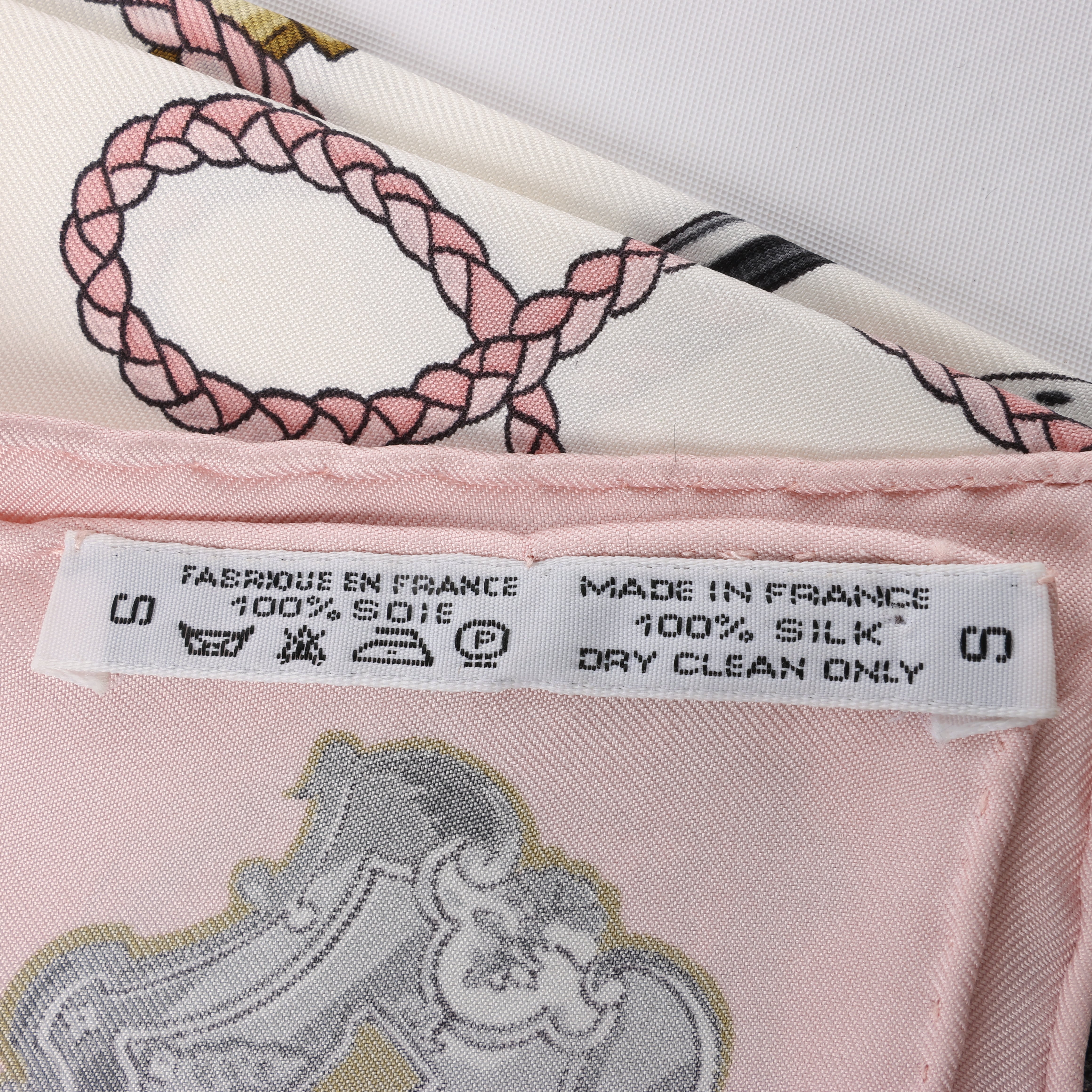 Brand: HermesSize: 90x90 cm Condition: ExcellentCondition Details: Visible wear, marked areas, lint on fabric, loose threads, creases, and noticeable odor.Main Colour: PinkColours: Beige, GrayMain material: 100% silkManufactured In: FranceComes With: Package