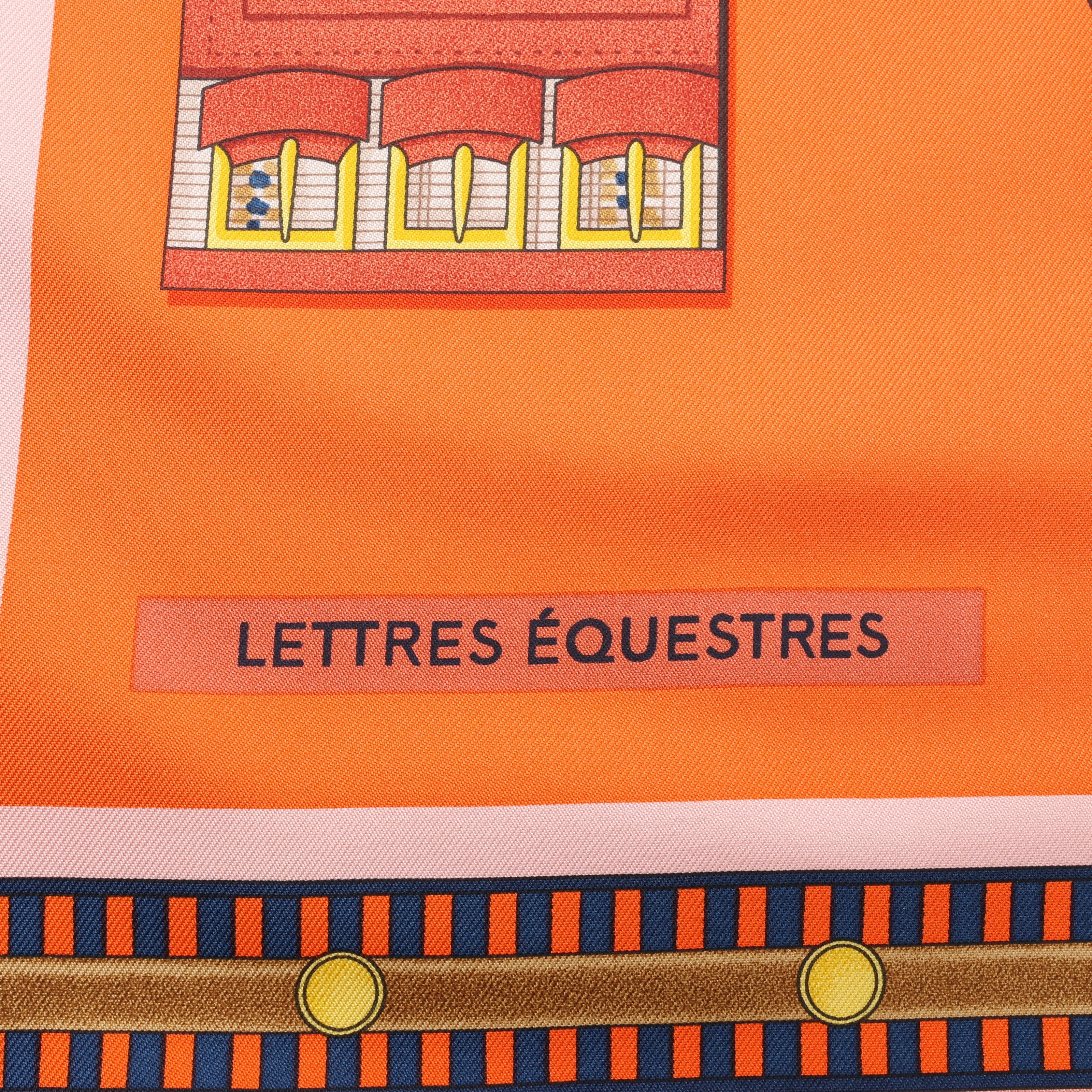 Hermes Hermès Carré 90 "LETTRES EQUESTRES" 100% Silk Scarf in Orange
