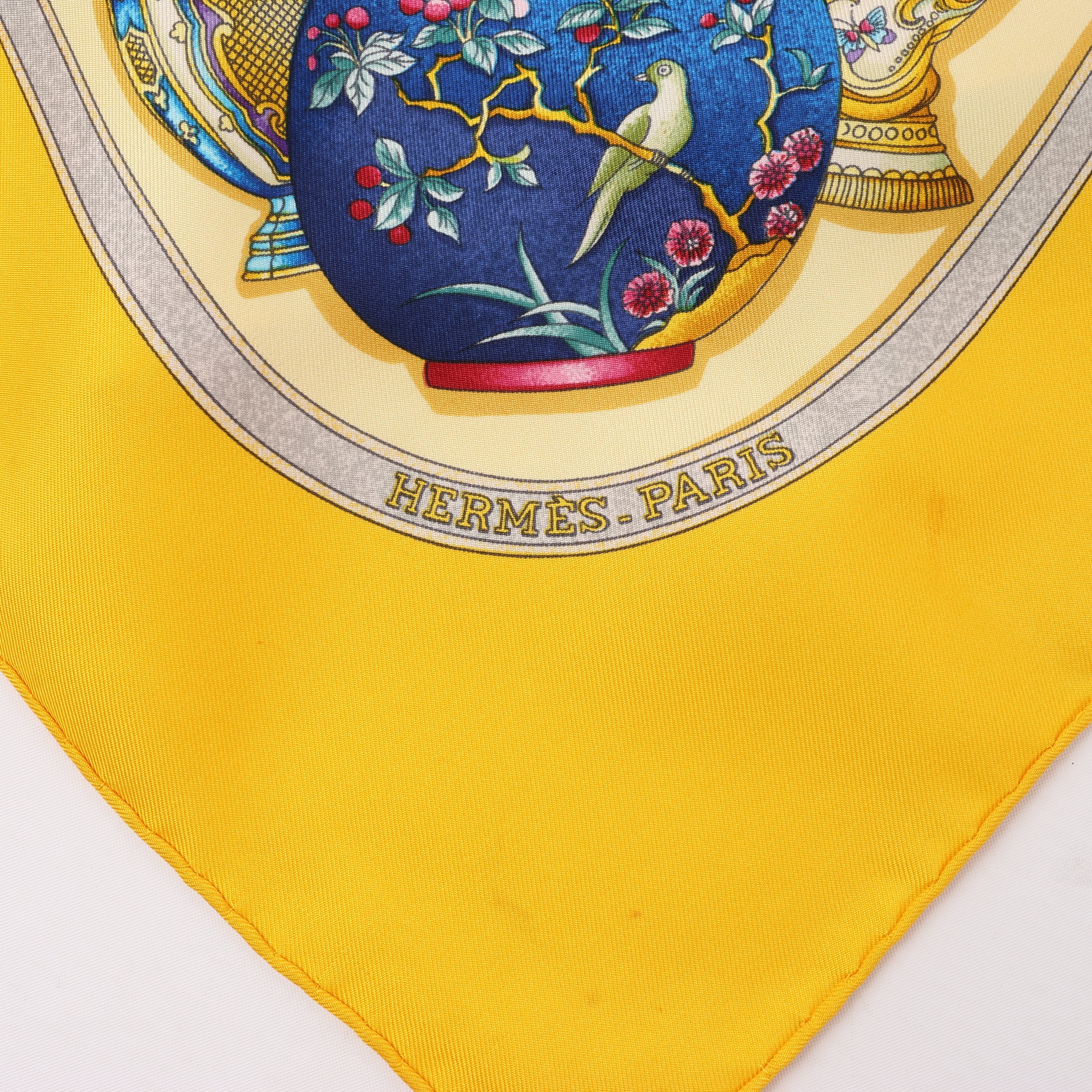Hermes Hermès Carré 90 "Qu'importe le flacon" 100% Silk Scarf in Yellow