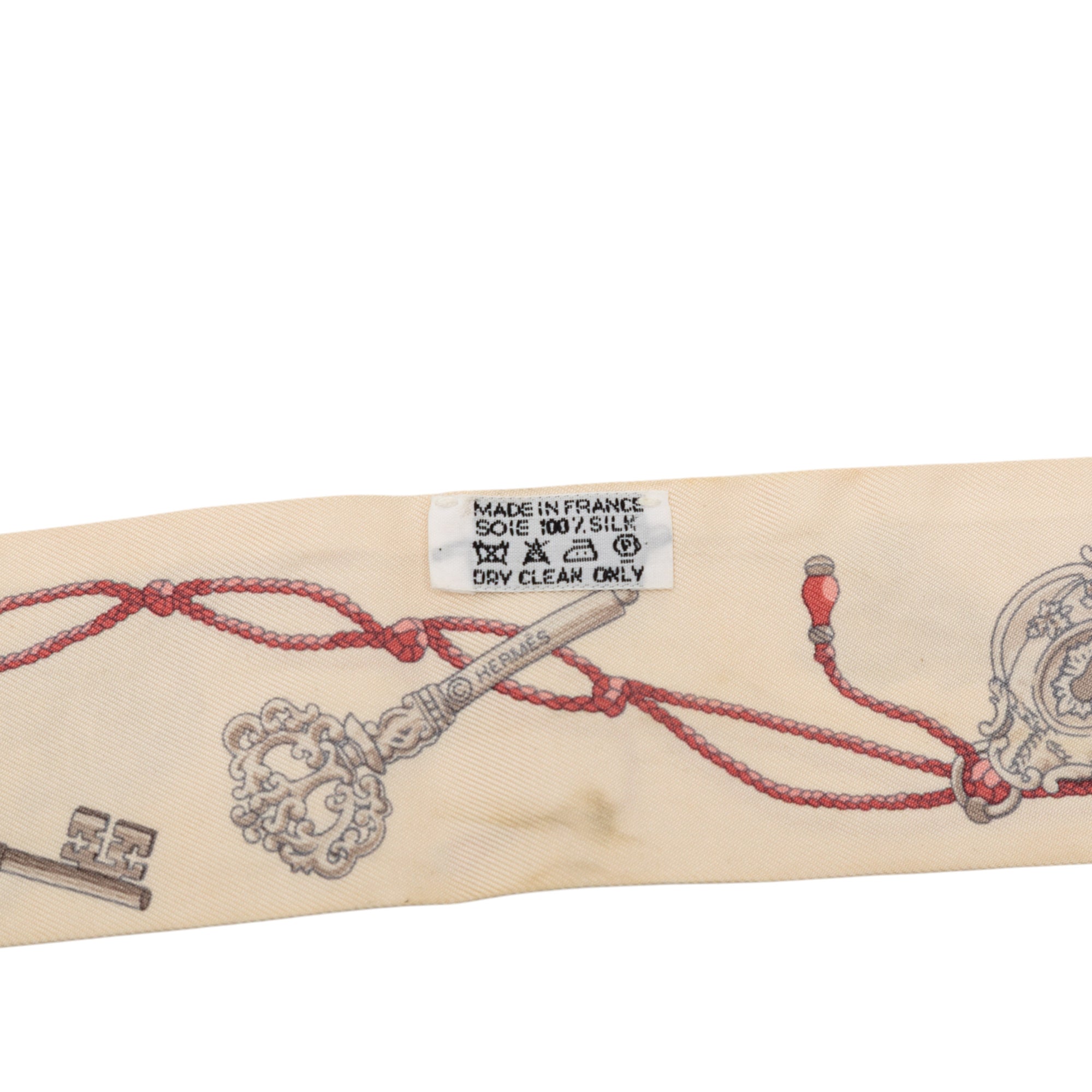 The Les Cles a Pois twilly scarf features a print on 100% silk. Retail Price: 450.00