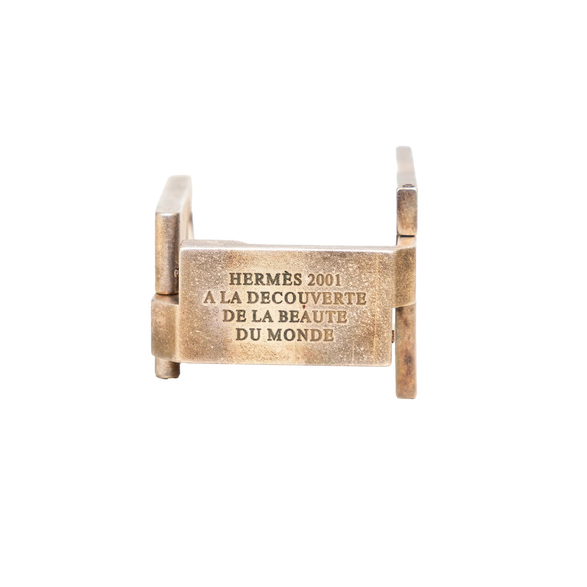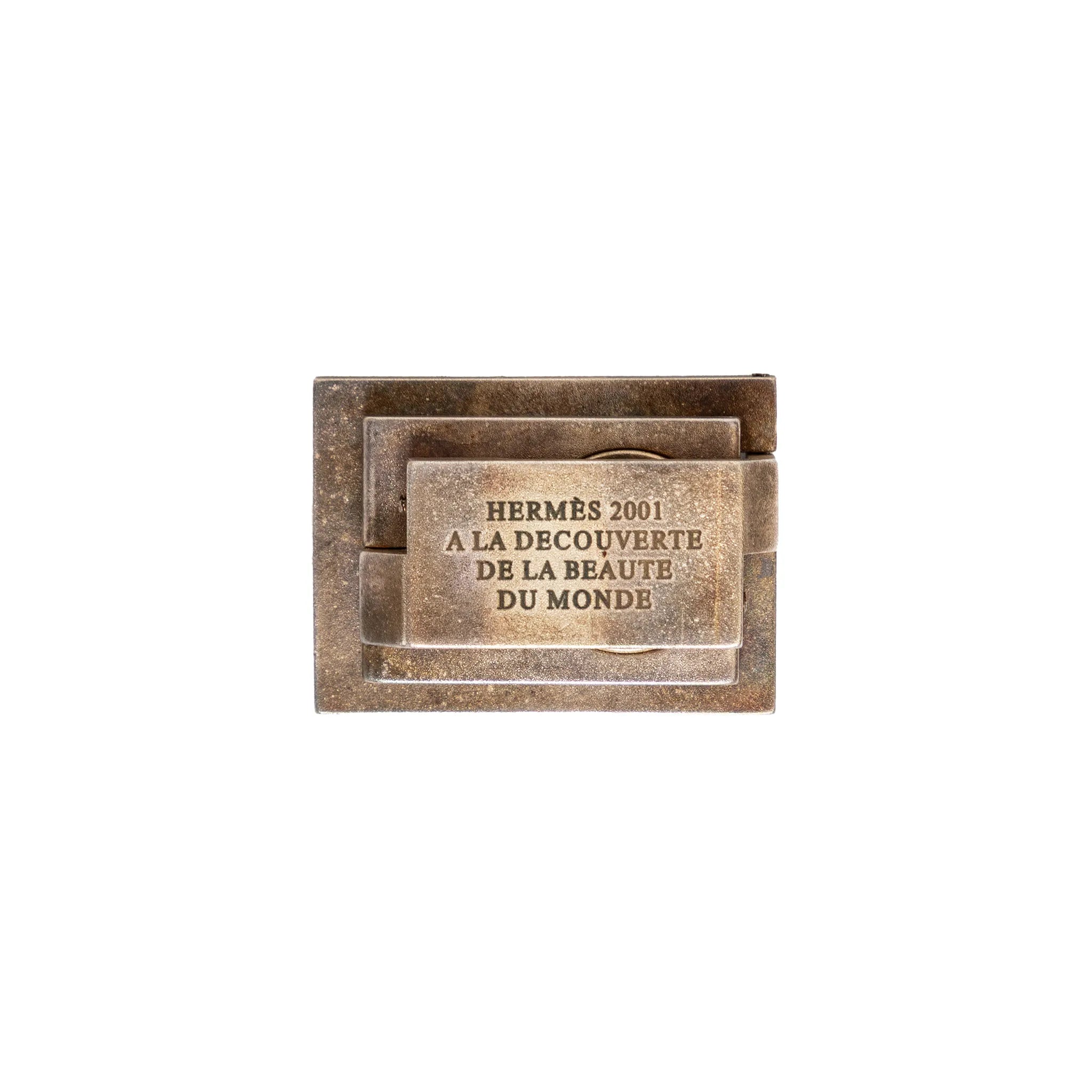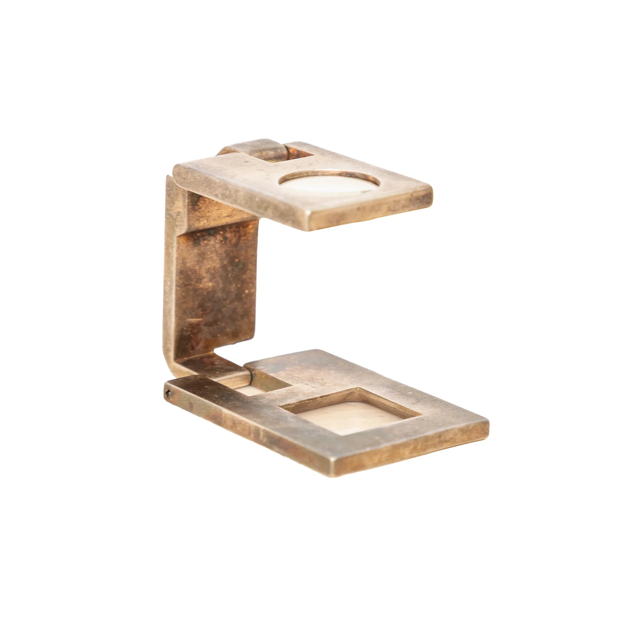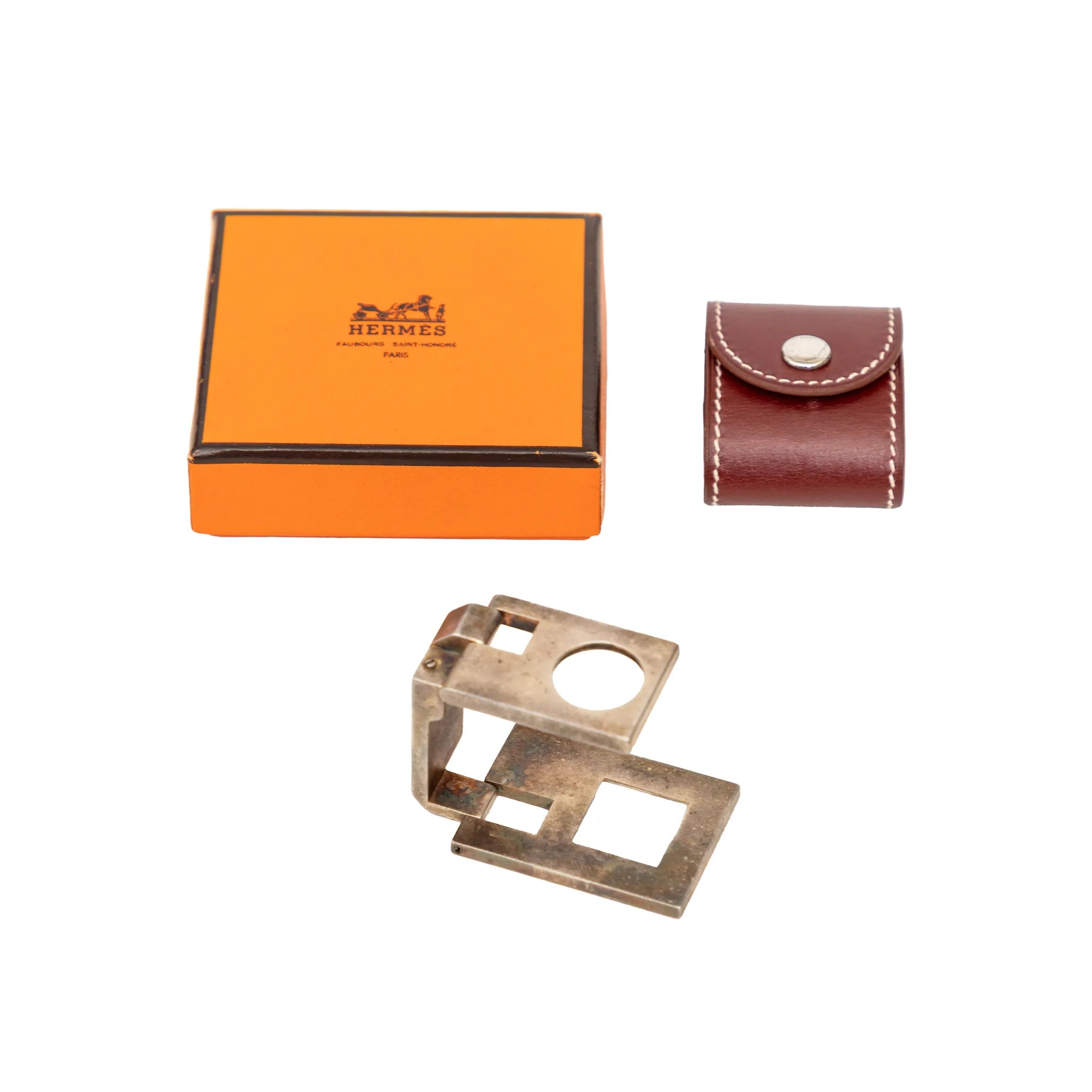 Pocket-sized Hermès magnifying glass in silver-plated metal with leather case. A rare, elegant desk accessory for collectors, connoisseurs, and design enthusiasts.