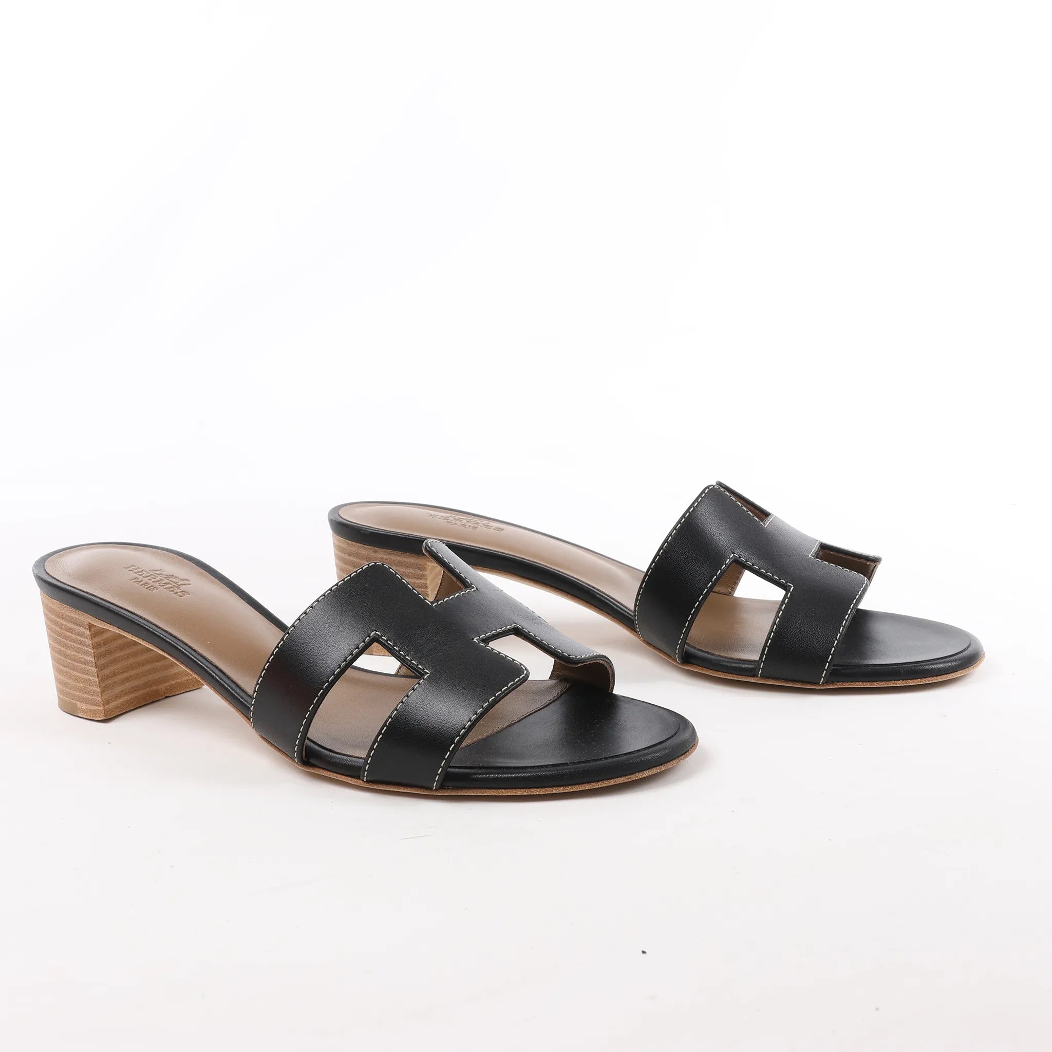 HERMES OASIS Leather Sandals in Black, Size 37.5 EU Secondhand
