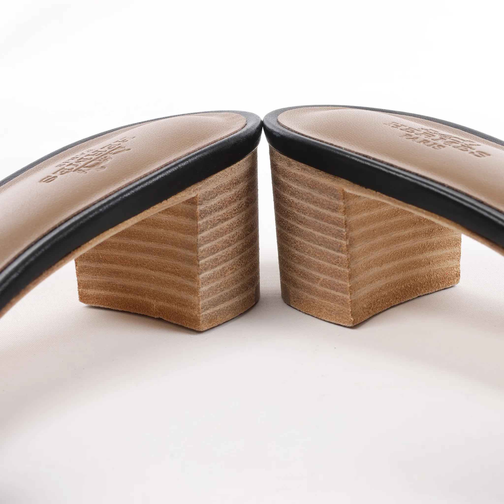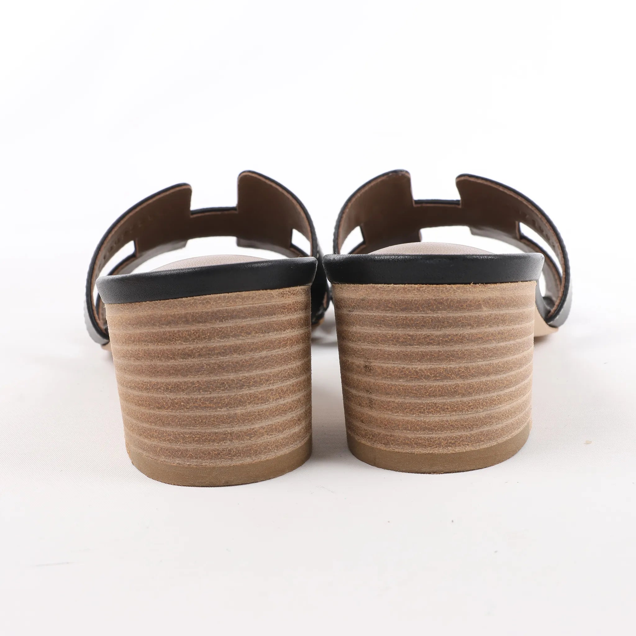 HERMES OASIS Leather Sandals in Black, Size 37.5 EU