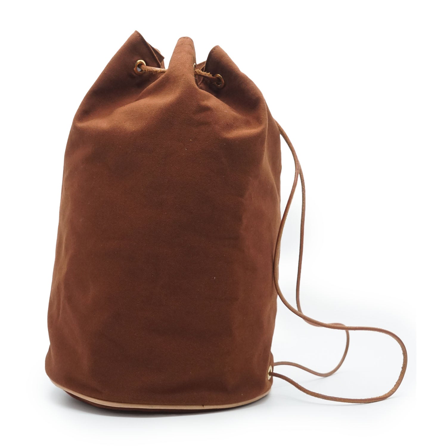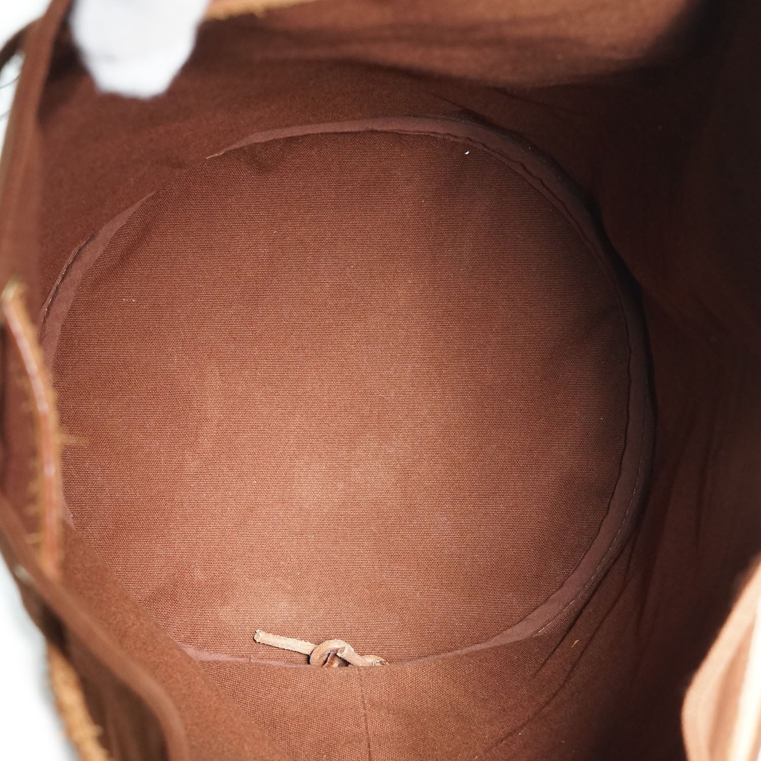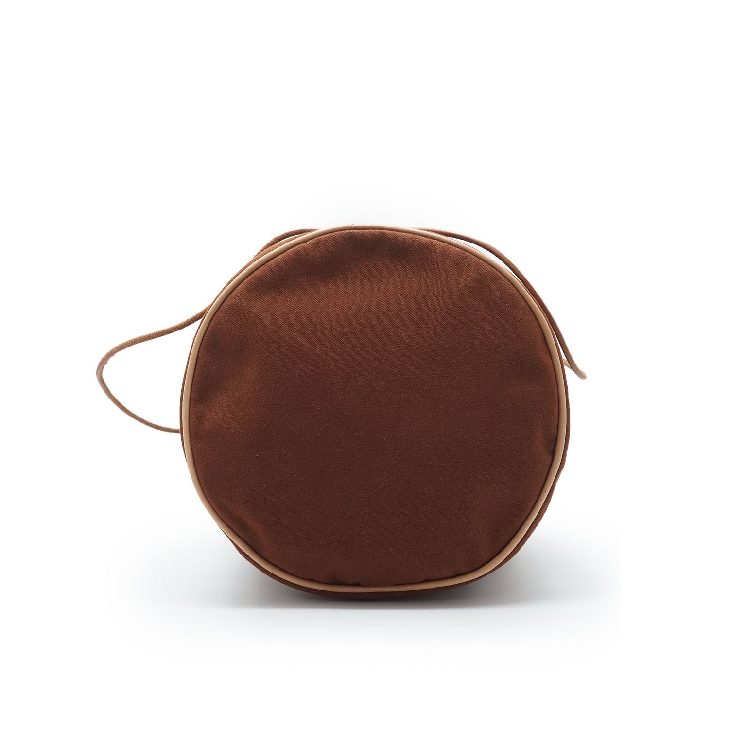 Polochon Mimile GM Brown CottonDepth: 24cmHeight: 37cmWidth: 24cmWidth at Top: 34cmShoulder Drop: 31cmStain: Minor white spots on the back, minor white stain on the insideDiscoloration: Slight discoloration overallPeeling: Leather peeling/fraying overall the drawstring, slight pilling on the outer surface