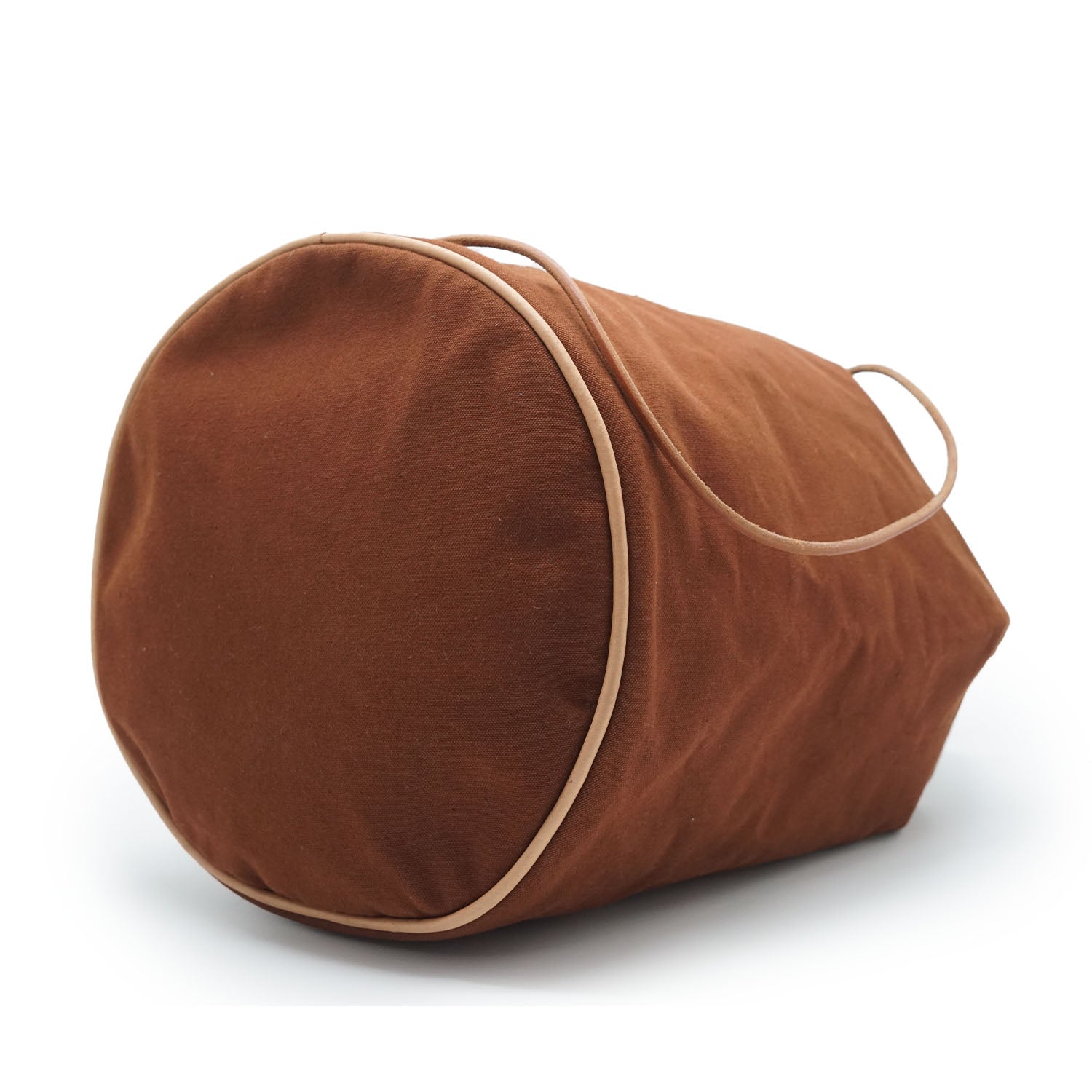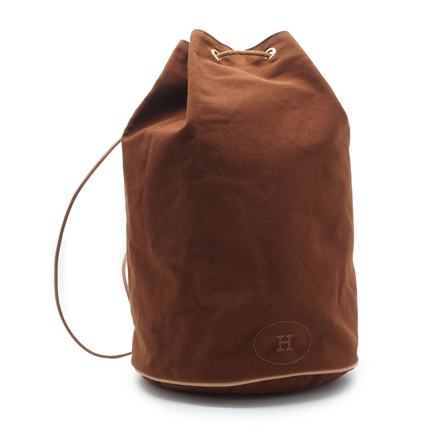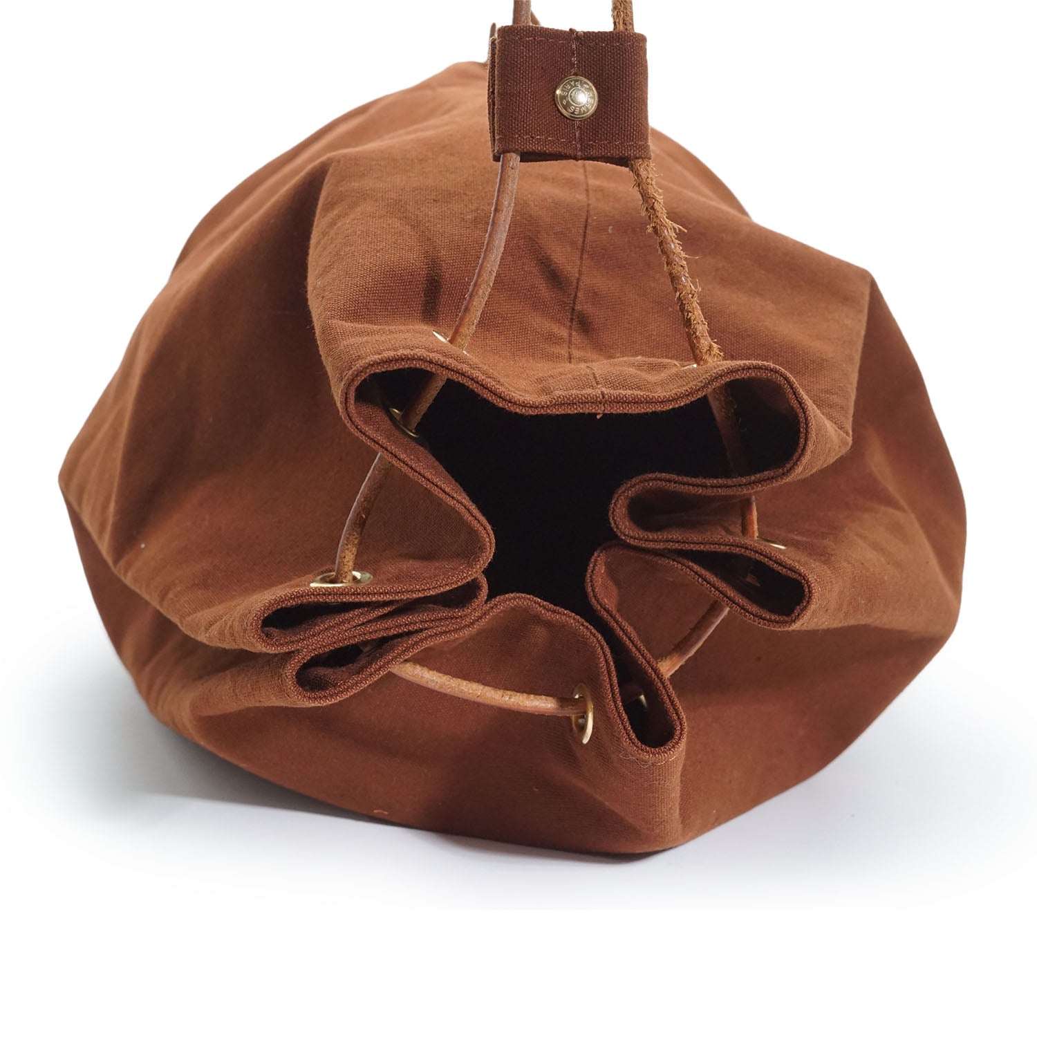 Polochon Mimile GM Brown CottonDepth: 24cmHeight: 37cmWidth: 24cmWidth at Top: 34cmShoulder Drop: 31cmStain: Minor white spots on the back, minor white stain on the insideDiscoloration: Slight discoloration overallPeeling: Leather peeling/fraying overall the drawstring, slight pilling on the outer surface