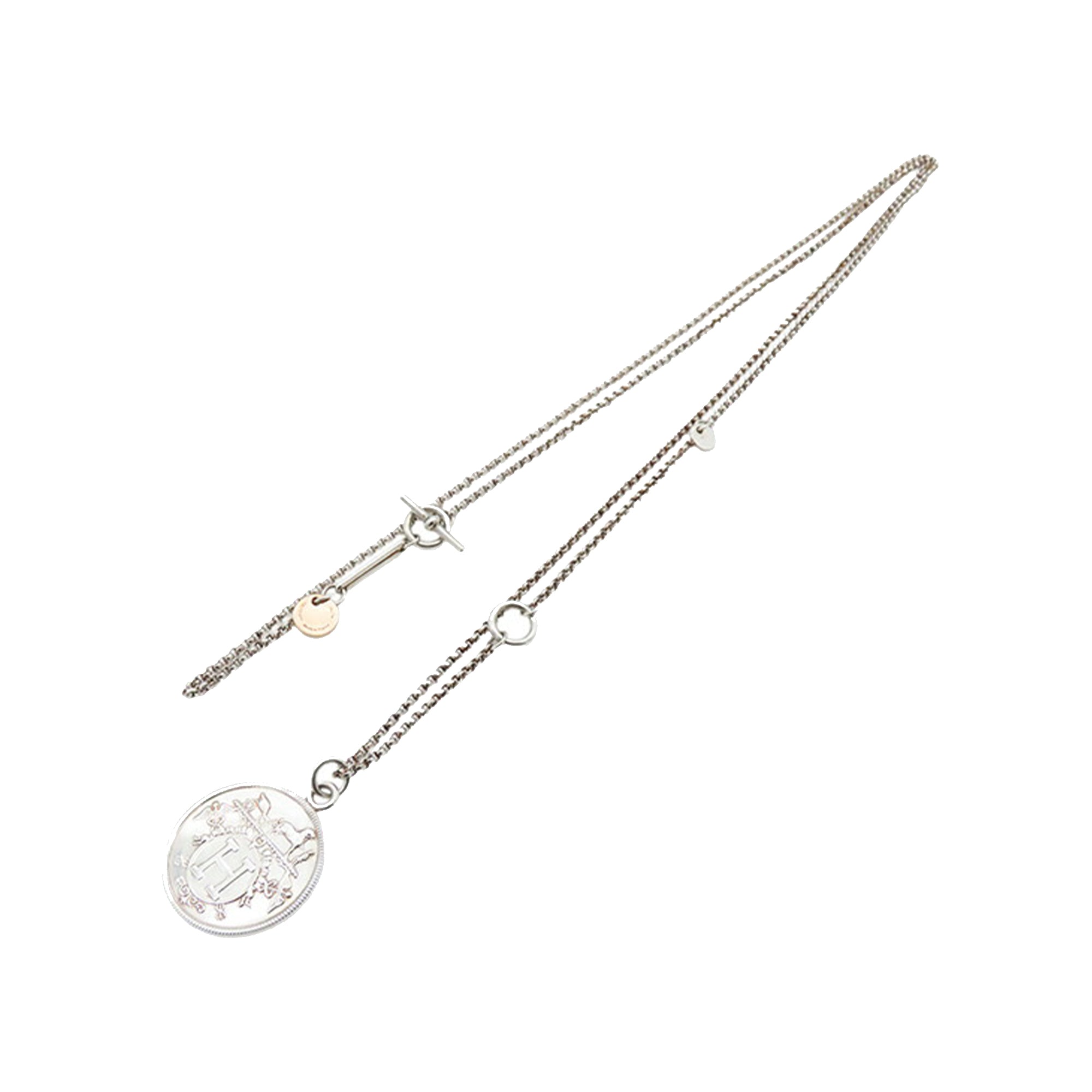 Hermès Sterling Silver and 18K Rose Gold Ex-Libris Long Necklace