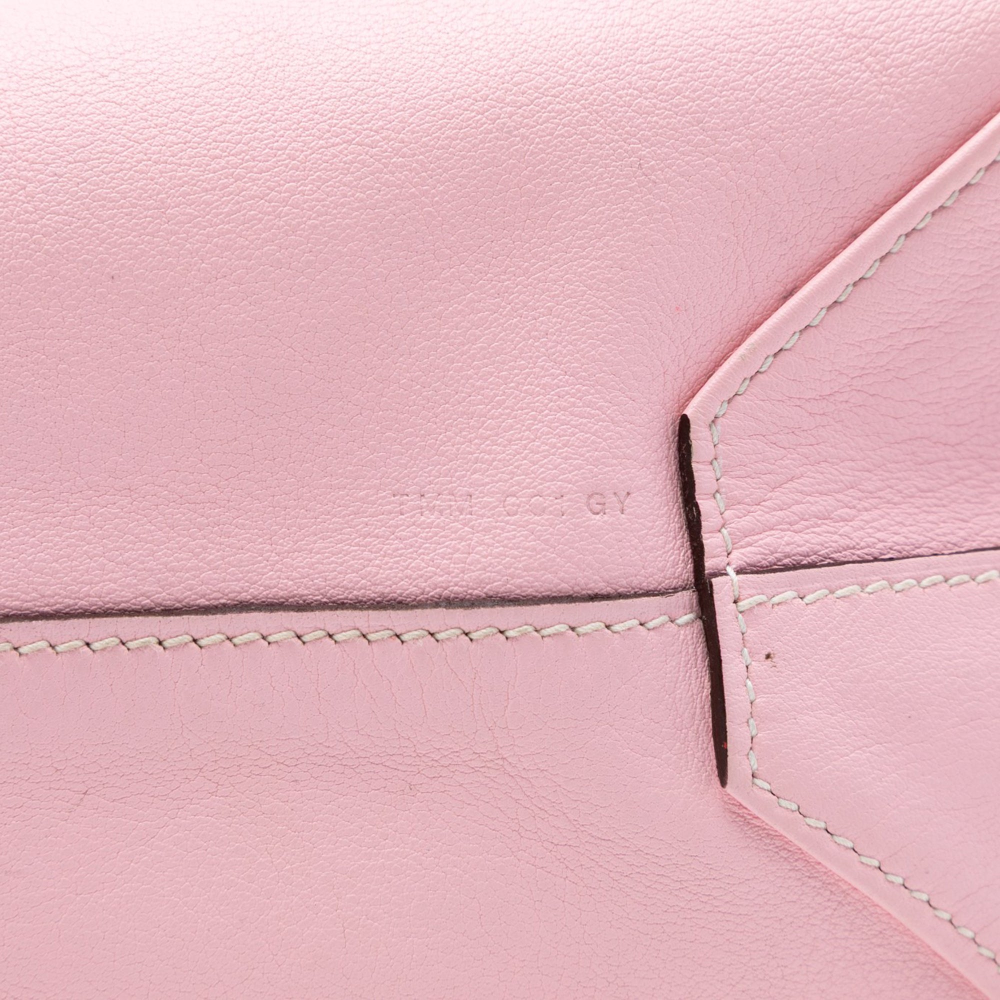 This Double Sens features a reversible Clemence leather body in Rose Sakura and Rouge Pivoine colors, flat leather straps, and an open top. Retail Price: 3800.00