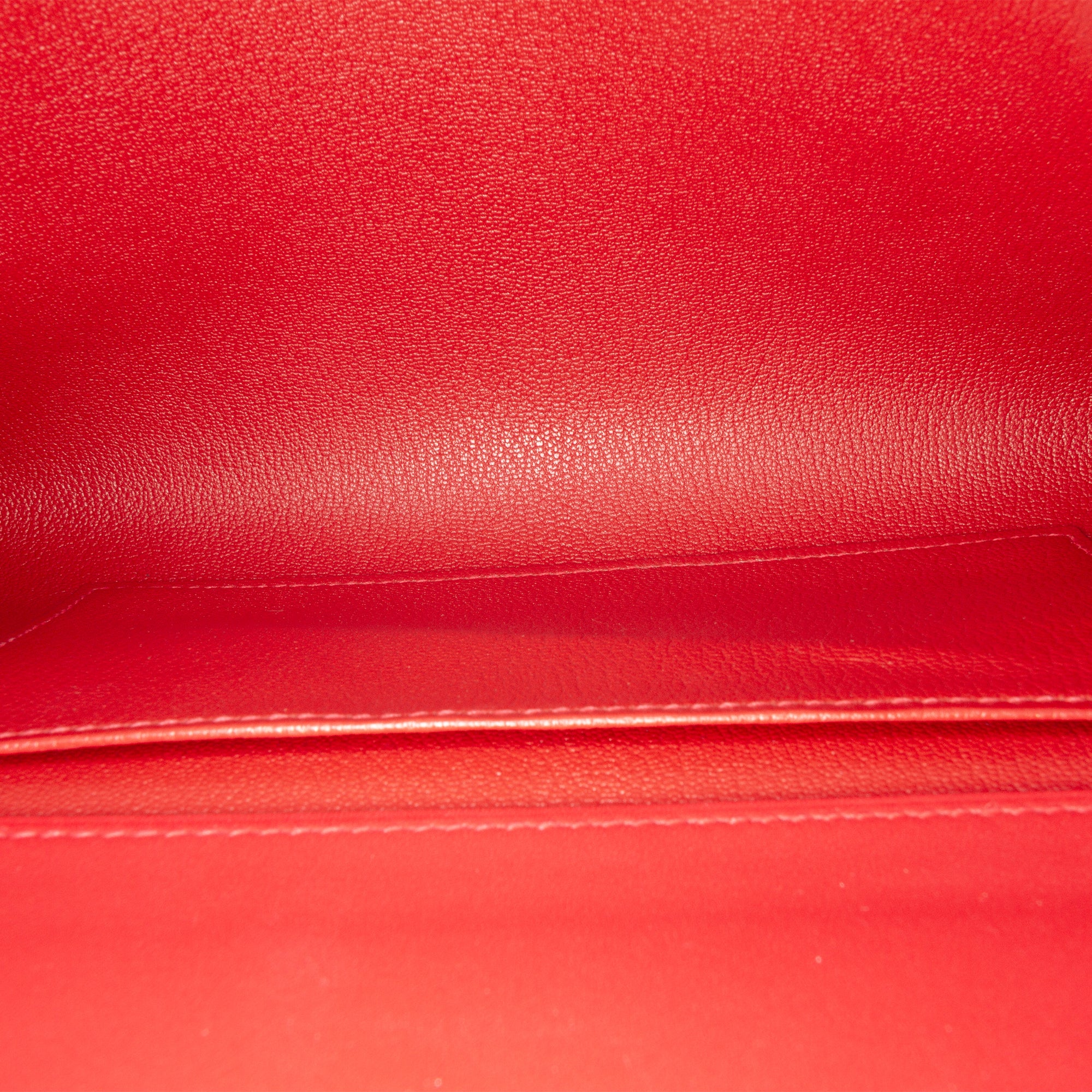 This Medor clutch bag features a Tadelakt leather body in Rouge Vif color, a front flap with metal closure, and an interior slip pocket. Retail Price: 4675.00