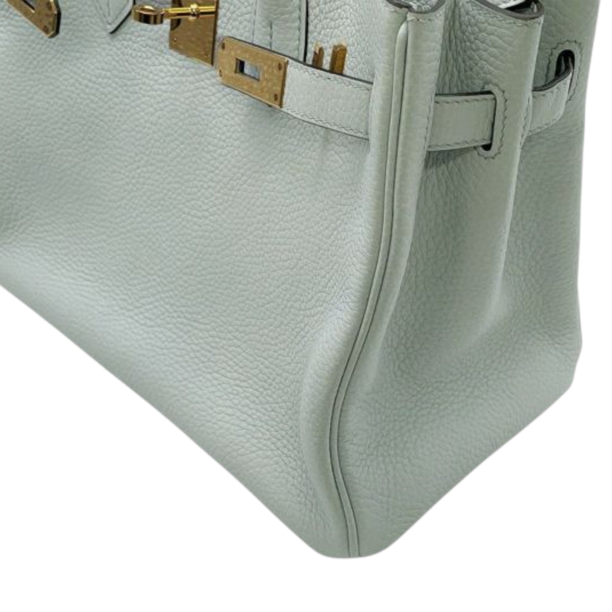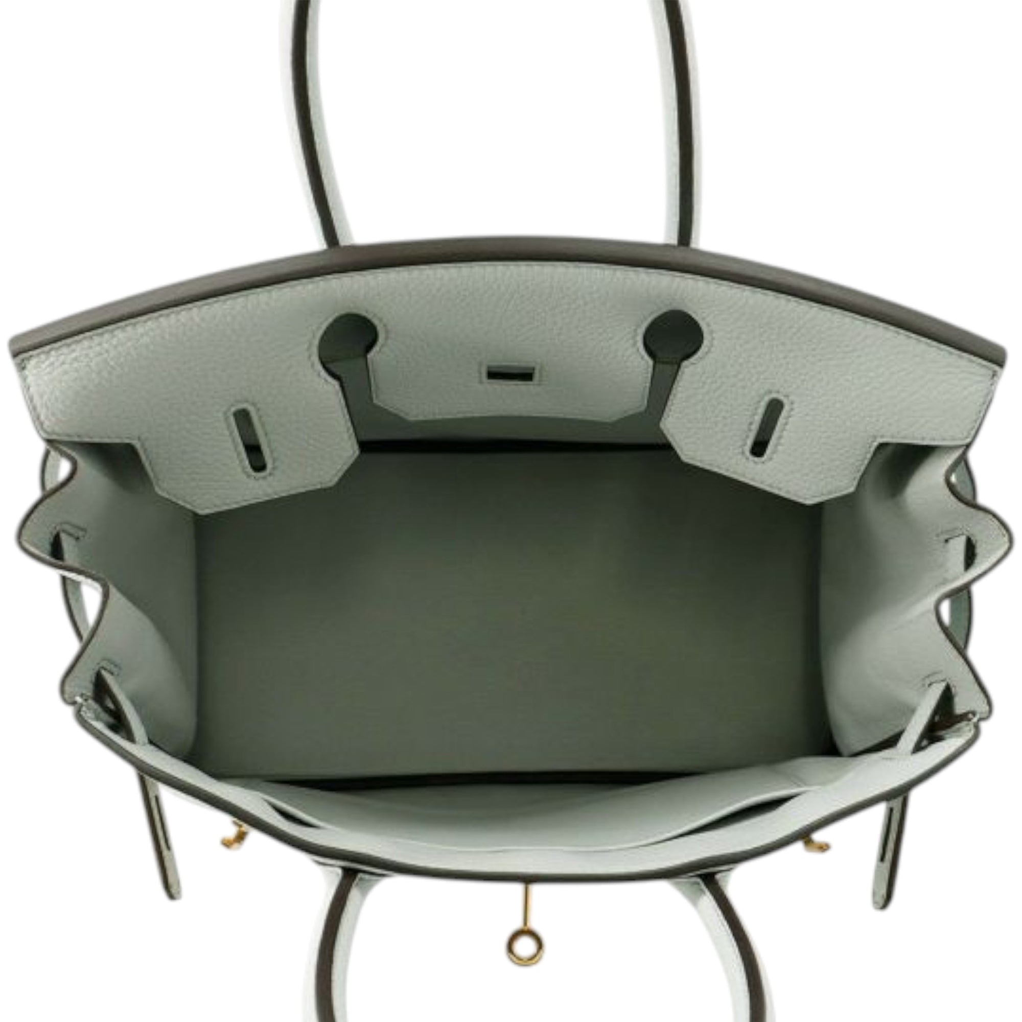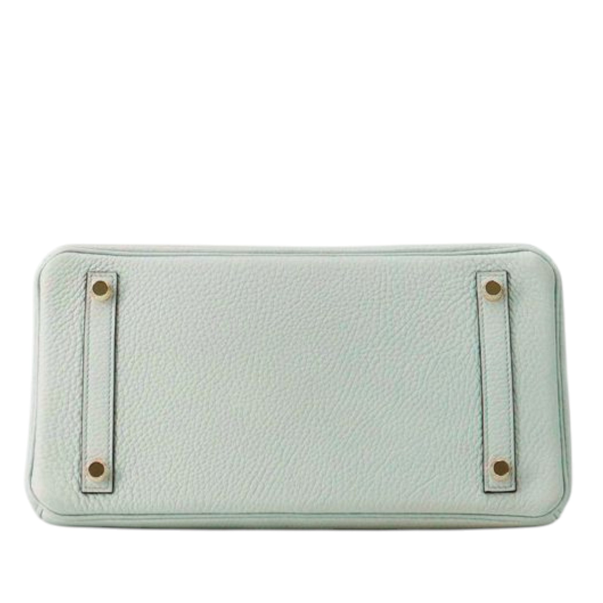 This Birkin 30 features a Togo leather body in Bleu Pale color, rolled leather handles, a front flap with a twist lock closure, and interior zip and slip pockets. Inclusion: Dust bag, box. Retail Price: 29000.00