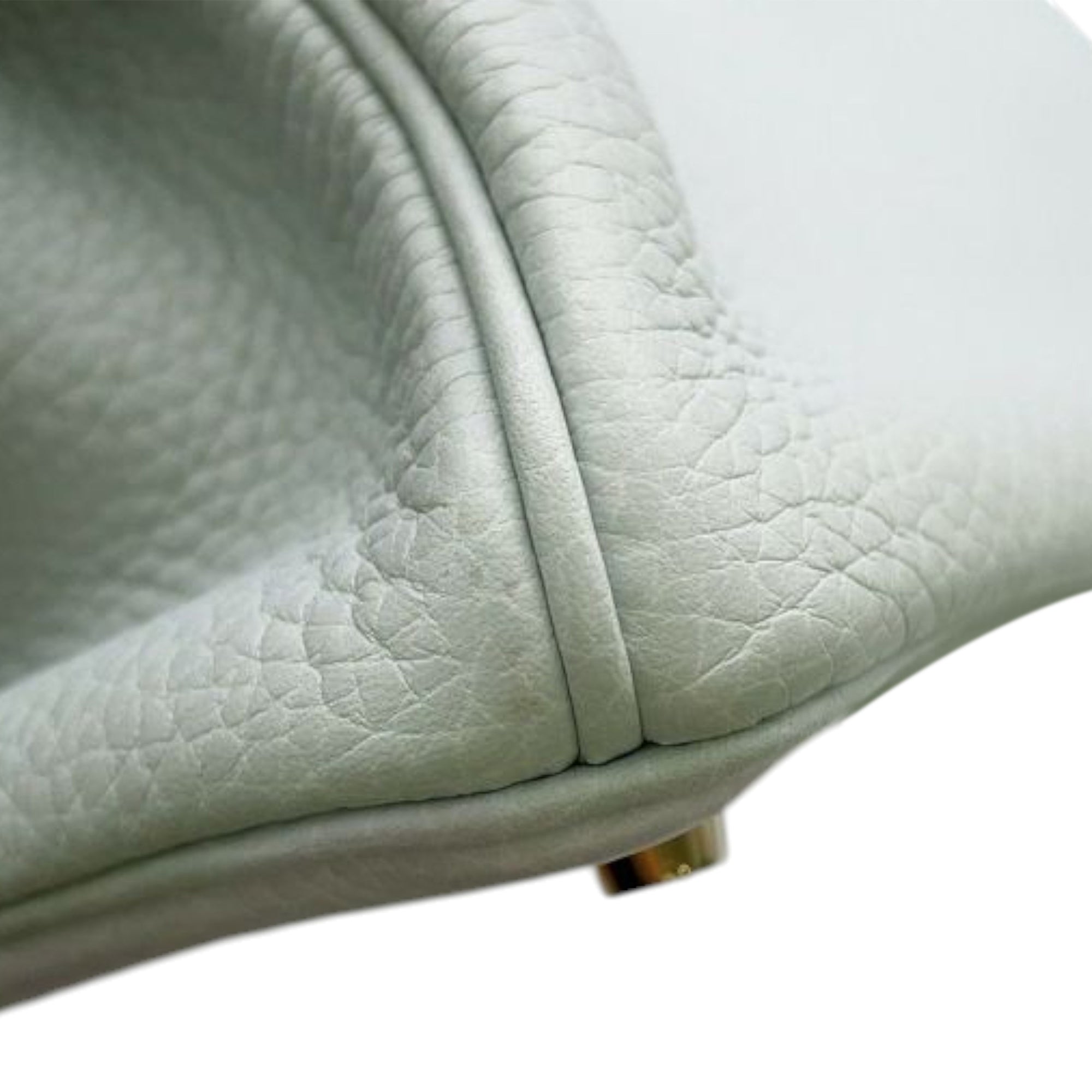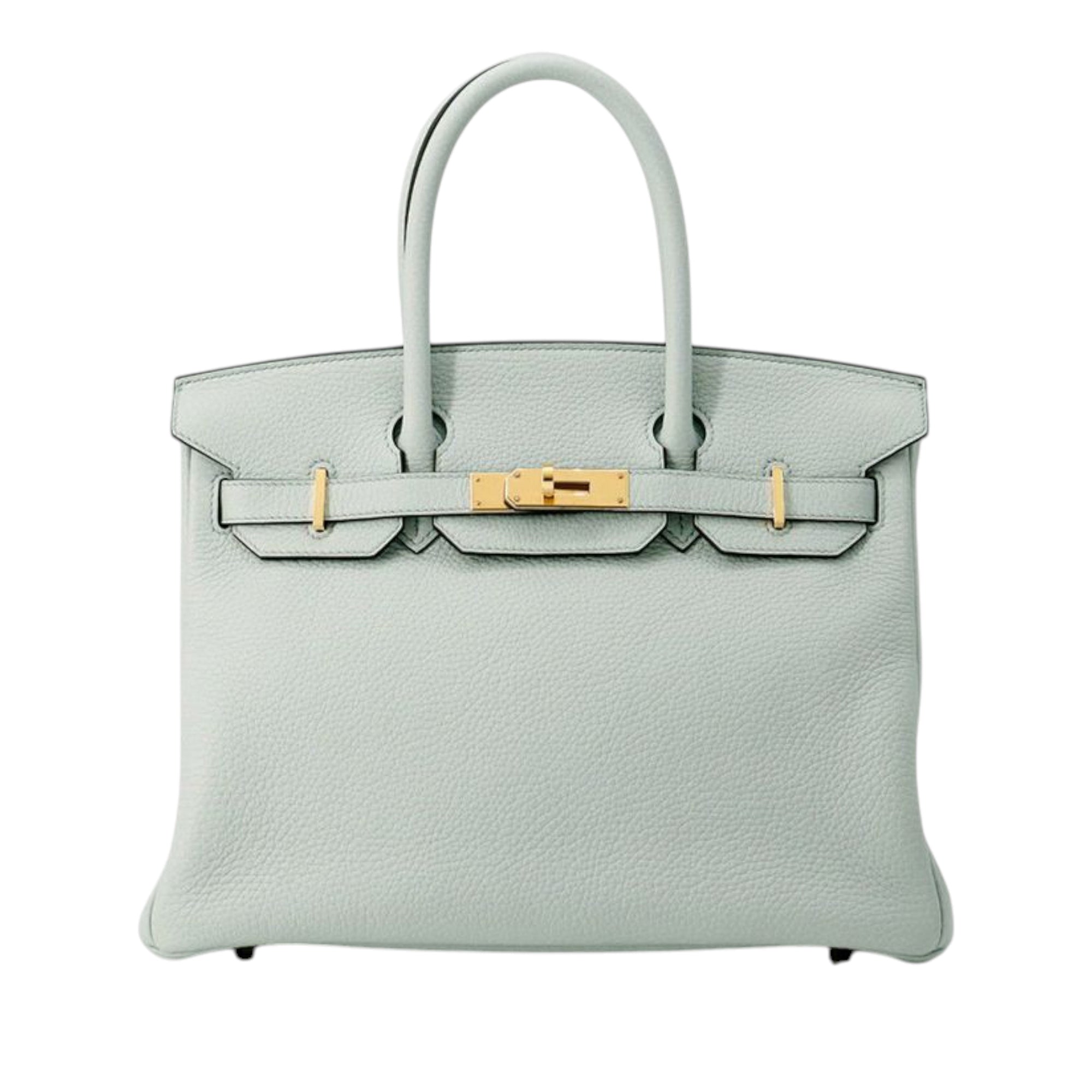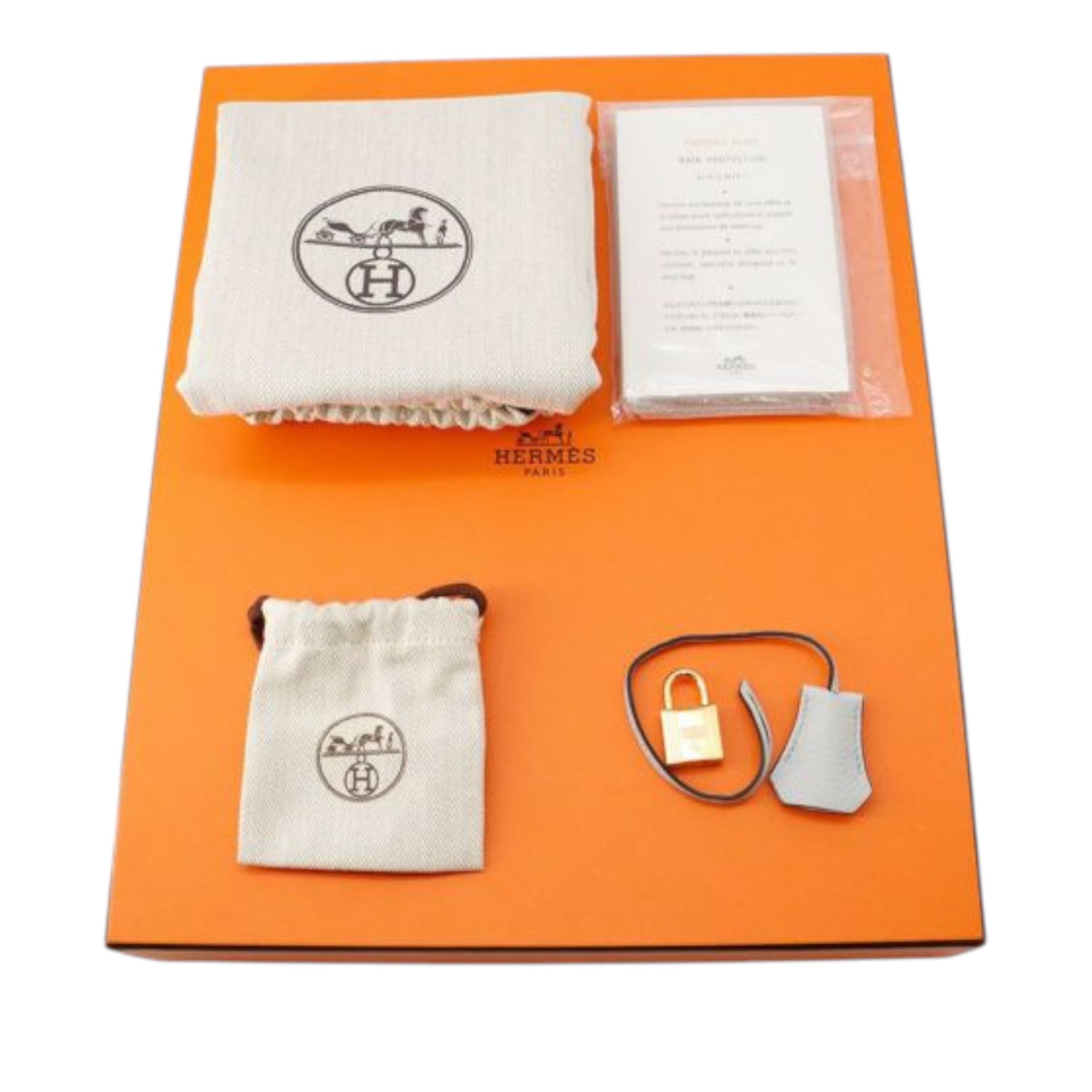 This Birkin 30 features a Togo leather body in Bleu Pale color, rolled leather handles, a front flap with a twist lock closure, and interior zip and slip pockets. Inclusion: Dust bag, box. Retail Price: 29000.00