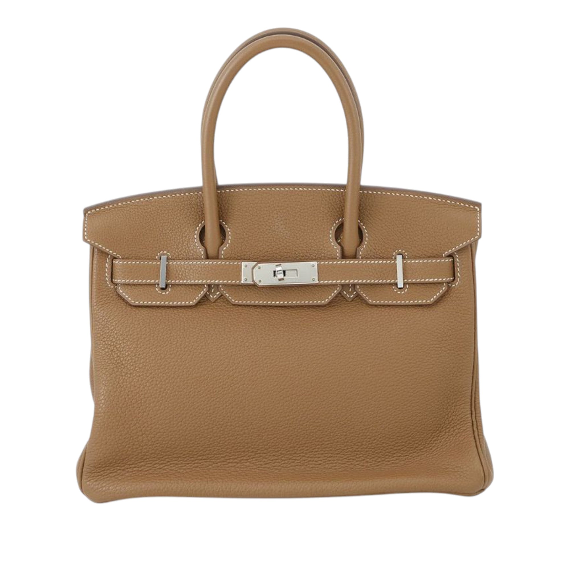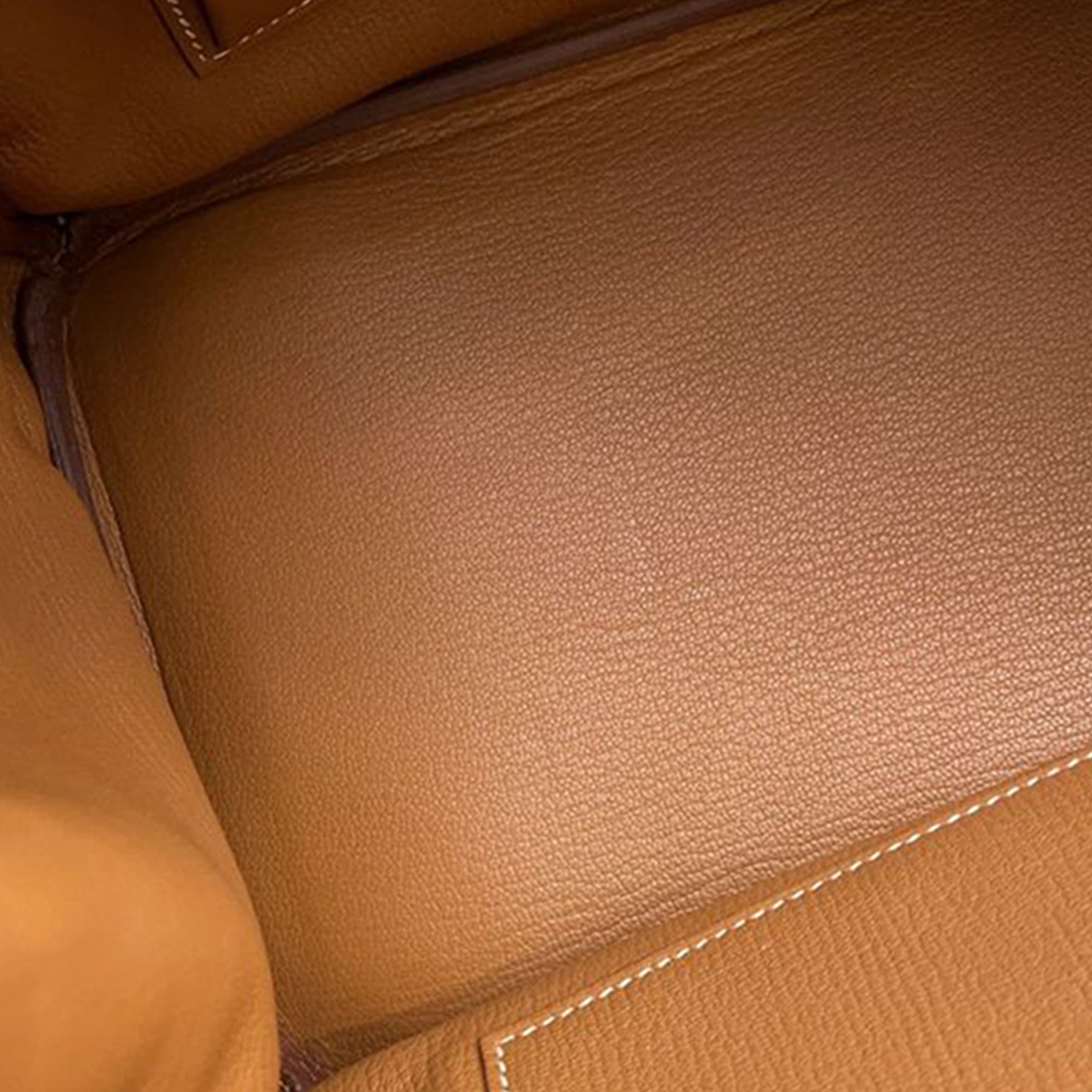 This Birkin 30 features a Togo leather body in Gold color, rolled leather handles, a front flap with a metal lock closure, and interior zip and slip pockets. Inclusion: Dust bag. Retail Price: 28000.00