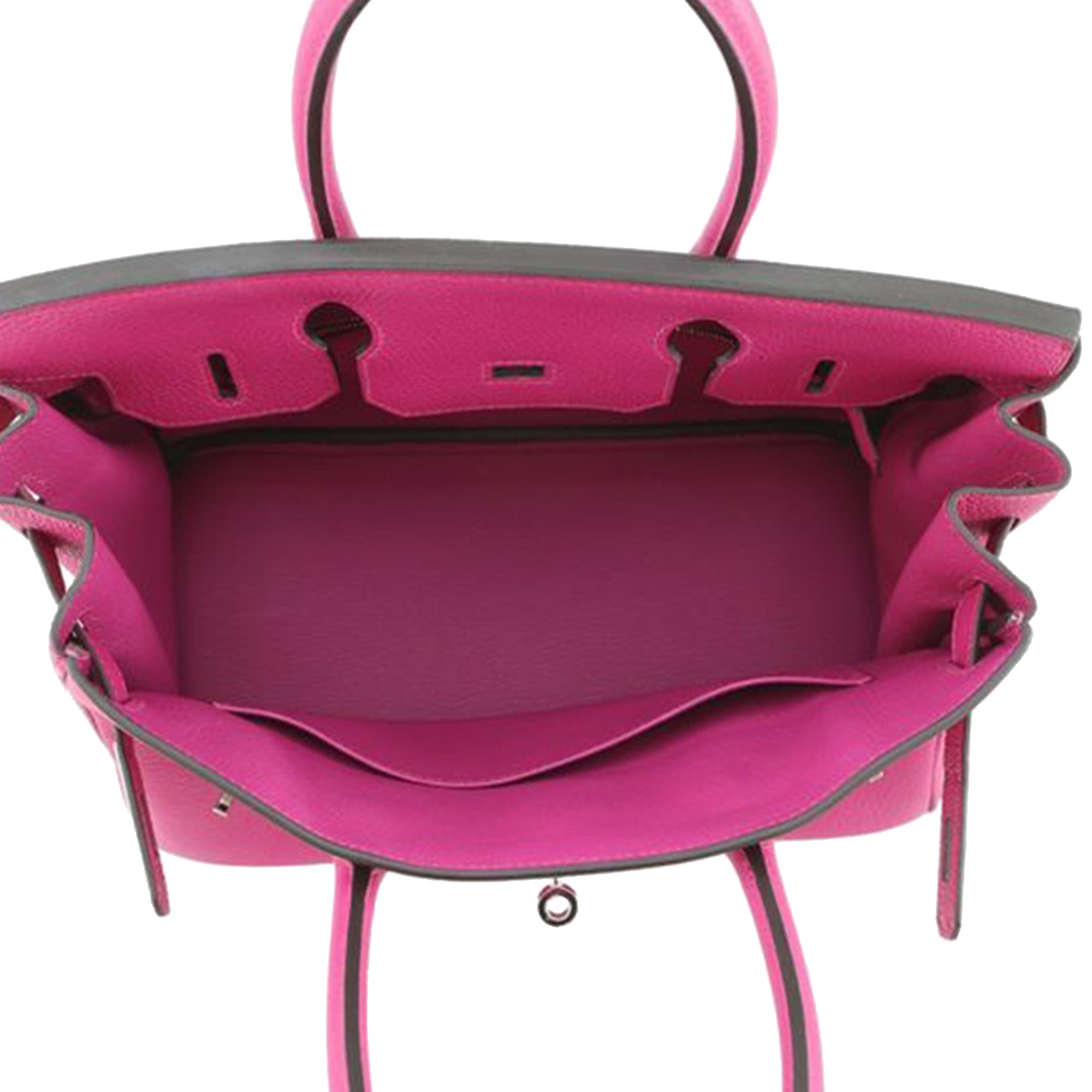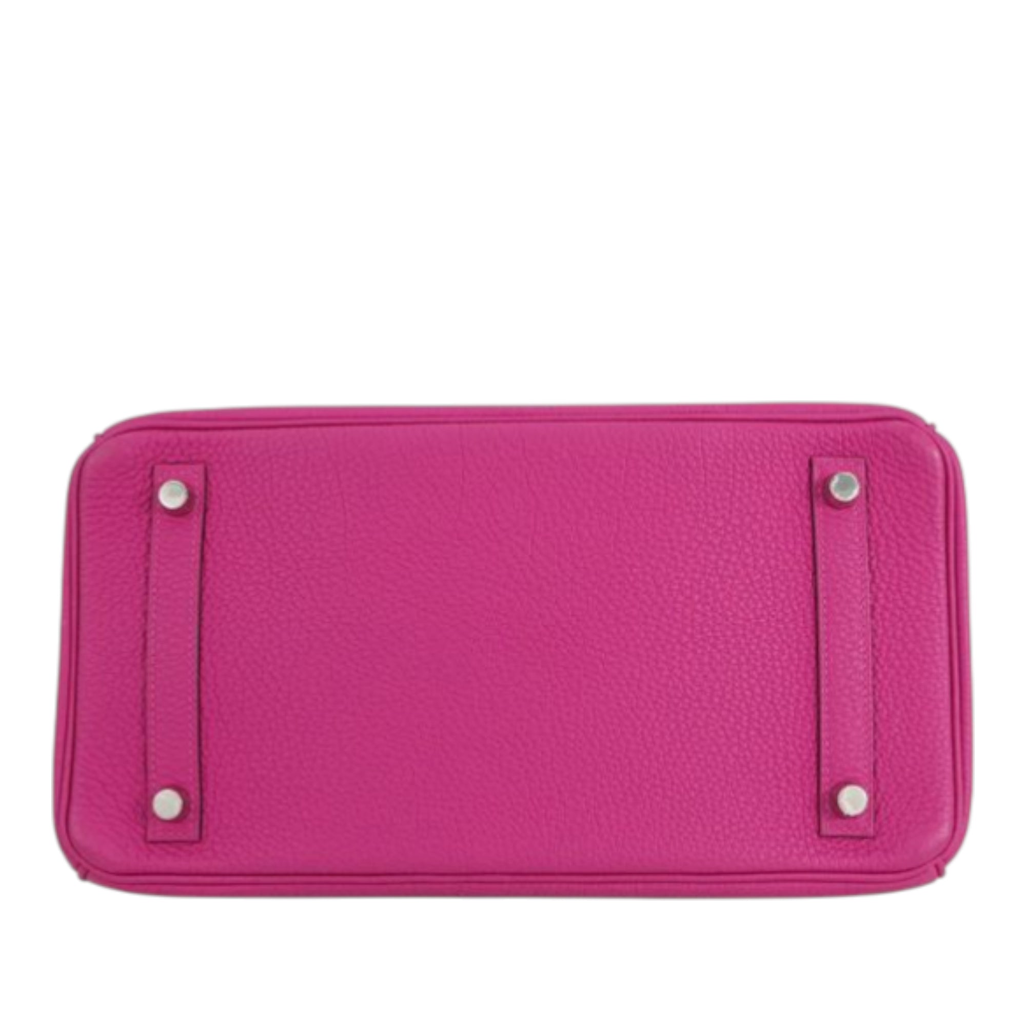 The Birkin 30 features a Togo leather body in Rose Pourpre color, rolled leather handles, a front flap with turn-lock closure, and interior slip and zip pockets. Inclusion: Dust bag. Retail Price: 36000.00