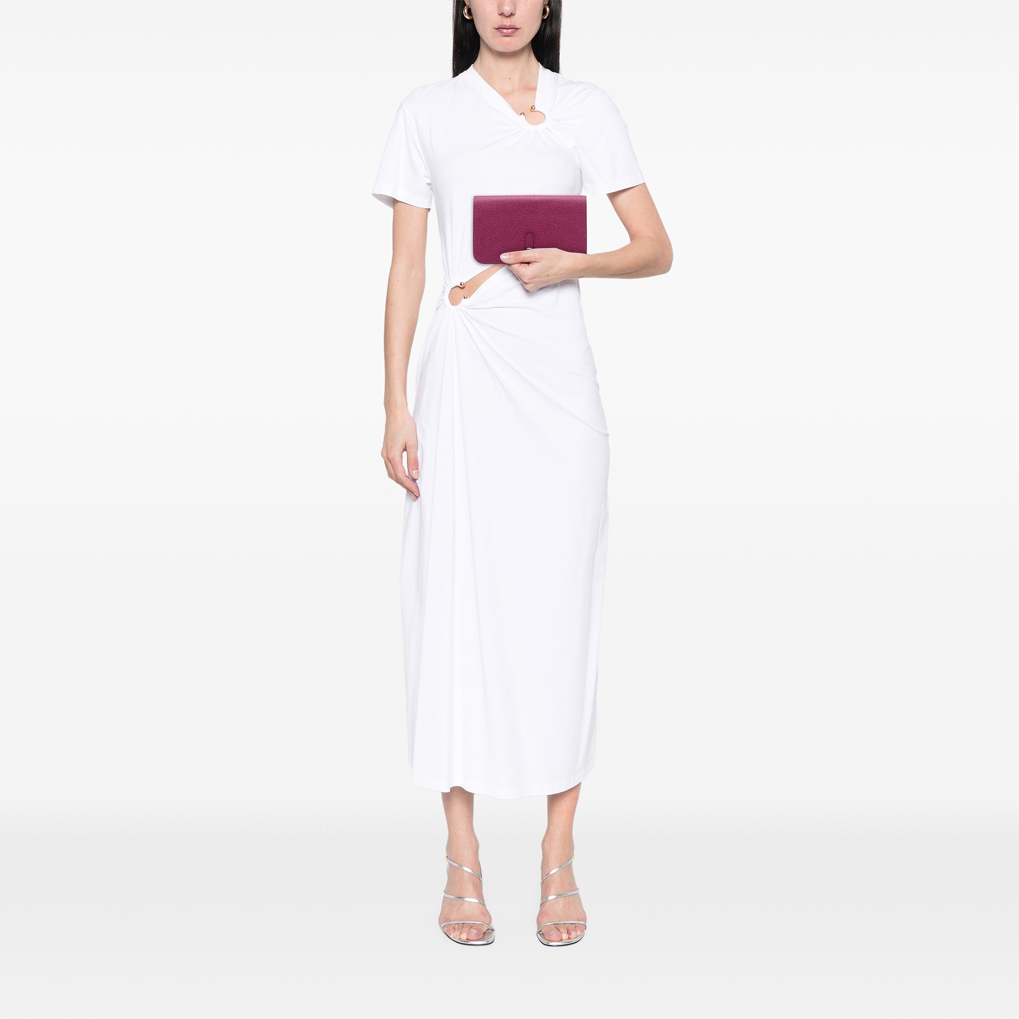 This Dogon Duo wallet features a Togo leather body in Rose Pourpre color, a strap with clou de selle closure, interior slip pockets, an a removable zip pouch. Inclusion: box. Retail Price: 1900.00
