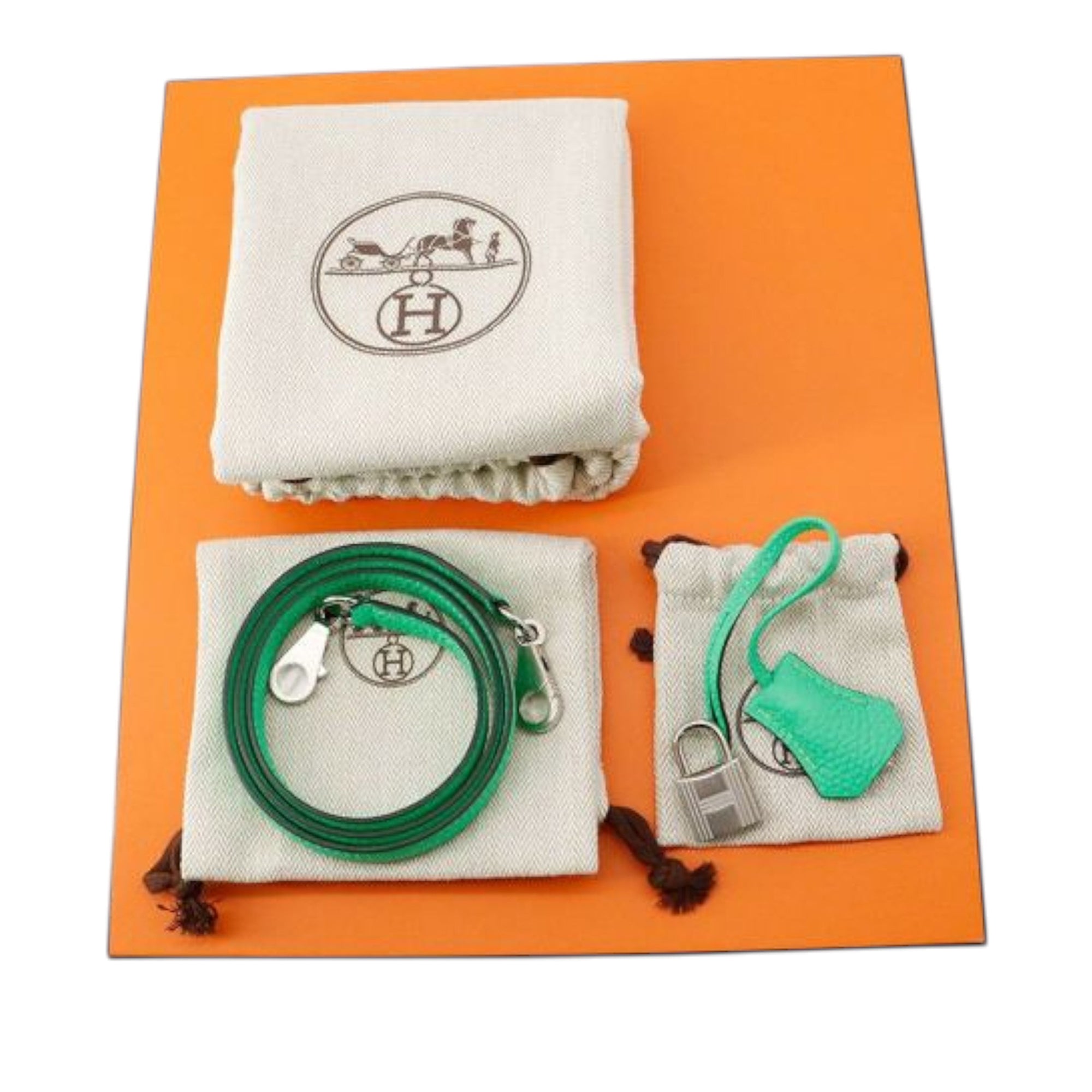 This Kelly features a Togo leather body in Vert Comics color, a flat leather top handle, a detachable flat leather shoulder strap, a front flap with twist lock closure, and interior zip and slip pockets. Inclusion: Dust bag, box. Retail Price: 28500.00