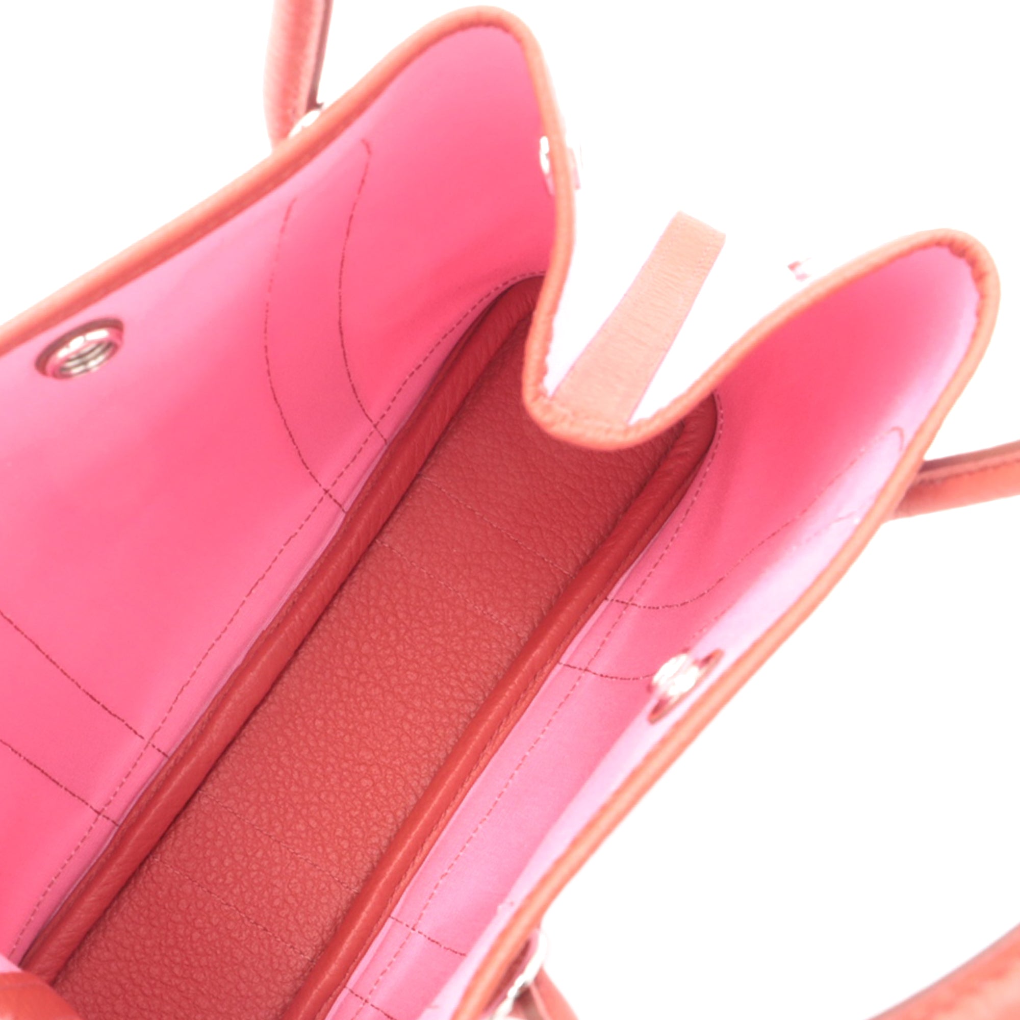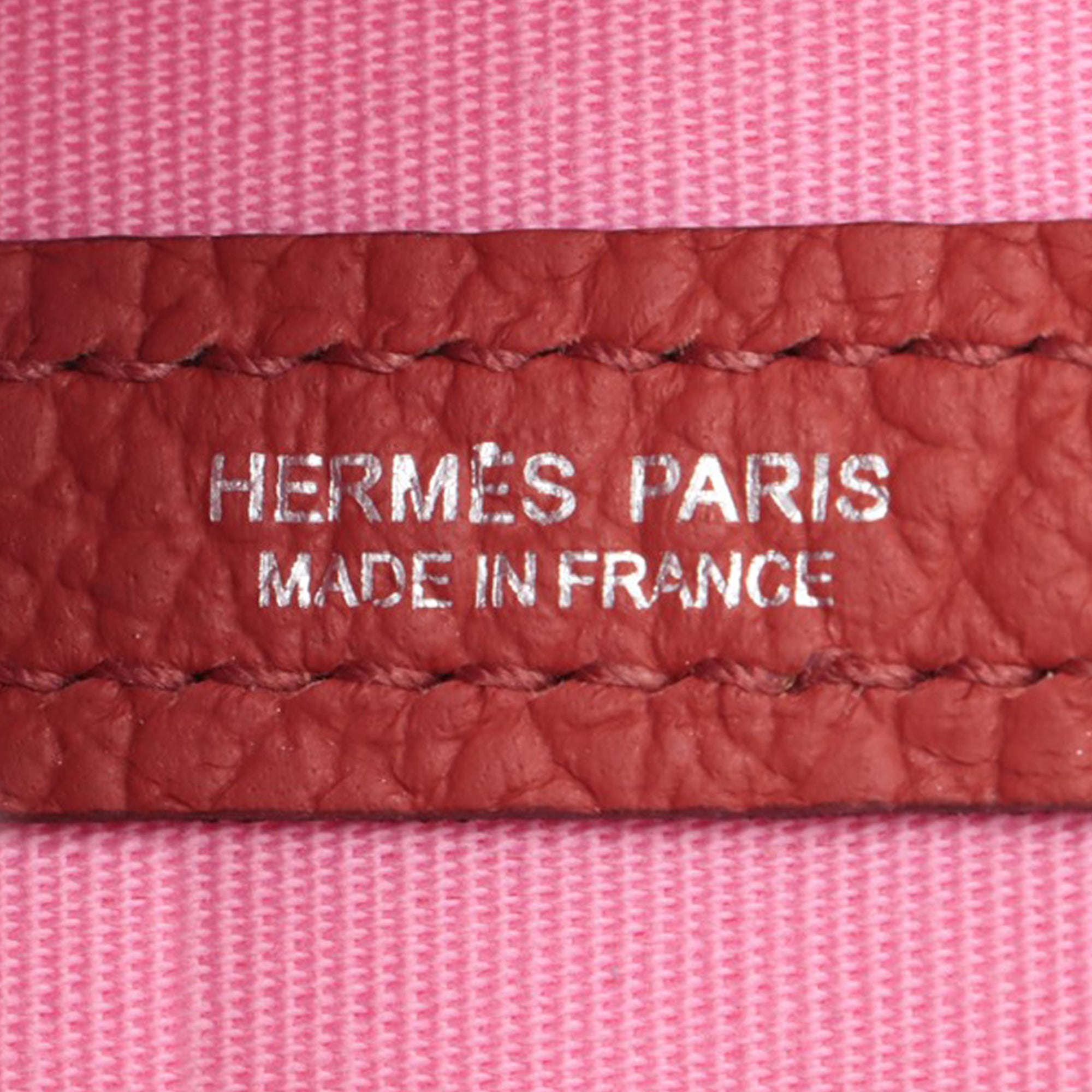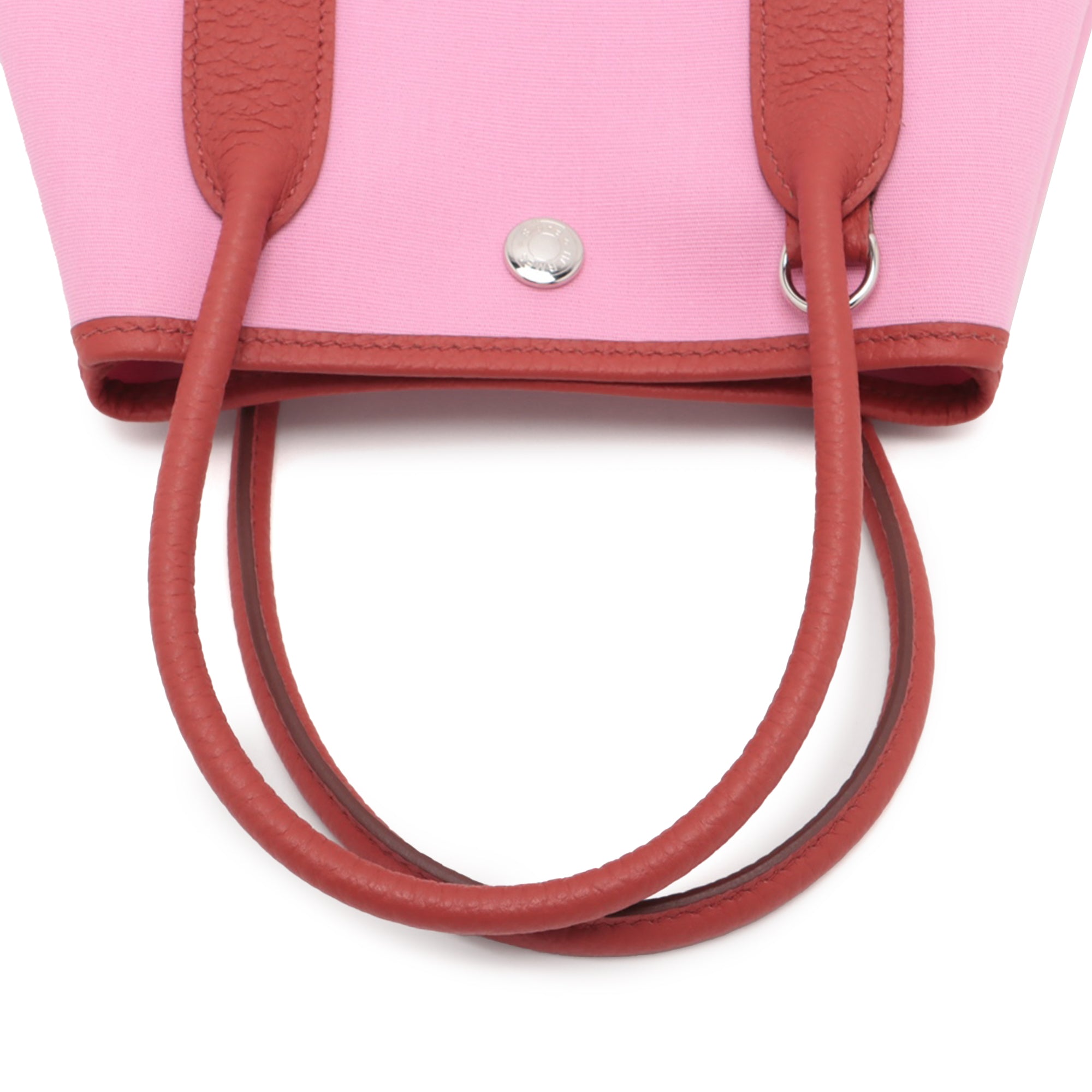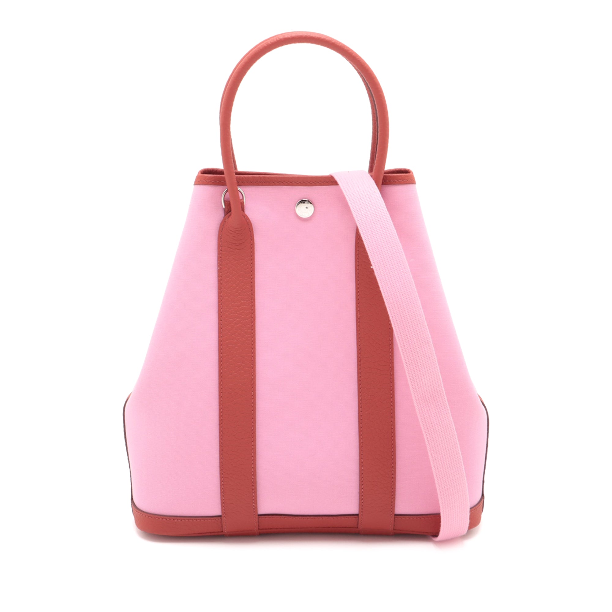 The Garden File 28 features a canvas body with leather trim, rolled leather handles, a detachable flat strap, and an open top with a snap button closure. Retail Price: 2450.00