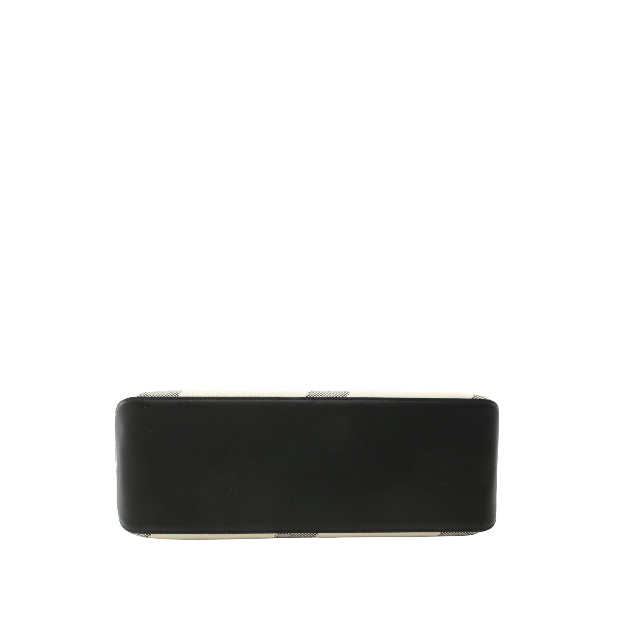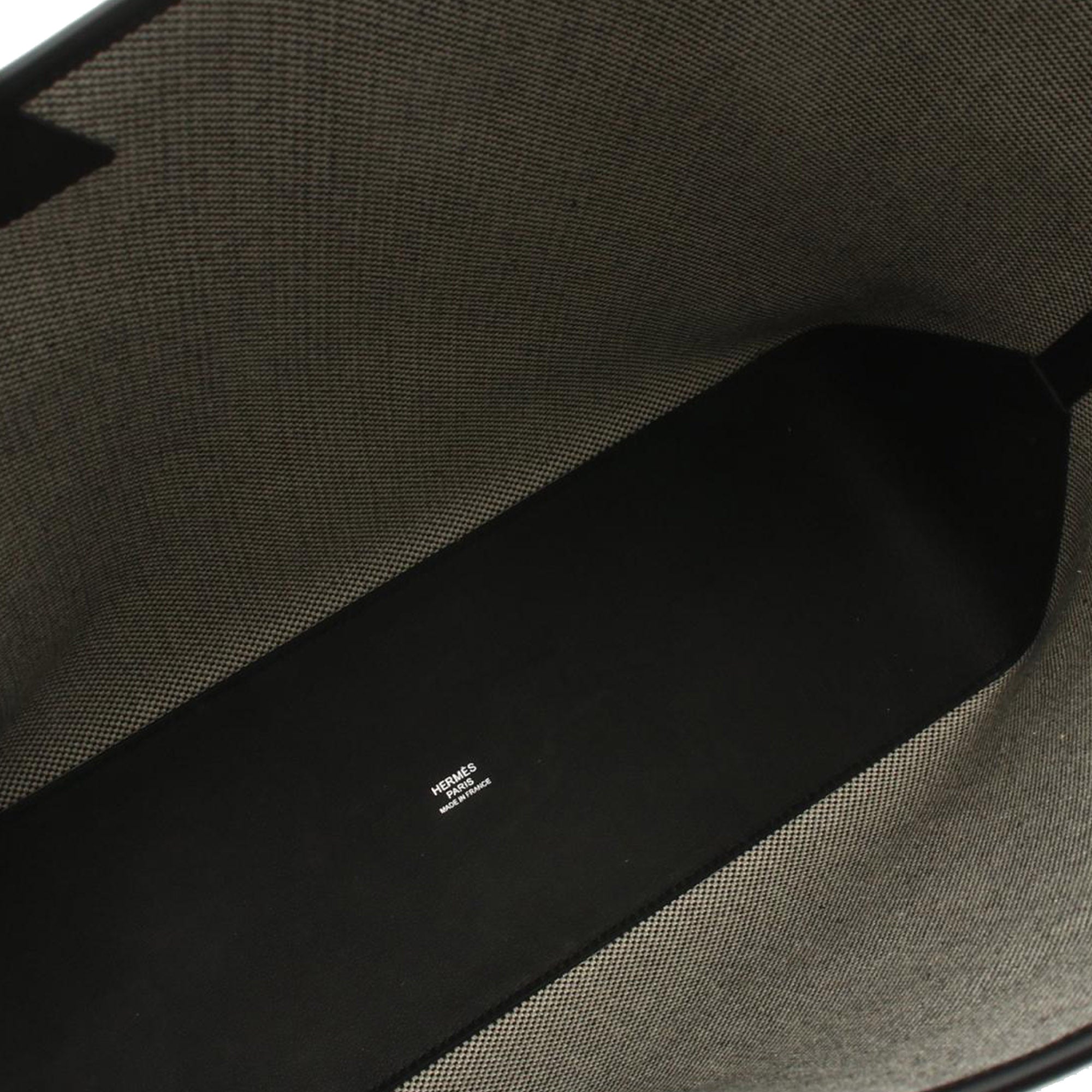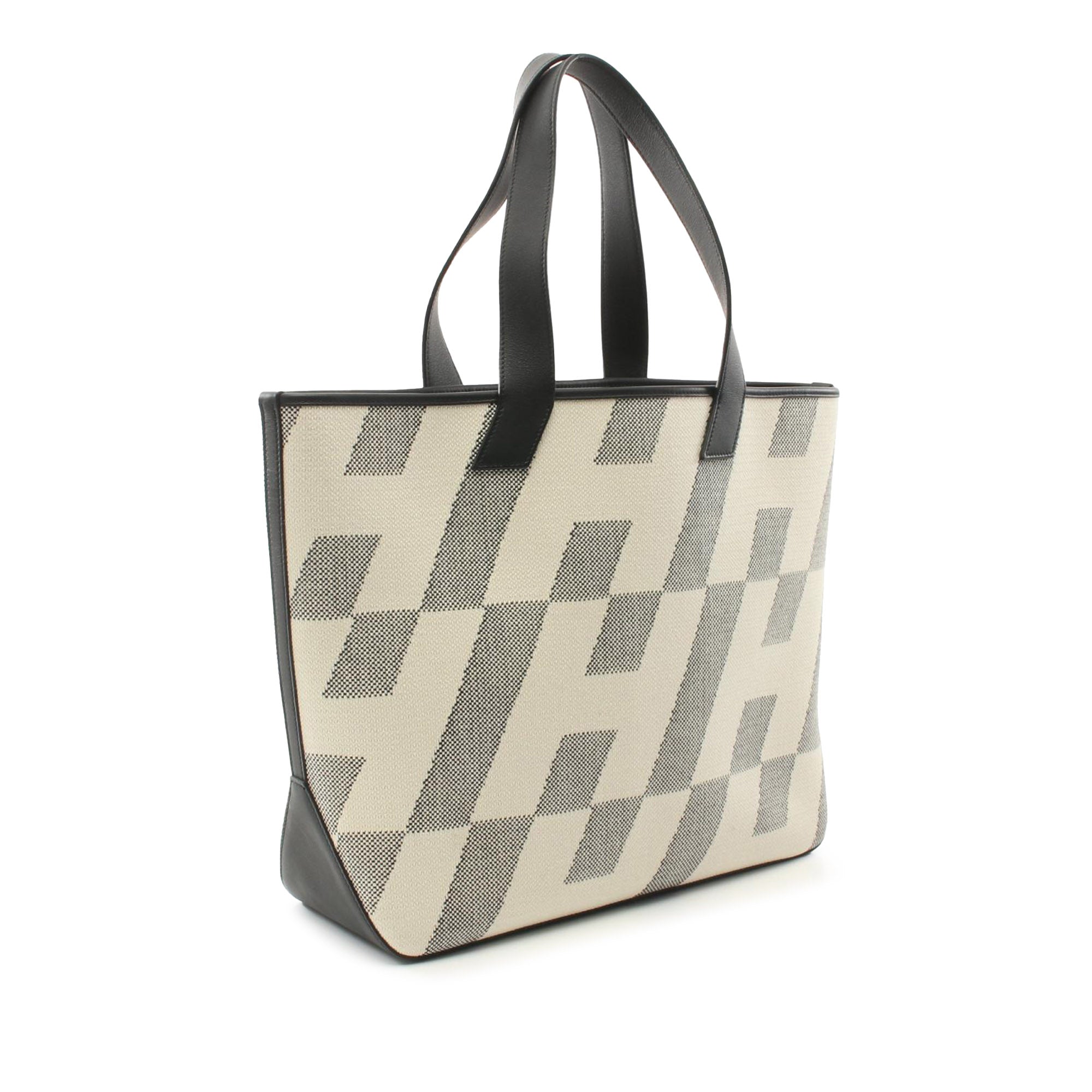 The Cabas H en Biais features a Toile canvas body with Swift leather trim, flat leather shoulder straps, and an open top. Retail Price: 3300.00