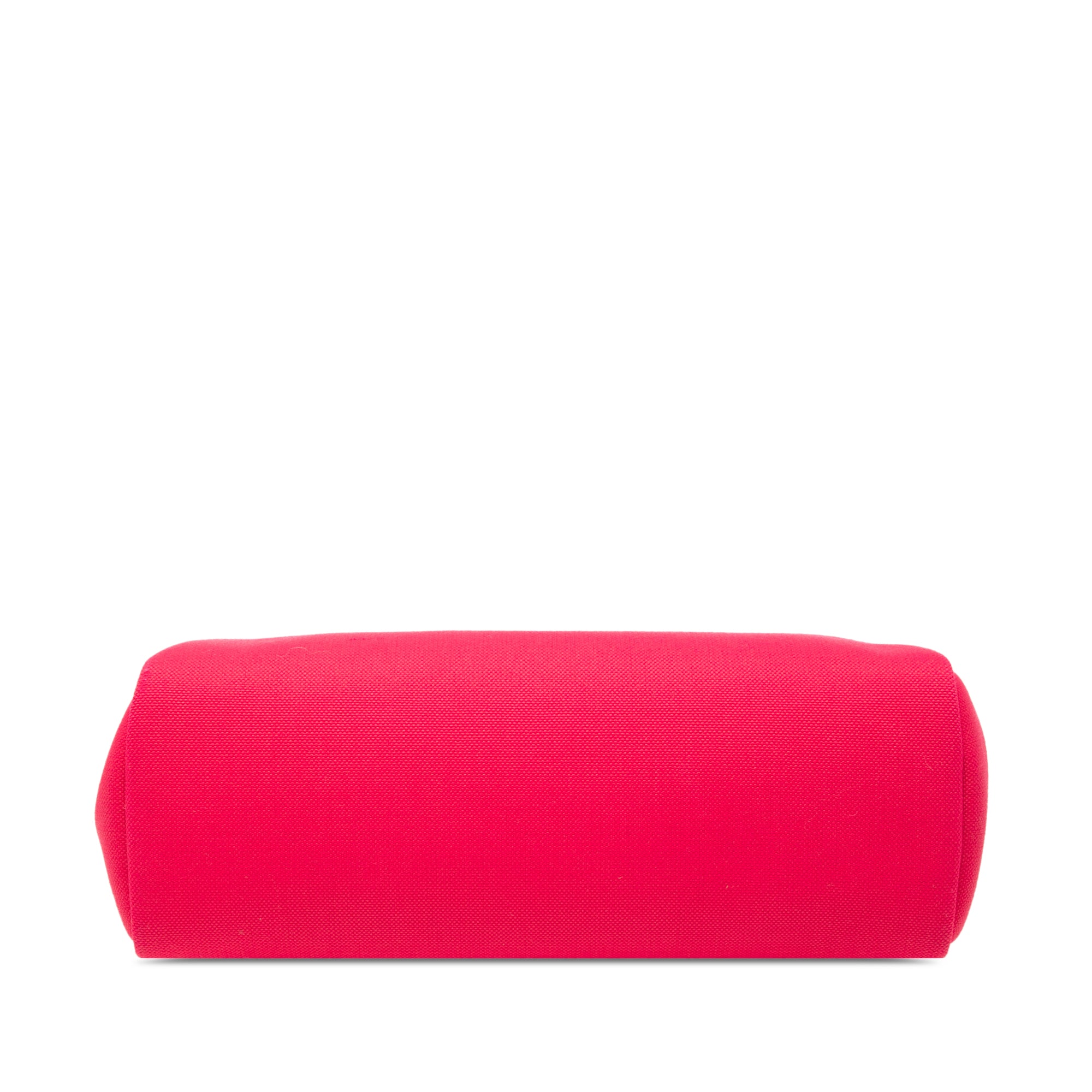 The Herbag Zip 31 features a canvas body in Rose Extreme color, a flat leather top handle, a flat leather shoulder strap, a front leather flap with pull-through strap closure, an exterior back zip pocket, and a detachable interior zip pouch. Retail Price: 3050.00