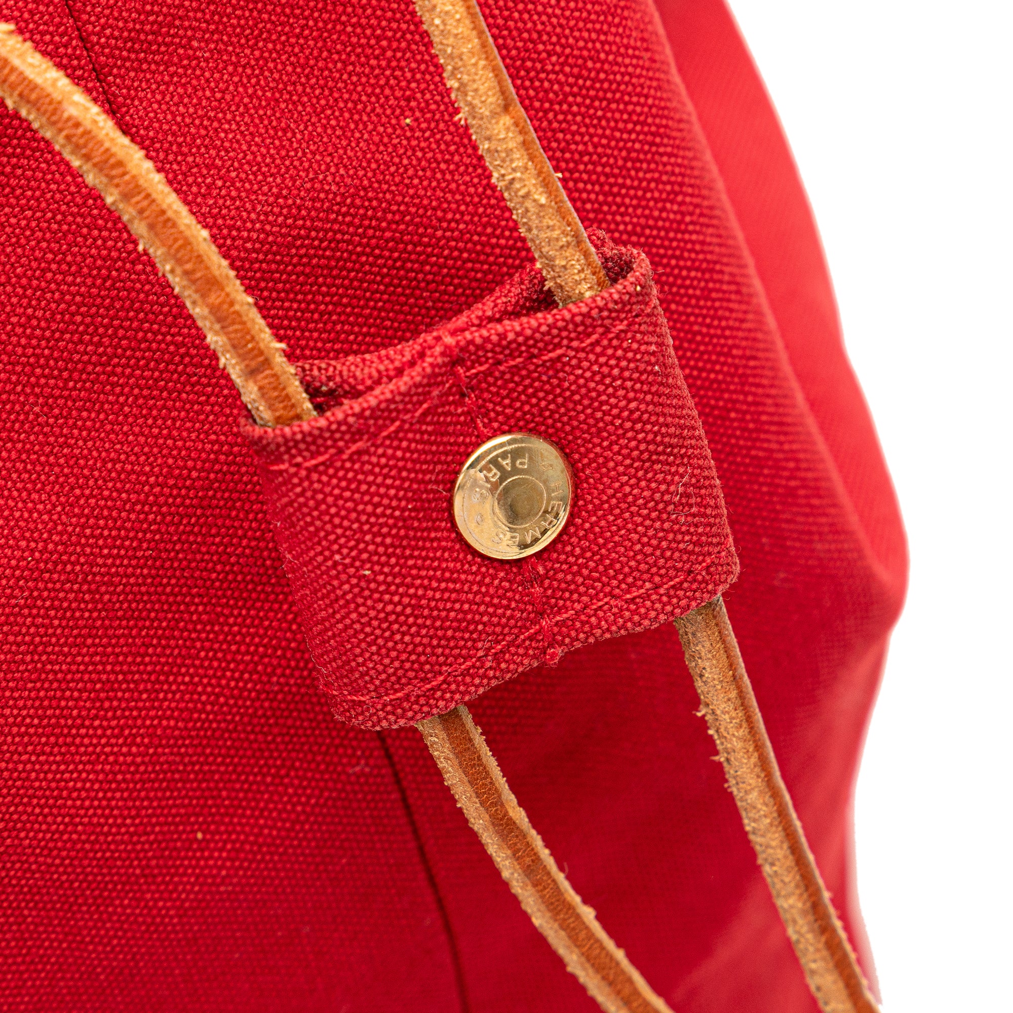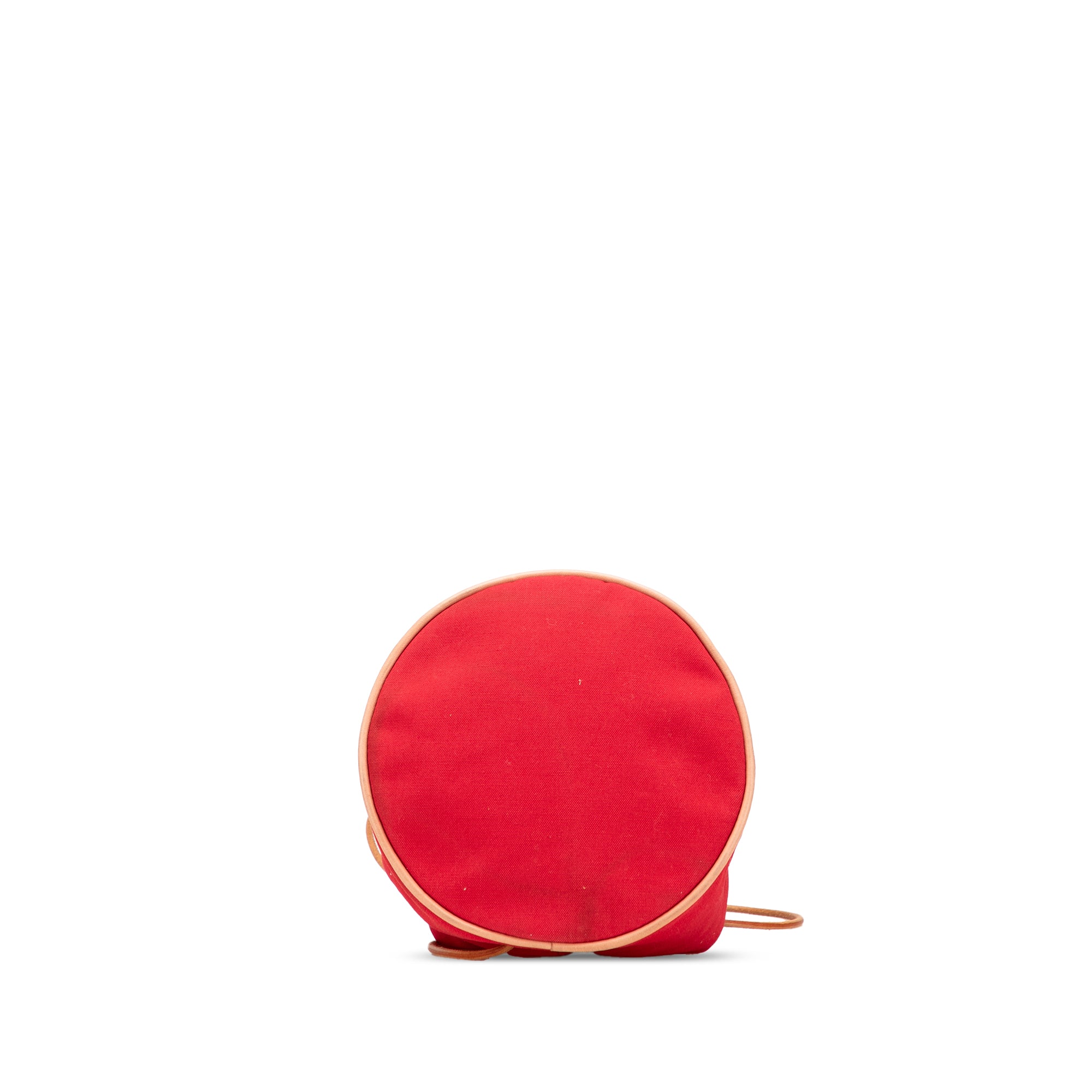 The Polochon Mimile features a canvas body, rolled leather back straps, and an open top with a drawstring closure. Retail Price: 880.00