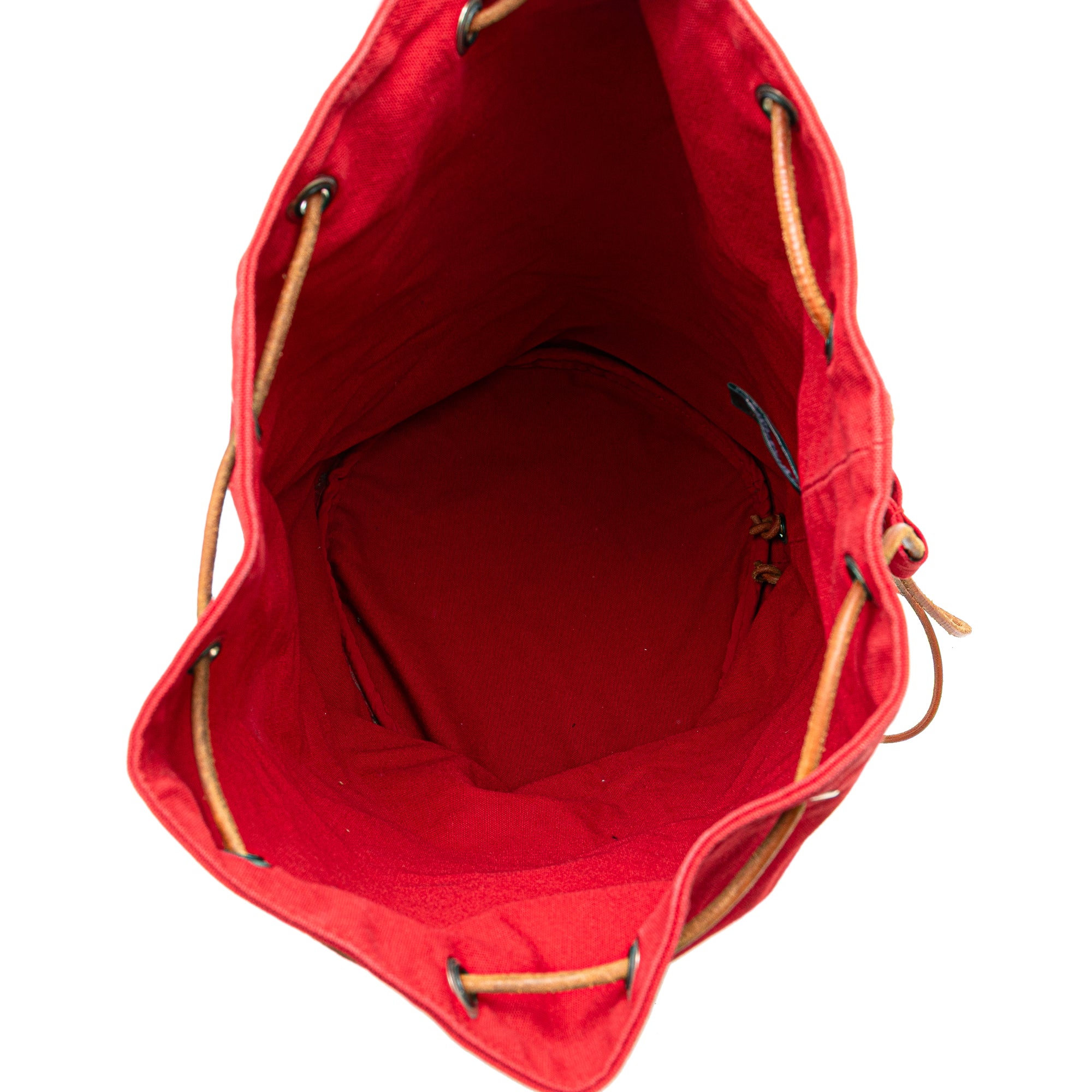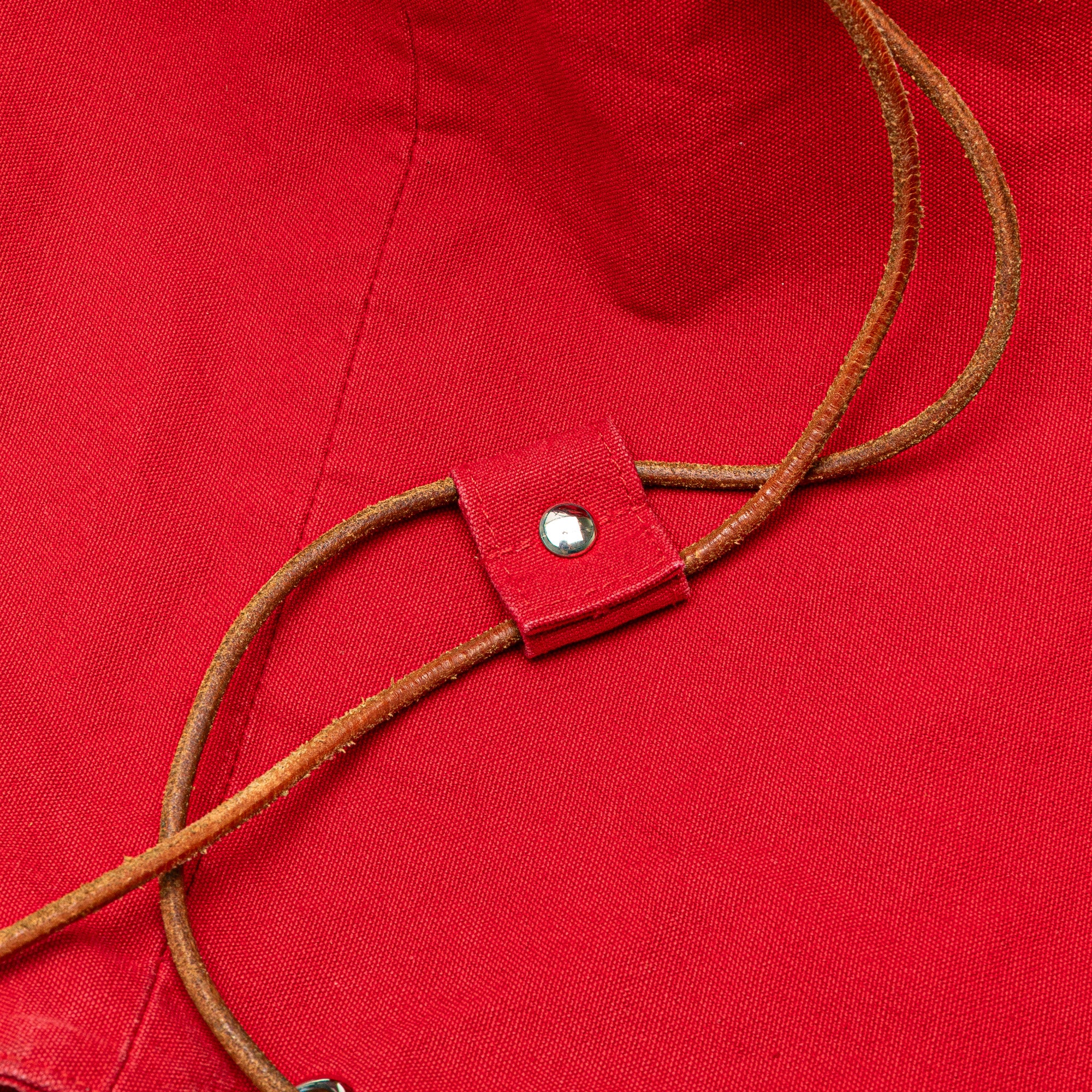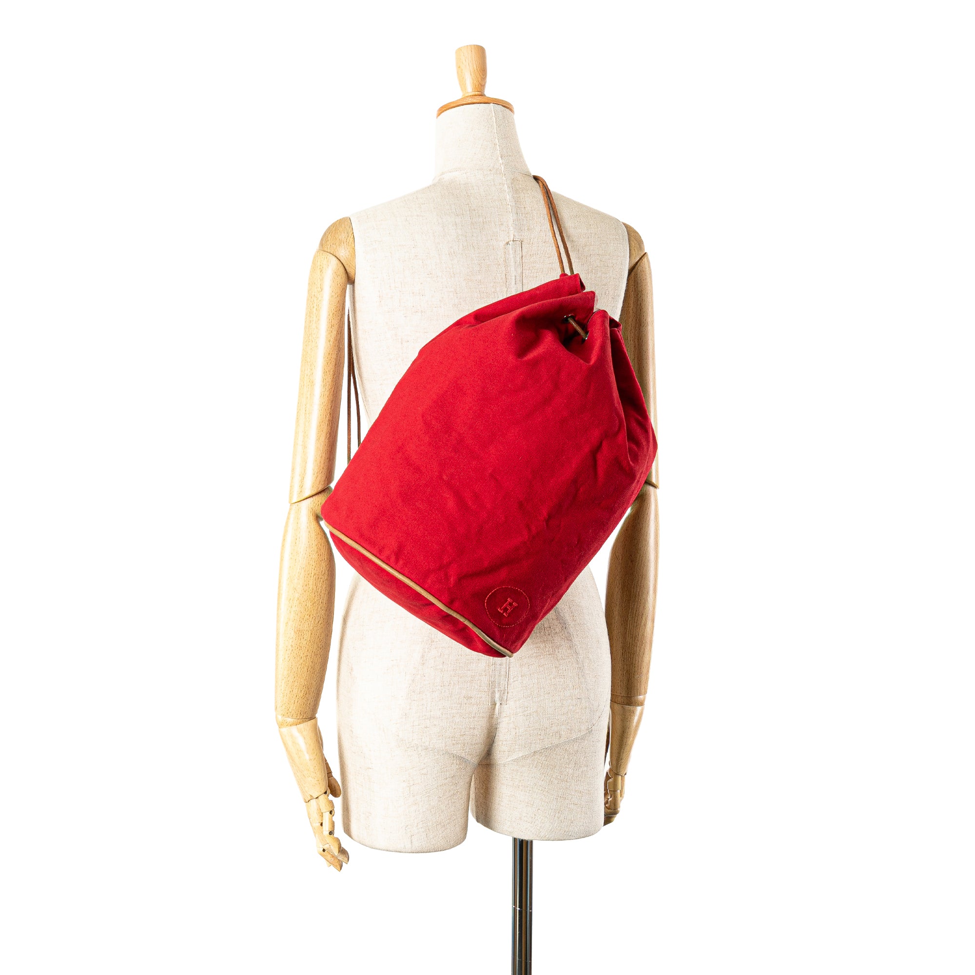 The Polochon Mimile features a canvas body, rolled leather back straps, and an open top with a drawstring closure. Retail Price: 880.00