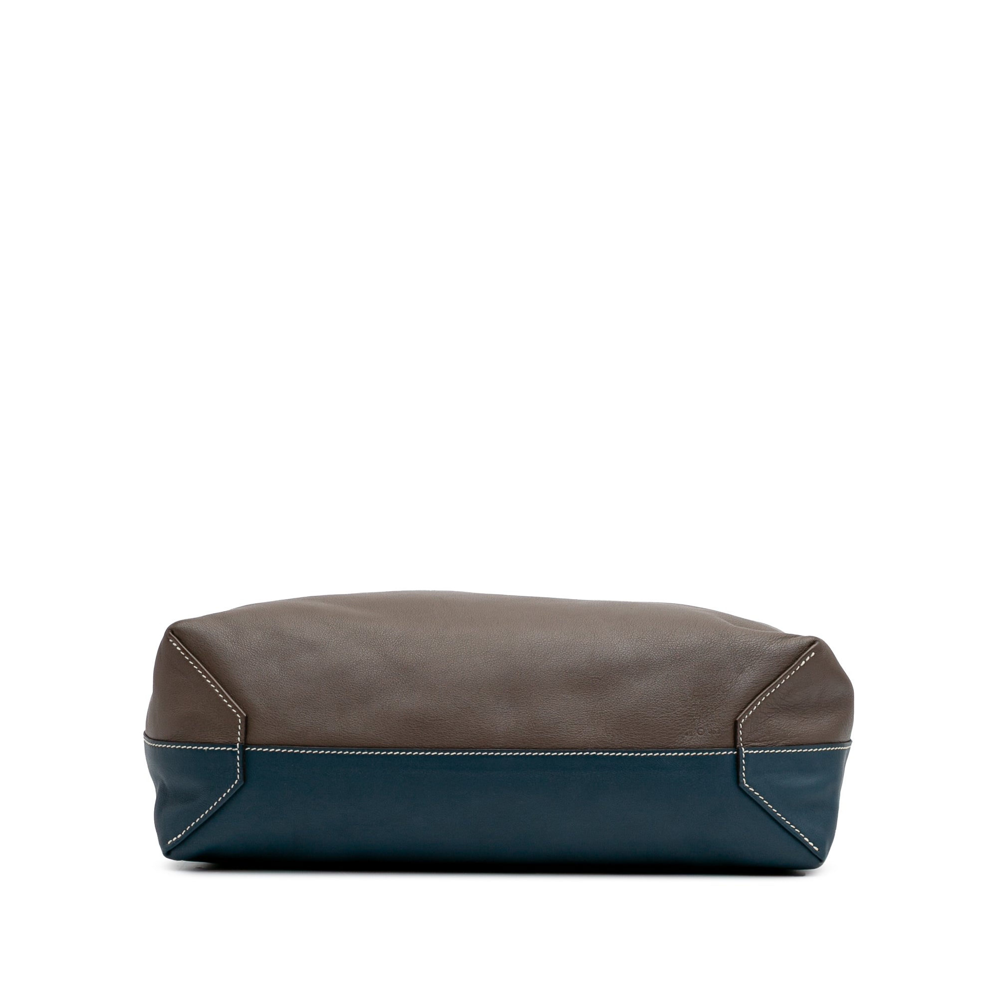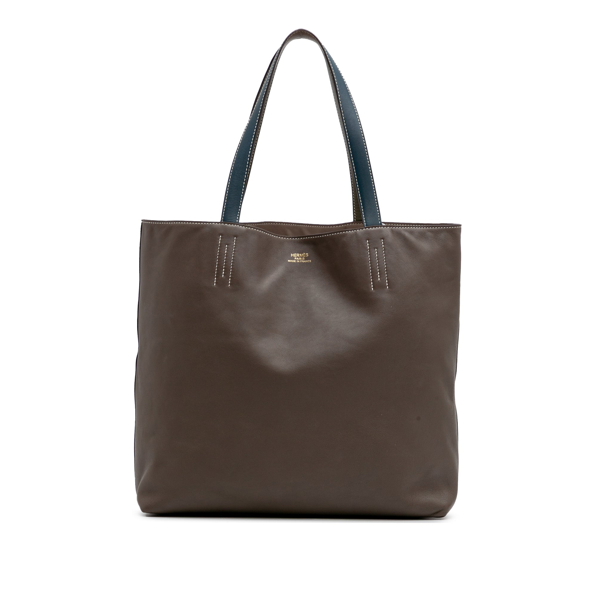 This Double Sens features a Veau Sikkim and Clemence leather body, flat leather handles, and an open top. Retail Price: 3825.00