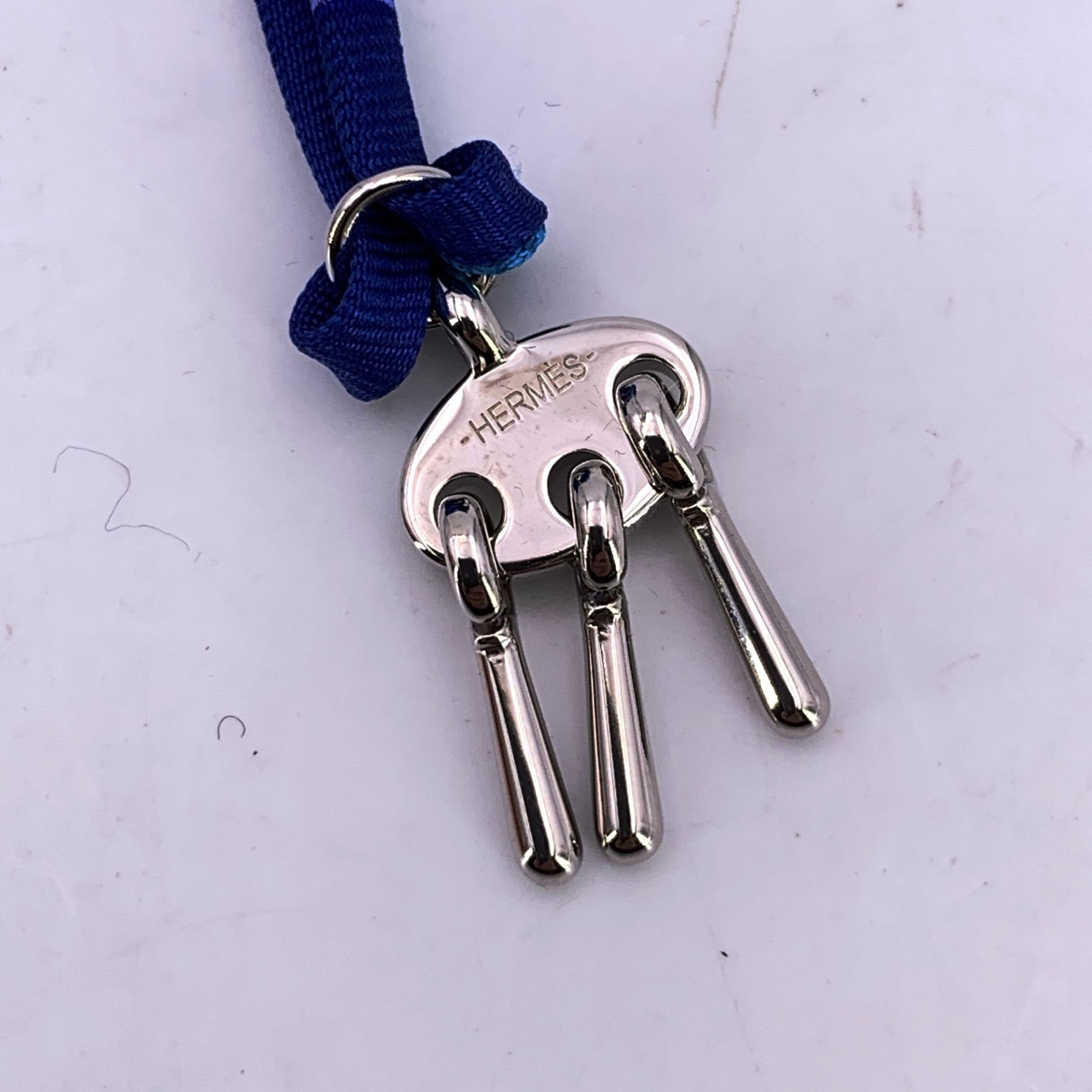 Hermès "Tourbillon De Couleurs - Mors à Jouet" Necklace.The Necklace Is Part Of Hermès' Tourbillon De Couleurs Collection, Which Features Playful, Lightweight Designs Built Around Equestrian Hardware.The Pendant Is Inspired By a Mors à Jouet, Meaning "Play Bit," a Type Of Horse Bit With Articulated, Dangling Elements. It Consists Of a Rounded Metal Ring With Three Slim Metal Bars Hanging Vertically. The Look Is Minimalist And Mechanical, Reflecting Hermès' Saddle-making Heritage. The Metal Is a Palladium-finished Silver Tone.Suspended From a Silk Spaghetti Cord This Piece Is Both Modern And Timeless-a Subtle Hermès Jewel With An Artistic Touch. Necklace's Drop: Is 14.5 Inches - 36.8 Cm