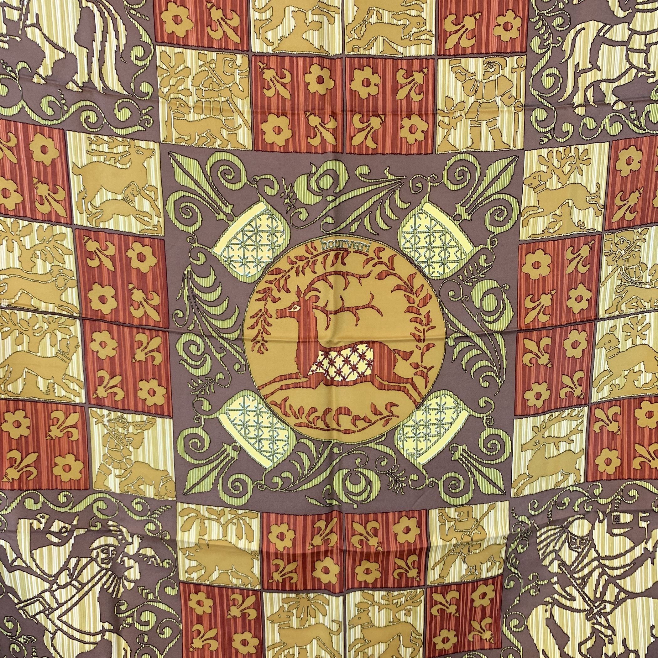 Vintage Hermès Scarf By Henry D'origny - Issued 1972 Rediscover The Timeless Charm Of The Hermès Maison With This Exceptional "Hourvari" Silk Scarf, Designed In 1972 By The Celebrated Henry D'origny. A True Gem Of French Craftsmanship, This Carre 90 Vintage Piece Beautifully Merges Equestrian Inspiration With Elegant, Heritage-rich Design. Crafted In France From 100% Twill Silk, This Women's Scarf Features a Luxurious Brown Tone That's Ideal For The Spring Season But Versatile Enough To Elevate Any Look Year-round. The "Hourvari" Motif Pays Tribute To The Dynamic World Of The Hunt, Rendered With D'origny's Signature Balance And Intricate Detail. This Is The Original 1972 Edition, Distinguished By The Presence Of The Model's Title "Hourvari" Printed Above The Central Circle Of The Design. A Later Version From 1990 Also Exists, But It Lacks This Inscription, Making This Earlier Edition Significantly Rarer And More Coveted Among Collectors And Vintage Connoisseurs. Graded A - Excellent, And Presented Without Its Original Box, This Scarf Is Not Merely An Accessory - It's a Wearable Piece Of Hermès History. Hermès Copywrite Is Delicately Printed On The Scarf, a Subtle Mark Of Authenticity And Heritage.
