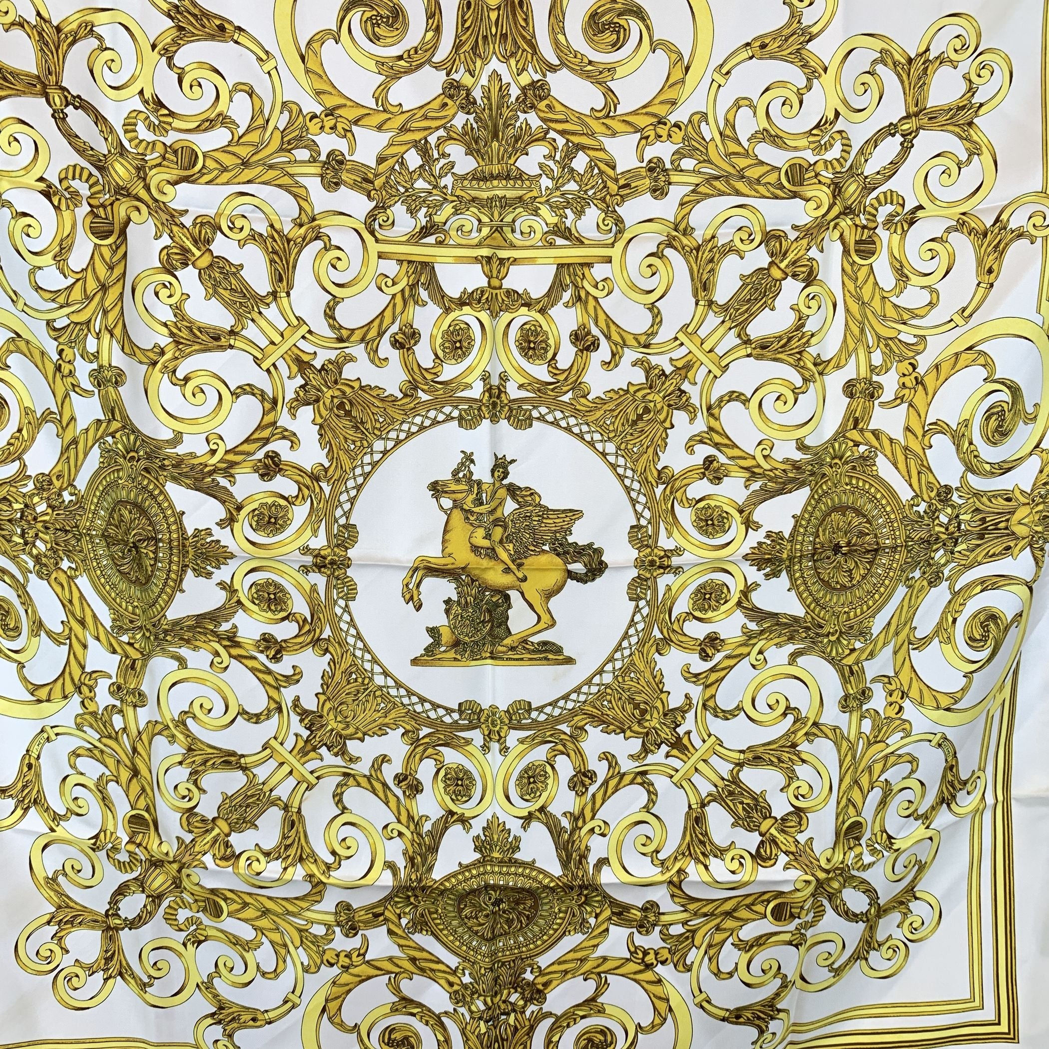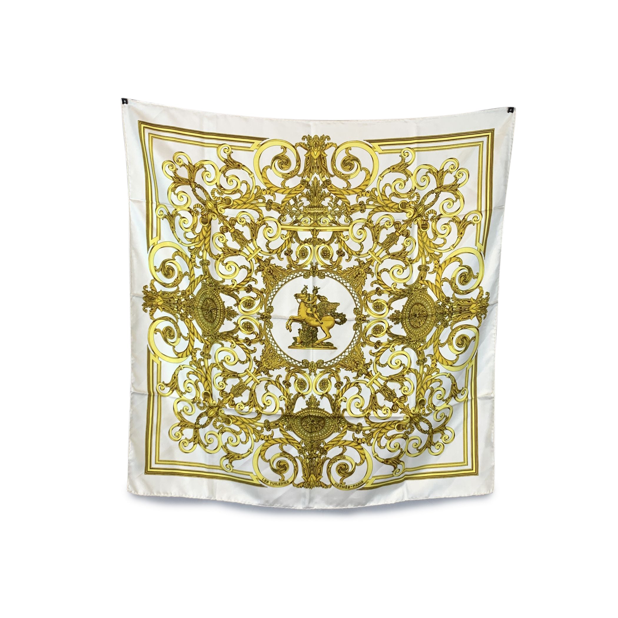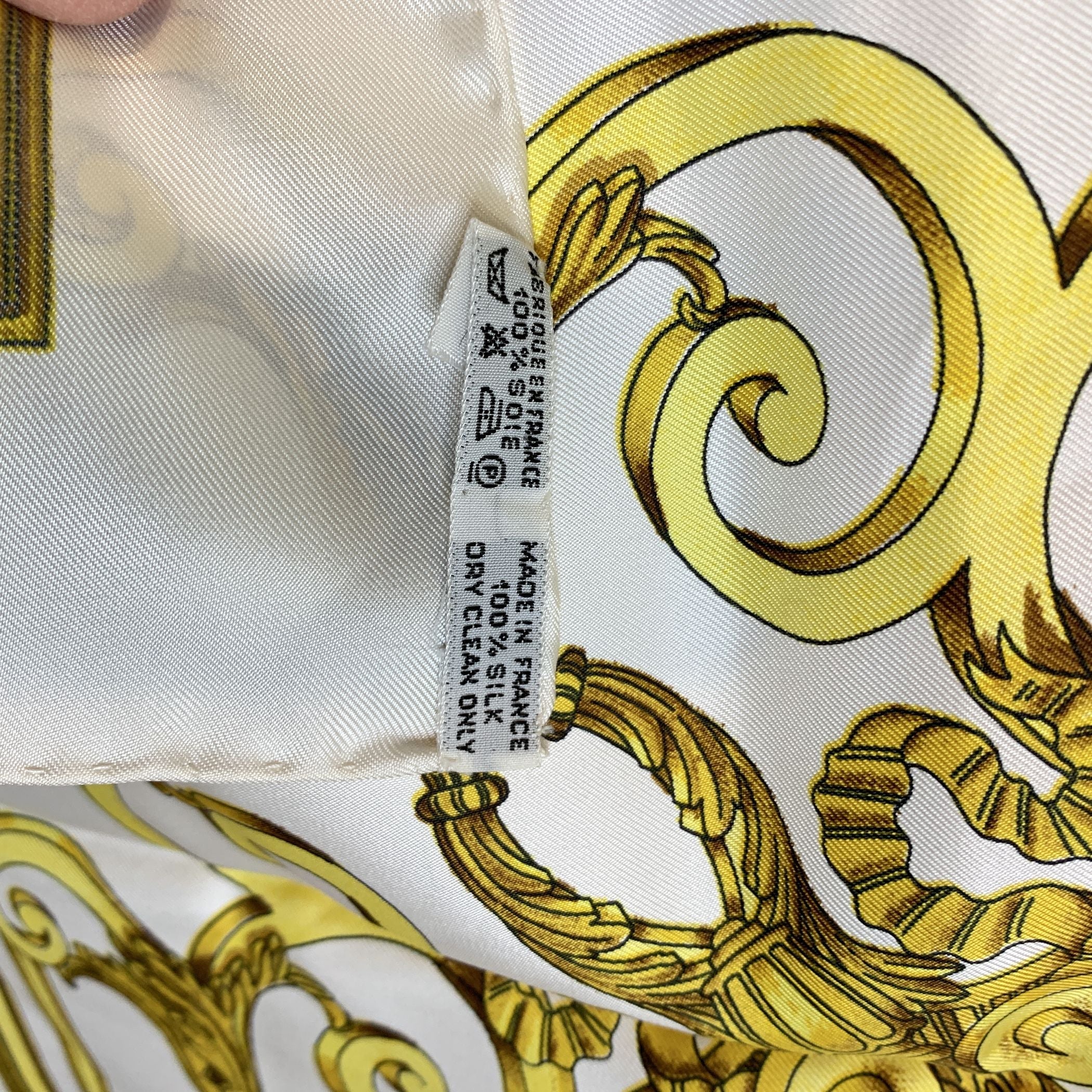 Step Into The Elegance Of Early 1990s Paris With This Exquisite Hermès Vintage Les Tuileries Scarf, a Timeless Tribute To French Artistry, Crafted In Luxurious White Silk Twill. Designed By The Renowned Joachim Metz And Released In The Spring Season Of The 1990s, This Carre 90 Square Is Not Merely An Accessory-it's a Wearable Story Steeped In Culture And Refinement. Titled "Les Tuileries," The Scarf Honors The Famed Parisian Gardens That Once Graced The Royal Palace Grounds. Metz's Intricate Design Captures The Romantic Spirit Of The Tuileries, Woven Into Flowing Lines And Elegant Motifs, All Resting Delicately On a Pristine White Canvas. Measuring Approximately 35 x 35 Inches (88.9 x 88.9 Cm), The Scarf Is Crafted In France From 100% Silk And Finished With Classic Hand-rolled Hems. Hermès Copywrite Is Delicately Printed On The Scarf, a Subtle Mark Of Authenticity And Heritage. The Iconic "Hermès Paris" Signature Is Featured Along The Lower Edge, Anchoring The Design With Timeless Sophistication. The Original Composition Tag Remains Attached, Underscoring The Scarf's Excellent Preserved