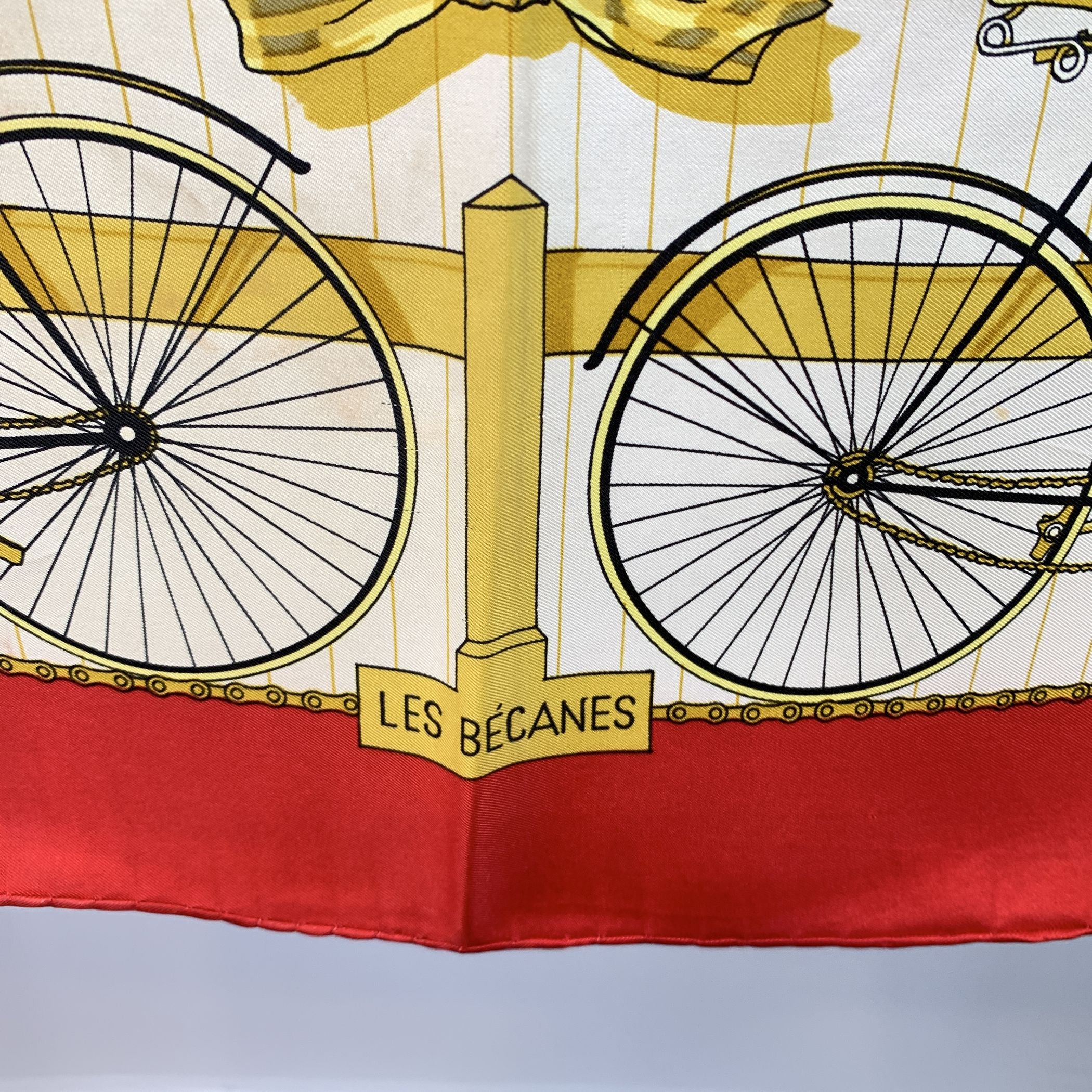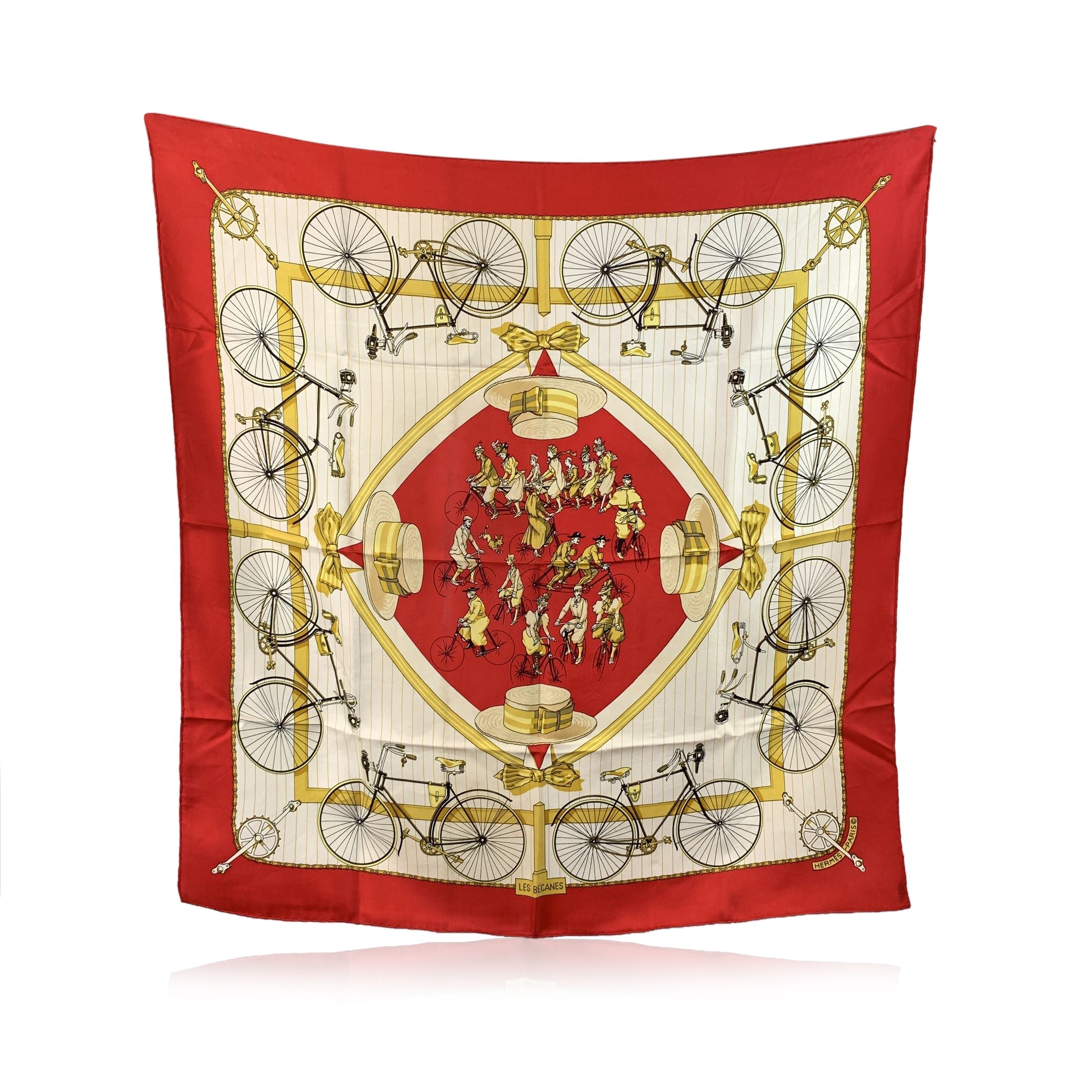 Step Into The Elegance Of The Belle Époque With This Rare Les Bécanes Silk Scarf, Designed By Hugo Grygkar For Hermès. Originally Launched In 1954, This Vintage Gem Pays Homage To An Era When The Bicycle Became Not Only a Practical Mode Of Transport But Also a Symbol Of Leisure And Joy. Reprinted Over The Years In 1973, 1990, And 2003, It Remains a Beloved Piece In Hermès' Iconic Collection, Still Available Today For 395 Euros. The Scarf Elegantly Captures a Parisian Scene From The Late 19th Century, Where Families Ride On Tandems, Policemen Cycle Through The Streets, And Fashionable Men And Women Enjoy a Sunday Outing In Their Period-appropriate Attire. Framing The Central Scene Are Four Charming Straw Hats, Surrounded By Antique Bicycles In Intricate Detail. The Vibrant Red Edges Offer a Striking Contrast To The Soft, Pastel Hues Of The Design, Making It An Eye-catching Statement Piece. Crafted From 100% Silk And Finished With a Hand-rolled Hem, This Scarf Reflects The Exceptional Craftsmanship Hermès Is Known For. The Hermès Paris Signature With The Copyright Symbol Affirms Its Authenticity And Heritage. Perfect For Collectors And Those Who Appreciate The Intersection Of History And Fashion, The Les Bécanes Scarf Is a Timeless Tribute To a Golden Age In Both Cycling And Parisian Life, Offering a Glimpse Into The Lighthearted Spirit Of The Belle Époque.